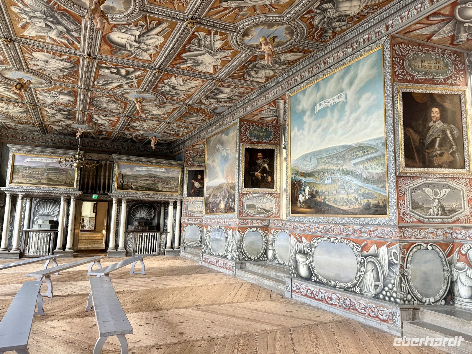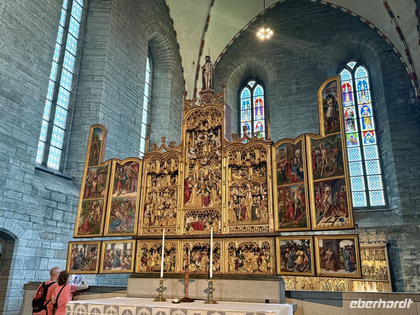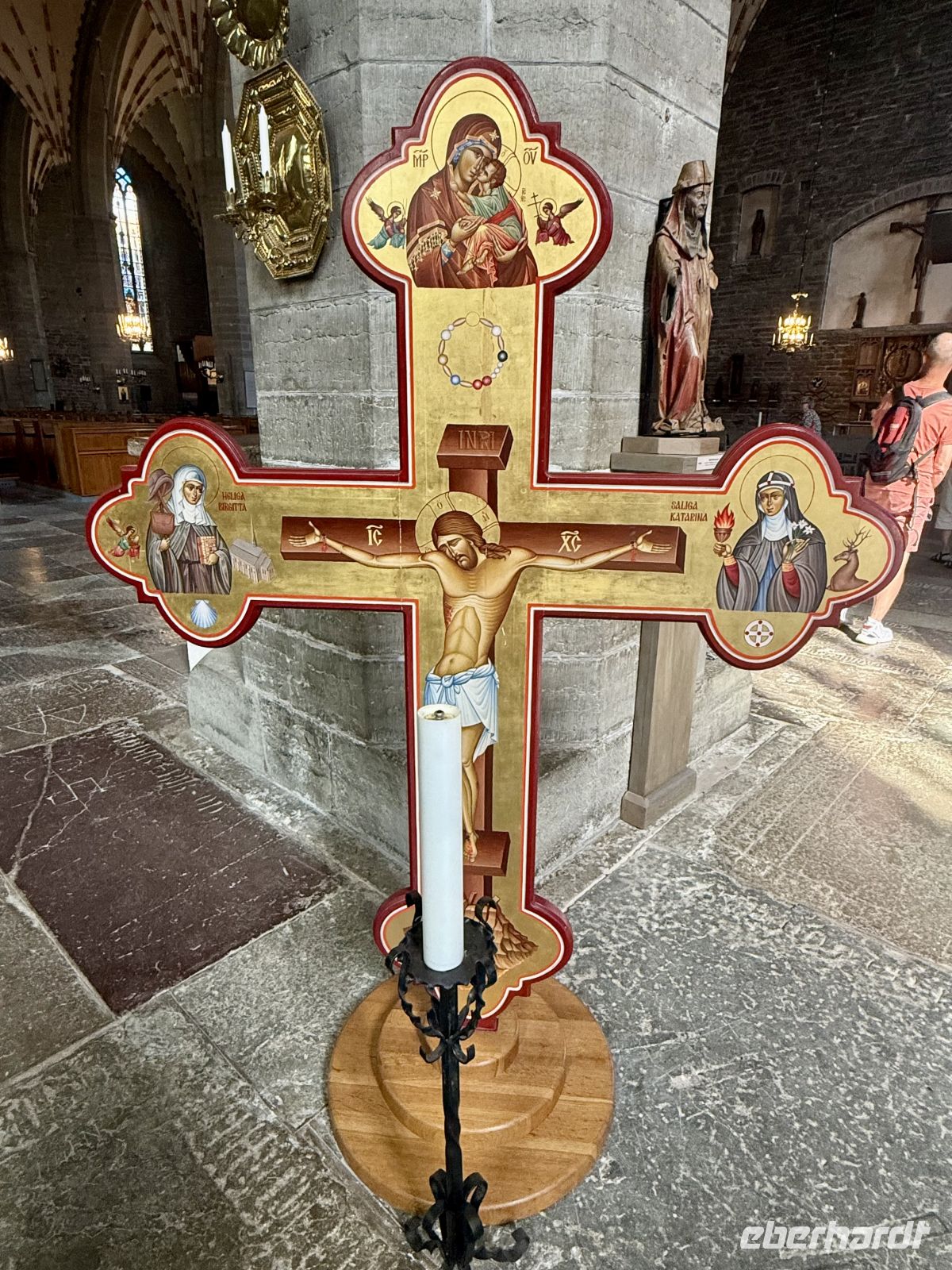 Wenig später erreichten wir die historische Stadt Vadstena, idyllisch am Westufer des Vätternsees gelegen. Vadstena ist vor allem bekannt durch die heilige Birgitta von Schweden, die im 14. Jahrhundert das gleichnamige Kloster Vadstena gründete. Die Heilige Birgitta von Schweden (1303–1373) war eine der bedeutendsten Mystikerinnen und Visionärinnen des Mittelalters. Sie stammte aus einer adeligen schwedischen Familie und widmete ihr Leben nach dem Tod ihres Mannes ganz dem Glauben. Im Jahr 1346 gründete sie das Kloster Vadstena und den Birgittenorden, der sich durch eine strenge klösterliche Lebensweise und tiefes soziales Engagement auszeichnete. Ihre Visionen und Offenbarungen hatten europaweiten Einfluss, und sie wurde 1391 heiliggesprochen. Heute gilt sie als eine der Schutzheiligen Europas und als herausragende Figur der schwedischen Geschichte. Das ehemalige Klostergebäude, heute Museum, vermittelt eindrucksvoll die spirituelle und kulturelle Bedeutung des Ortes im Mittelalter. Anschließend besichtigten wir auch das imposante Renaissanceschloss Vadstena, das einst von König Gustav Wasa in Auftrag gegeben wurde und heute als Museum dient. König Gustav Wasa (1496–1560), auch bekannt als Gustav I. Wasa, war der Begründer der modernen schwedischen Monarchie. Er führte Schweden in die Unabhängigkeit von Dänemark nach dem Ende der Kalmarer Union und wurde 1523 zum König gewählt. Unter seiner Herrschaft leitete er tiefgreifende Reformen ein, darunter die Einführung der Reformation in Schweden. Als Bauherr ließ er das Schloss Vadstena im 16. Jahrhundert ausbauen, das ursprünglich als Kloster gegründet worden war. Heute ist das Schloss ein bedeutendes Beispiel für schwedische Renaissancearchitektur und ein Symbol für die Macht und den Einfluss Gustav Wasas. Den Transfer in die Altstadt und zurück legten wir ganz gemütlich mit einem kleinen Bähnchen zurück.
