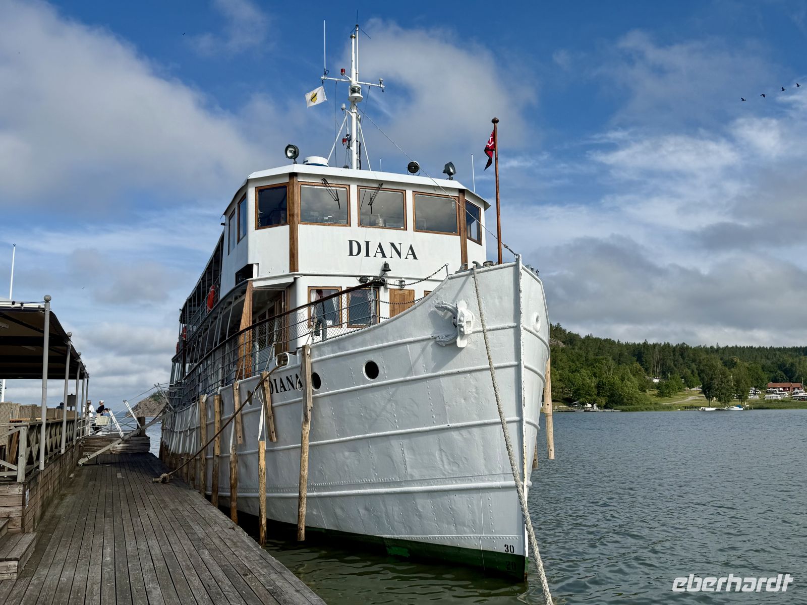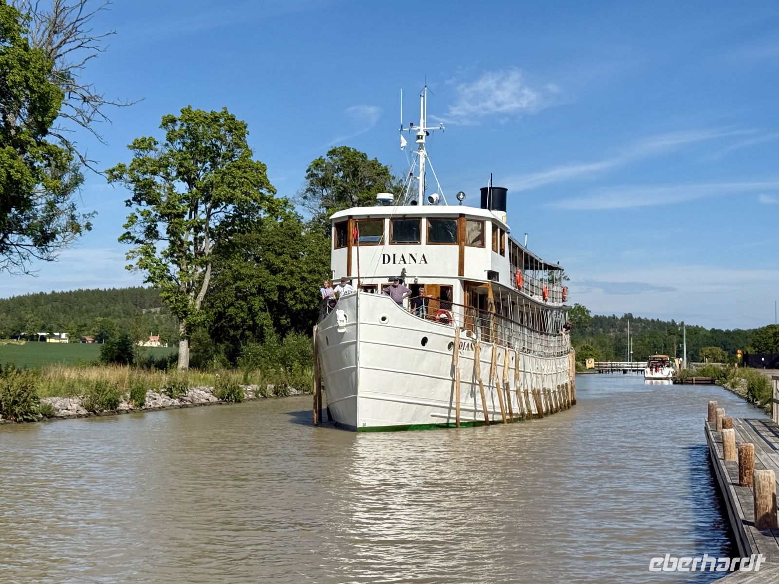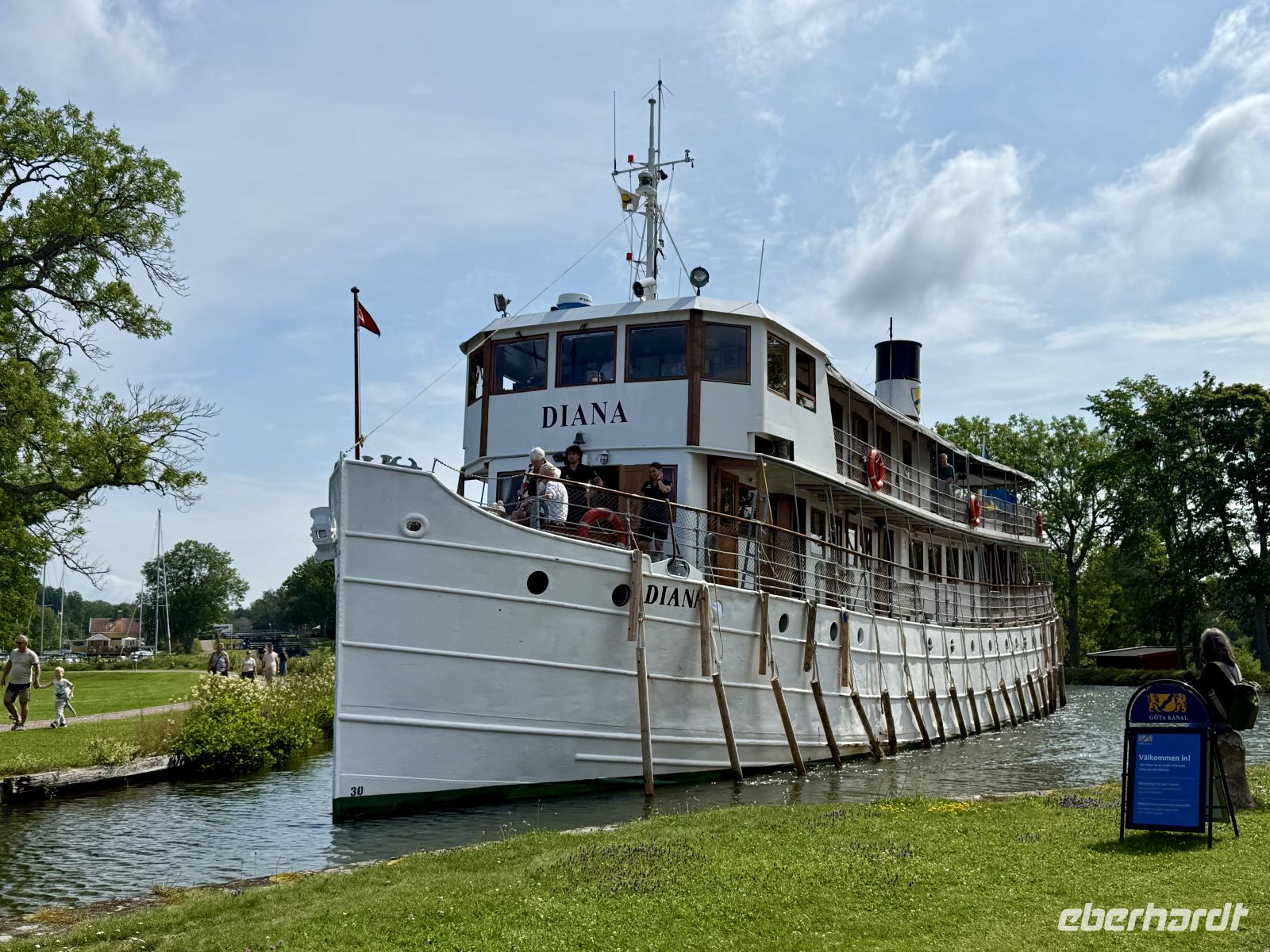 Die MS Diana ist ein echtes Schmuckstück: Sie wurde 1931 gebaut und gehört zu den ältesten noch regelmäßig auf dem Göta-Kanal verkehrenden Passagierschiffen – auch wenn das älteste Schiff der Flotte die MS Juno aus dem Jahr 1874 ist. Das klassisch-elegante Schiff bietet Platz für etwa 50 Gäste und versprüht mit seinen holzverkleideten Innenräumen und dem historischen Ambiente einen ganz besonderen Charme. Trotz ihrer Geschichte verfügt sie über modernen Komfort und eignet sich ideal für diese entschleunigte Reise durch Schwedens Wasserstraßen.