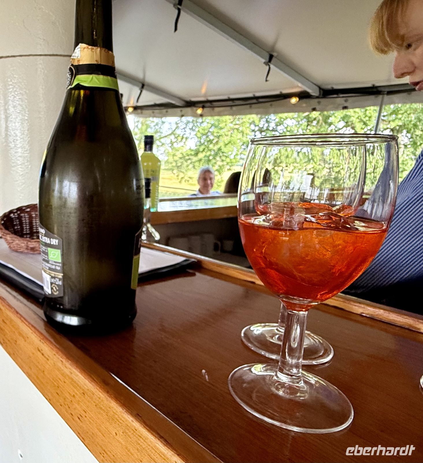 Kurz vor dem Abendessen bereitete uns die Crew im Barbereich frische Cocktails, darunter einen fruchtigen Aperol Spritz und einen sommerlichen Limoncello Spritz – die perfekte Erfrischung nach einem ereignisreichen Tag.