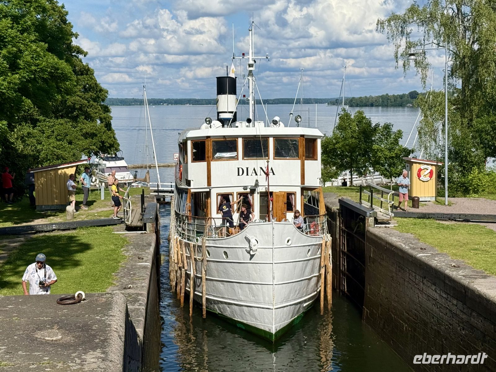 12.07.2025 – Einschiffung MS Diana: Hammarby Schleuse, Mälarsee, Schloss Drottningholm, Södertälje, Ostsee, Stegeborg