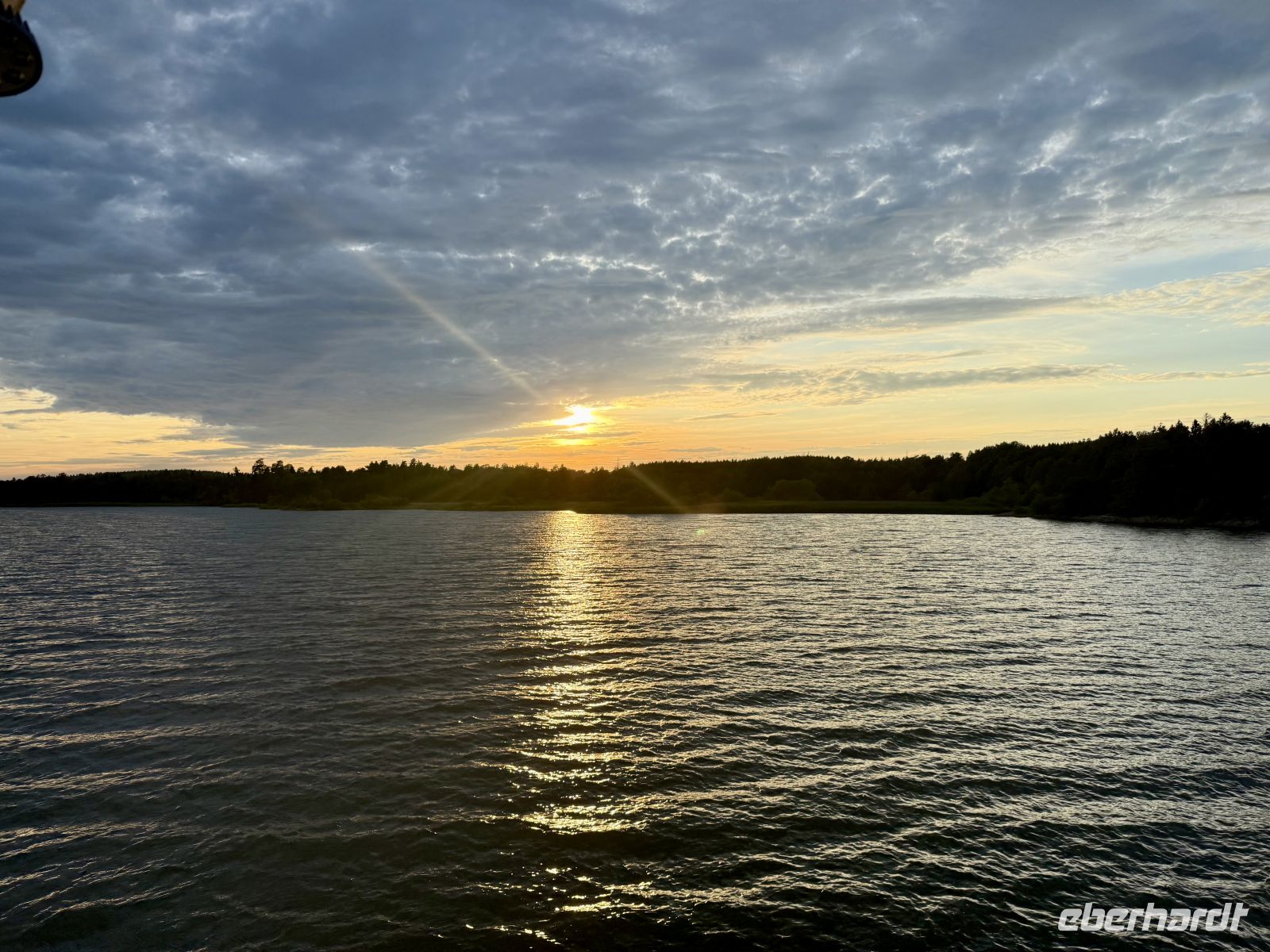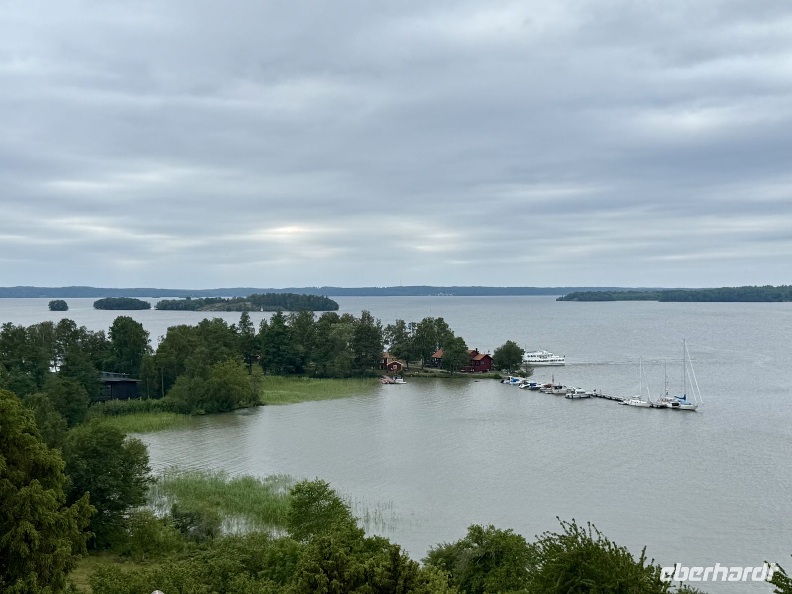 Bereits um 07:30 Uhr legte unser Schiff ab und wir fuhren direkt hinaus auf den Vätternsee, den zweitgrößten See Schwedens. Mit einer Fläche von rund 1.900 Quadratkilometern und einer Tiefe von bis zu 128 Metern wirkt er mehr wie ein Binnenmeer als ein See. Bei ruhigem Wasser genossen wir die Fahrt und die weite Aussicht.