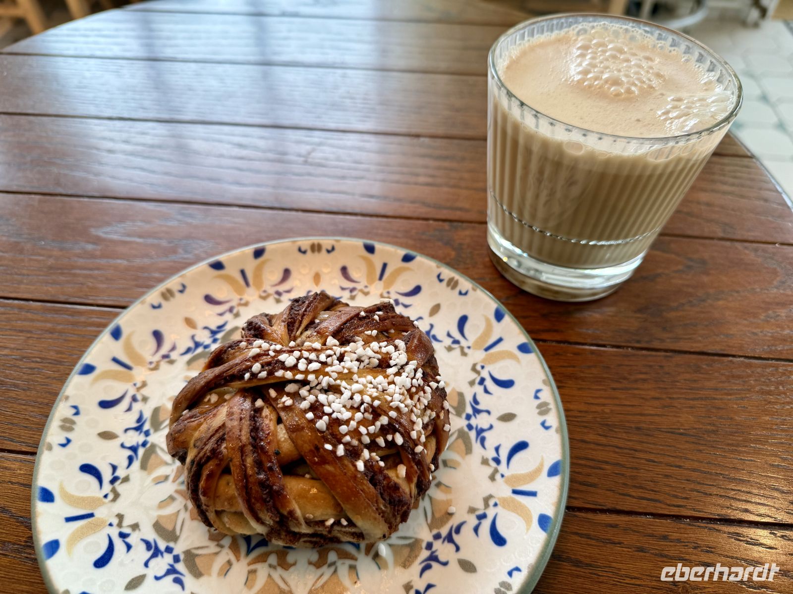 Als süßen Abschluss gönnten wir uns ein Stück der klassischen Prinzessinnentorte (Prinsesstårta) in der traditionsreichen Bäckerei Grillska Huset, die für ihre feinen Backwaren und gemütliche Atmosphäre bekannt ist. Die Prinzessinnentorte ist eine traditionelle schwedische Torte aus luftigem Biskuitboden, Vanillecreme, Schlagsahne und einer typischen grünen Marzipandecke.