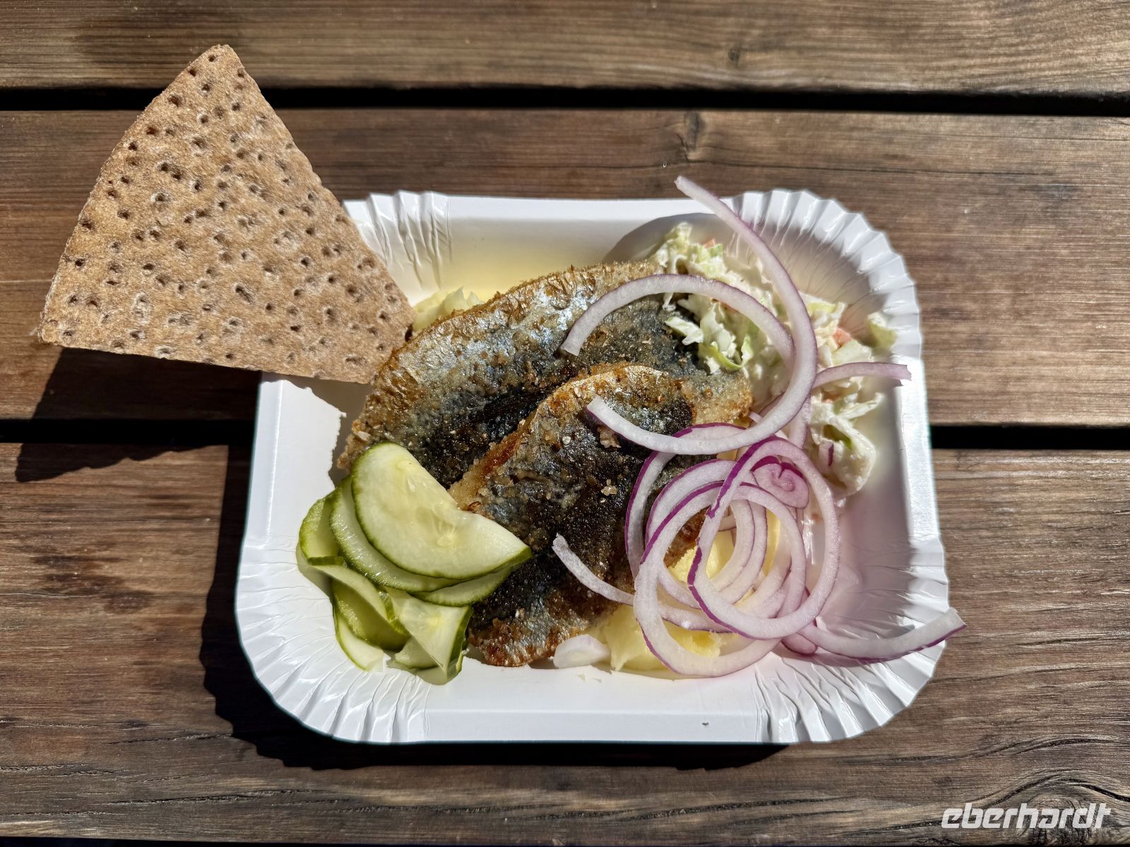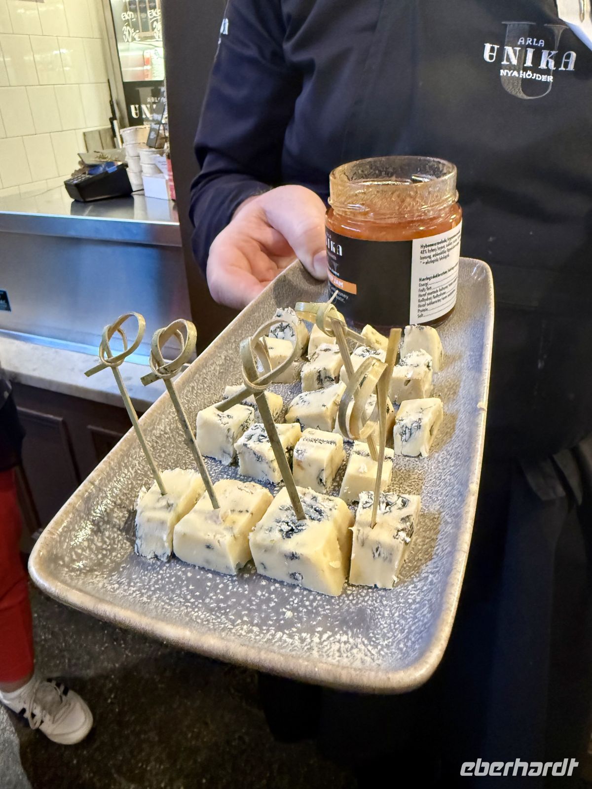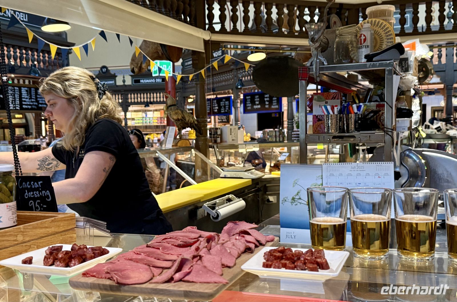 Nach diesem kulturellen Auftakt starteten wir unsere kulinarische Entdeckungstour in der historischen Östermalms Saluhall, einer Markthalle aus dem Jahr 1888. Hier verkosteten wir eine Auswahl an typisch schwedischen Delikatessen: Käse, Wurst, Fisch und als Highlight ein Glas schwedisches Bier. Danach probierten wir noch eine lokale Spezialität – Strömming, den berühmten Ostseehering, der traditionell eingelegt oder gebraten serviert wird.