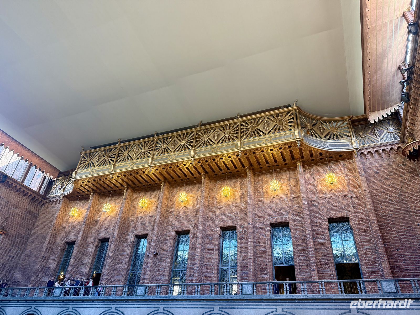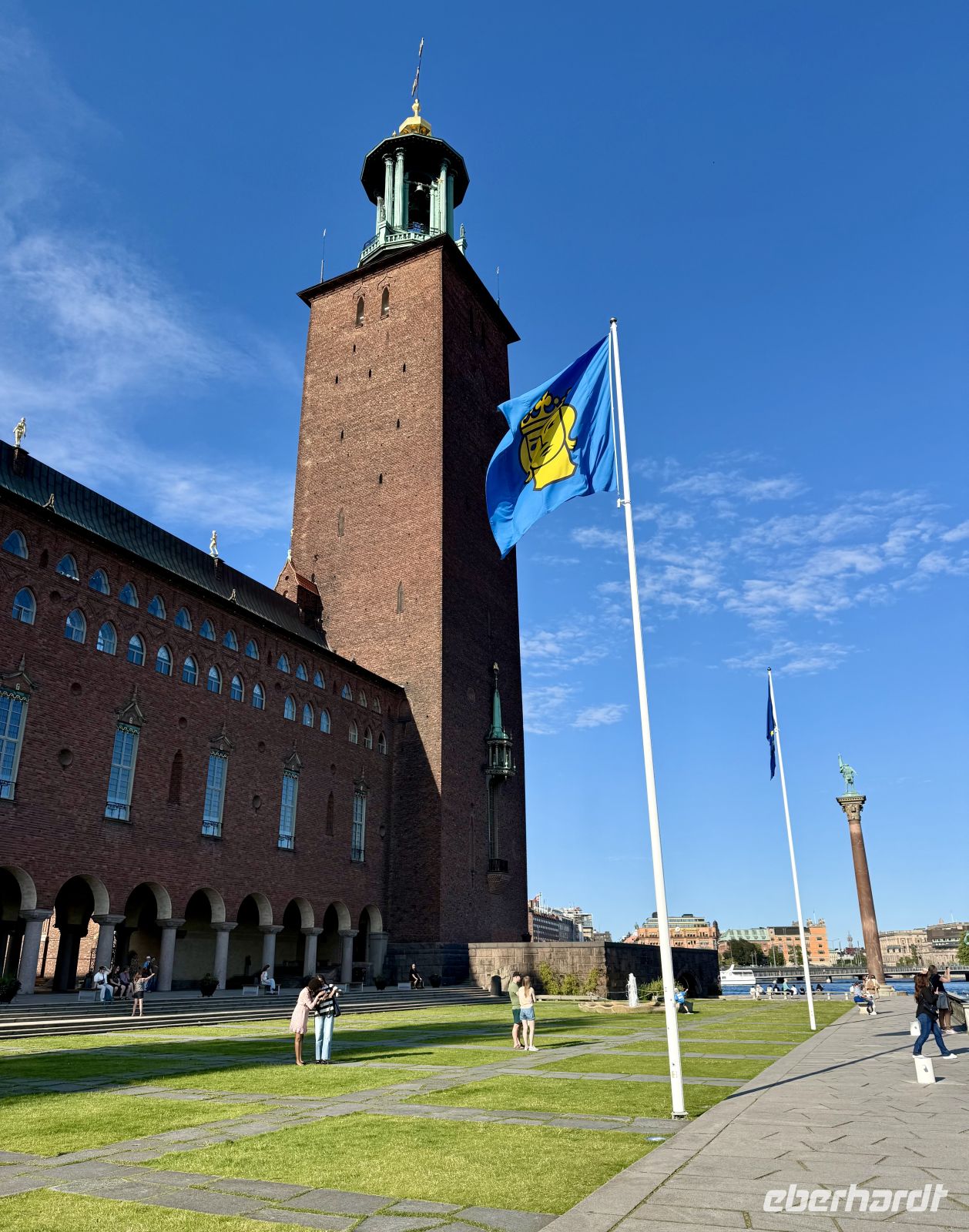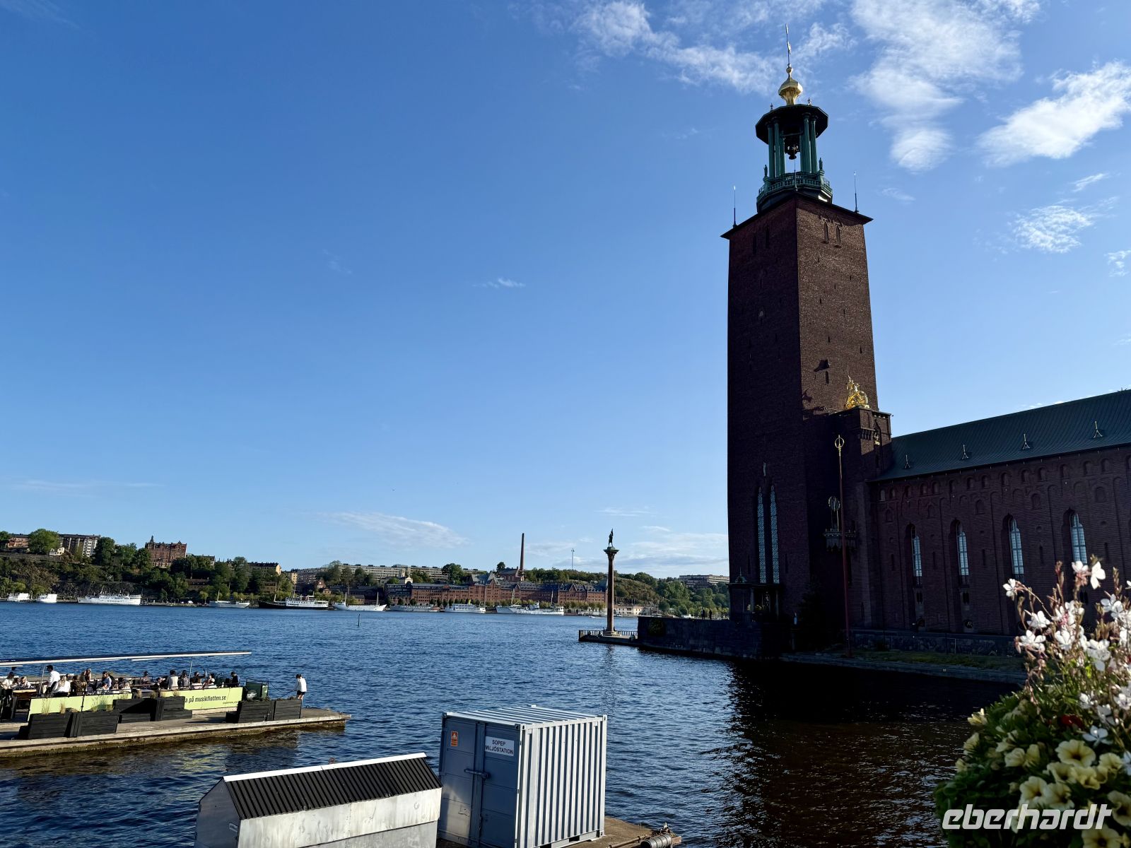 Unser Tag begann mit einer Stadtrundfahrt im Bus, bei der wir einen ersten Überblick über die wichtigsten Sehenswürdigkeiten und die Struktur der Stadt erhielten. Im Anschluss daran erkundeten wir Stockholm zu Fuß und machten zunächst Halt am imposanten Stadshuset (Stockholmer Rathaus). Dieses prachtvolle Gebäude am Wasser, erbaut zwischen 1911 und 1923 im Nationalromantikstil, ist eines der Wahrzeichen der Stadt. Besonders berühmt ist es als Veranstaltungsort für das alljährliche Nobelbankett, das im Anschluss an die Nobelpreisverleihung stattfindet. Im beeindruckenden Blauen Saal, der tatsächlich rot ist, sowie im prächtigen Goldenen Saal feiern jedes Jahr Preisträger aus aller Welt.
