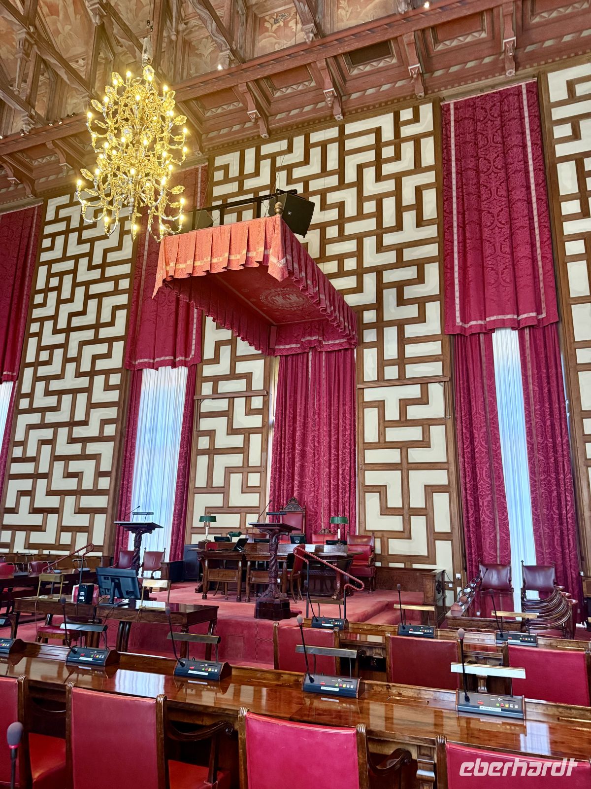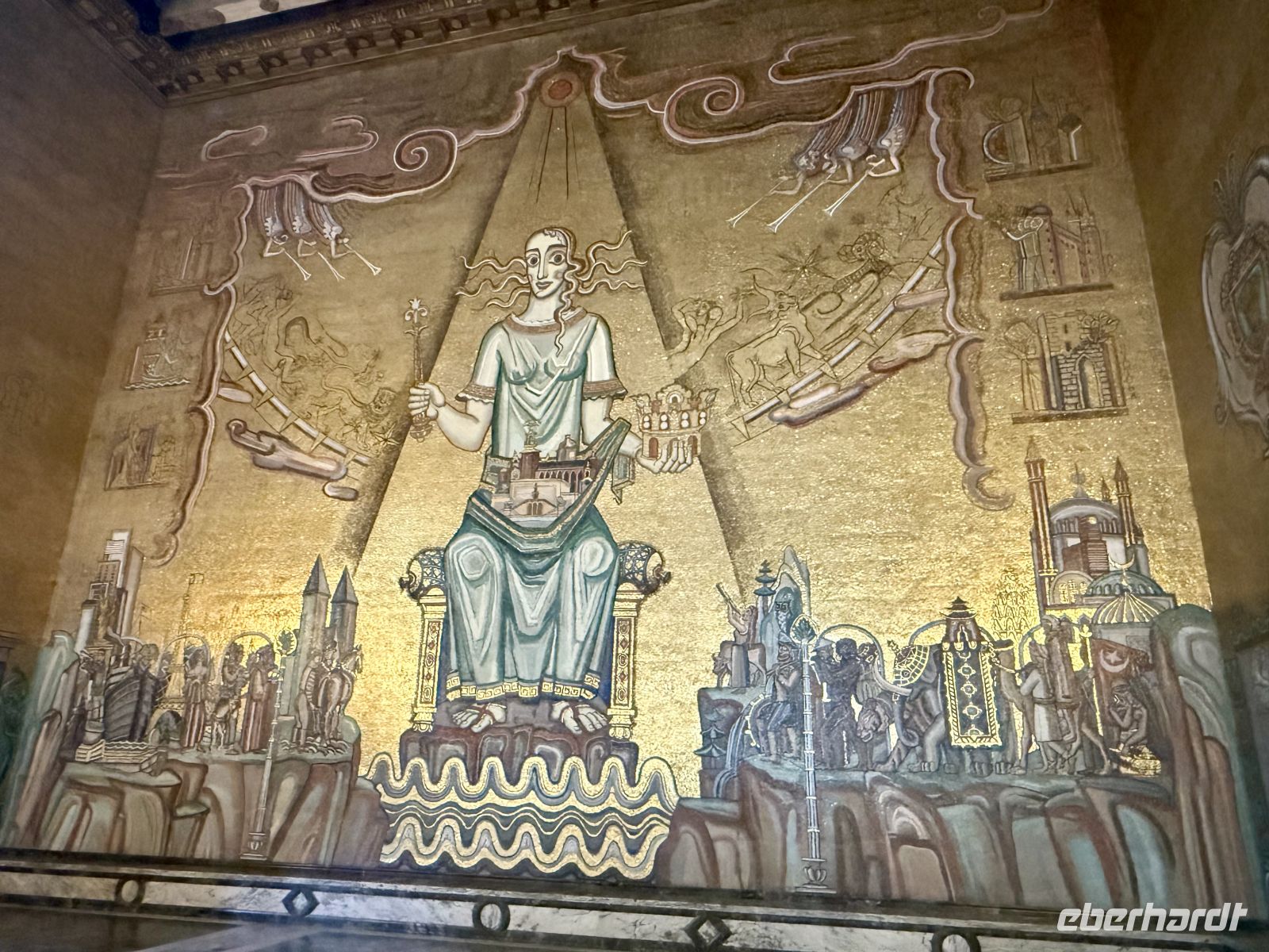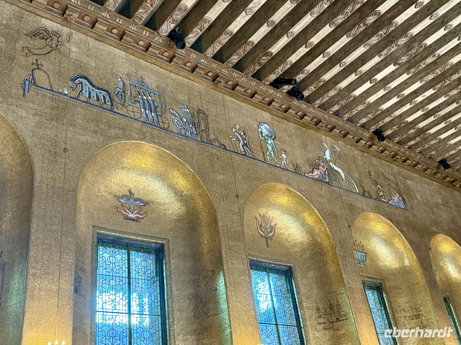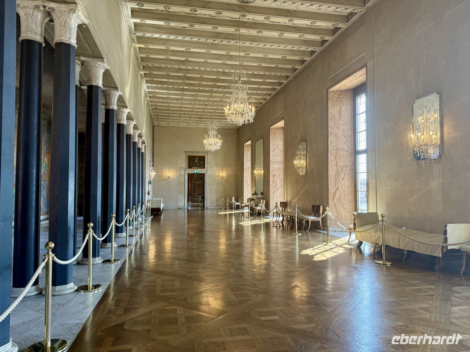 Unser Tag begann mit einer Stadtrundfahrt im Bus, bei der wir einen ersten Überblick über die wichtigsten Sehenswürdigkeiten und die Struktur der Stadt erhielten. Im Anschluss daran erkundeten wir Stockholm zu Fuß und machten zunächst Halt am imposanten Stadshuset (Stockholmer Rathaus). Dieses prachtvolle Gebäude am Wasser, erbaut zwischen 1911 und 1923 im Nationalromantikstil, ist eines der Wahrzeichen der Stadt. Besonders berühmt ist es als Veranstaltungsort für das alljährliche Nobelbankett, das im Anschluss an die Nobelpreisverleihung stattfindet. Im beeindruckenden Blauen Saal, der tatsächlich rot ist, sowie im prächtigen Goldenen Saal feiern jedes Jahr Preisträger aus aller Welt.