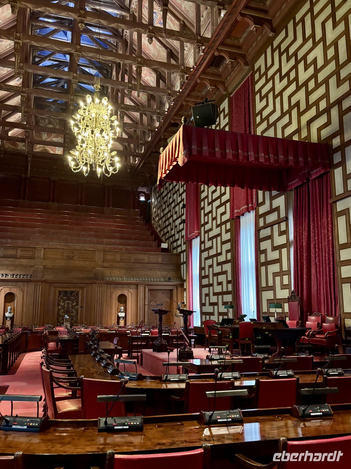 Marmorboden soll wie gebrochenes Eis wirken, und im Ratssaal staunen wir über die gewaltige Holzdecke in Form eines umgekehrten Wikingerschiffes. Dann betreten wir den „Goldenen Saal“ – unser persönlicher Höhepunkt. Tausende vergoldete Mosaiksteine funkeln, mittendrin die Königin des Mälarsees. Tim erklärt uns die Symbolik, und wir genießen den Luxus, die Räume ganz für uns allein zu haben.