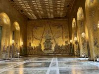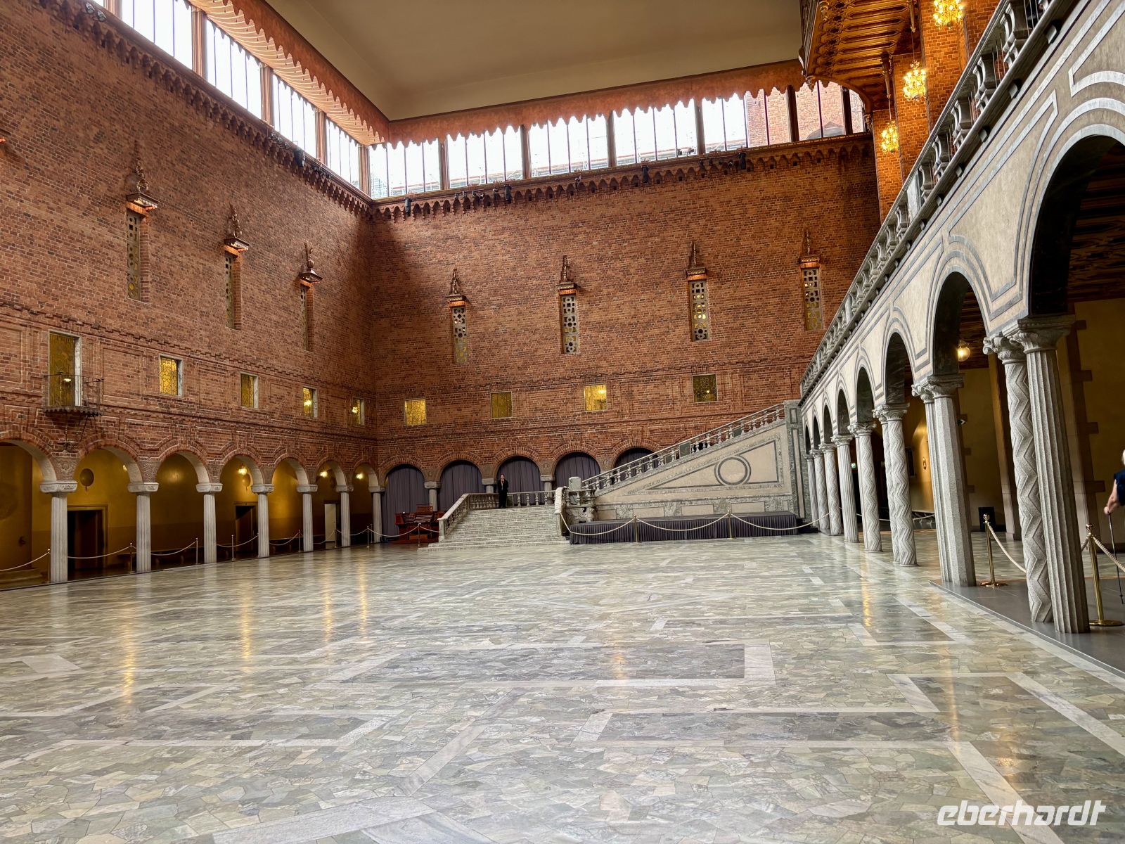 Erstes Ziel: das Rathaus. Schon von außen beeindruckt der markante Turm, und drinnen geht es Schlag auf Schlag. Im „Blauen Saal“, der eigentlich aus roten Ziegelsteinen besteht, erfahren wir, dass hier beim Nobelbankett über 1.300 Gäste feiern – die Königsfamilie inklusive. Der