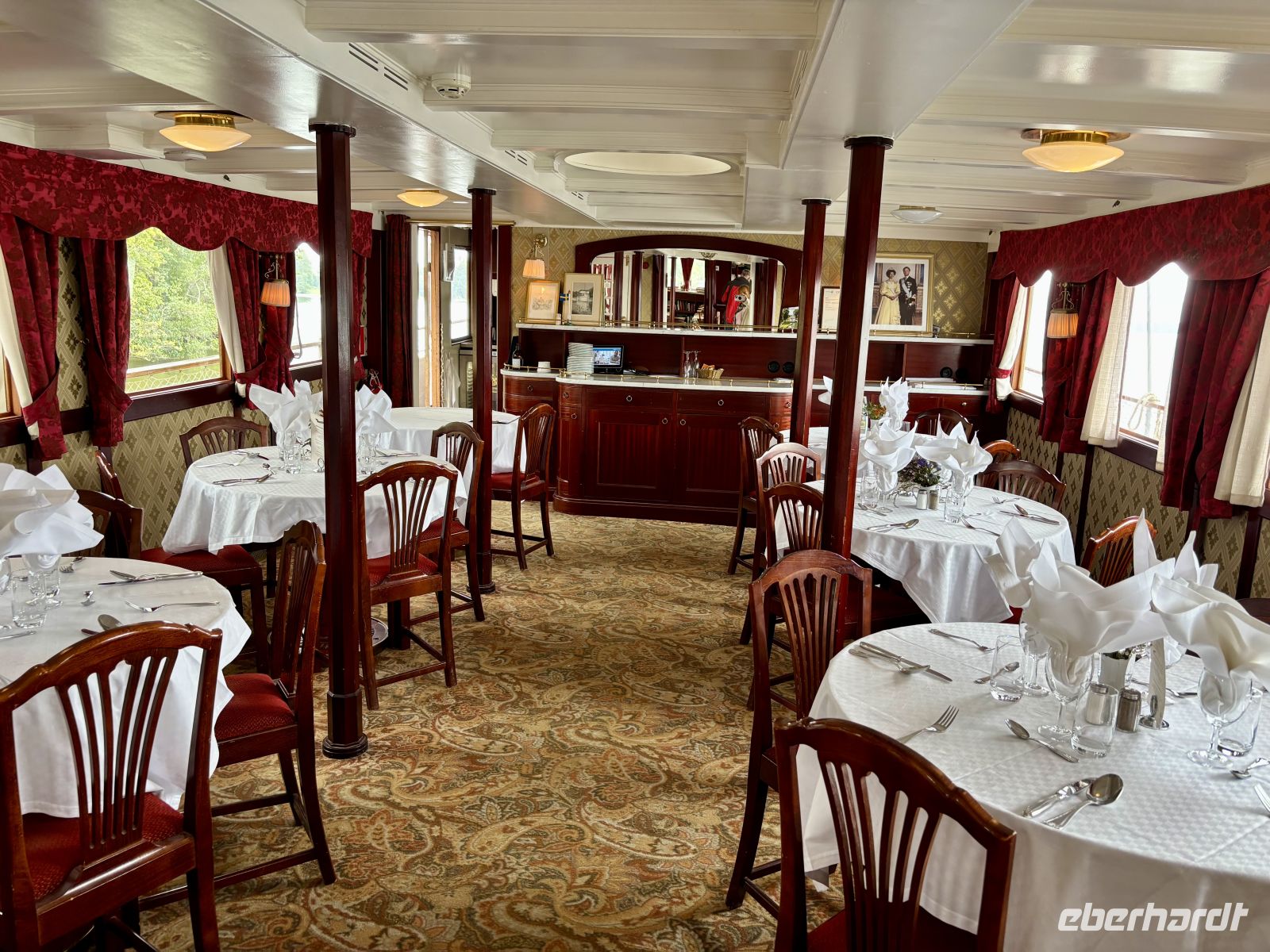 Gut gestärkt vom reichhaltigen Frühstücksbuffet treten wir unseren Transfer zum Hafen an. Nach einer kurzen Fahrt ist es so weit: Vor uns liegt die altehrwürdige MS Diana. Die Schiffsmannschaft, adrett im maritimen Stil gekleidet, erwartet uns bereits strahlend am Kai. Freundlich werden wir an Bord begrüßt, zu unseren Kabinen geführt und mit unserer kleinen „Puppenstube“ vertraut gemacht. Zuerst wirkt unser neues Zuhause winzig klein – doch schnell gewöhnen wir uns an die Gegebenheiten und bewegen uns bald ganz selbstverständlich auf unserem schwimmenden Heim.