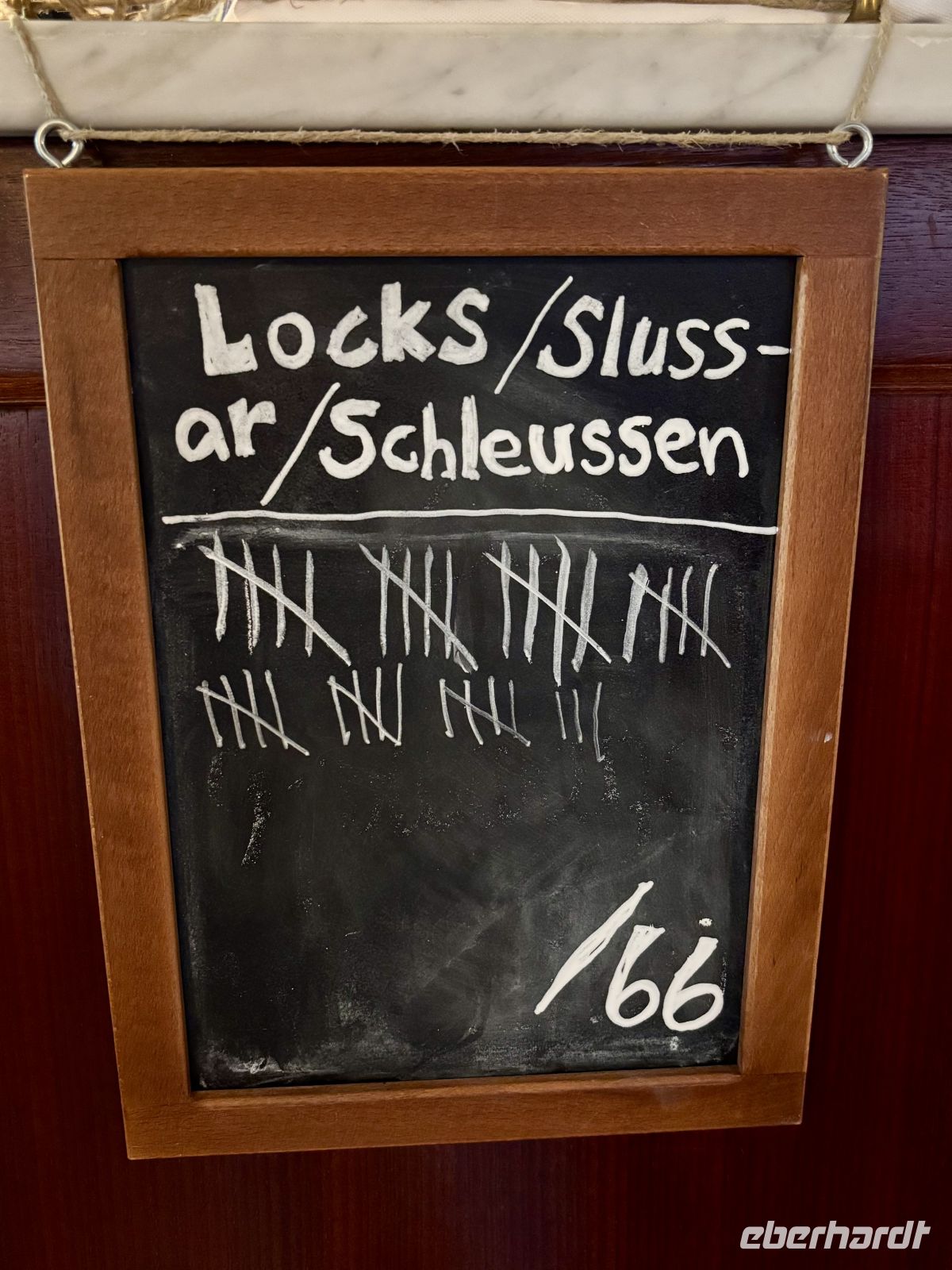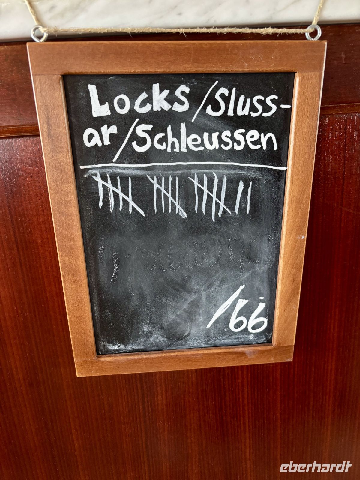 In Sjötorp steigen wir aus und begleiten die Diana, wie sie acht Schleusenkammern hinabsteigt – ein beeindruckendes Schauspiel, das wir Schritt für Schritt mitverfolgen. Zwischendurch besuchen wir das kleine Kanalmuseum. Schon bei Annas täglichen Informationsrunden haben wir erfahren, dass der Göta-Kanal einst von rund 78.000 schwedischen Soldaten gebaut wurde. Hier im Museum wird anschaulich gezeigt, unter welch harten Bedingungen diese Arbeit damals geschah. Ein Blick ins nostalgischen Café, eingerichtet wie Anno dazumal, versetzt uns in längst vergangene Zeiten. Manche können im dazugehörigen Museumsshop nicht widerstehen und decken sich mit hübschen Souvenirs ein.