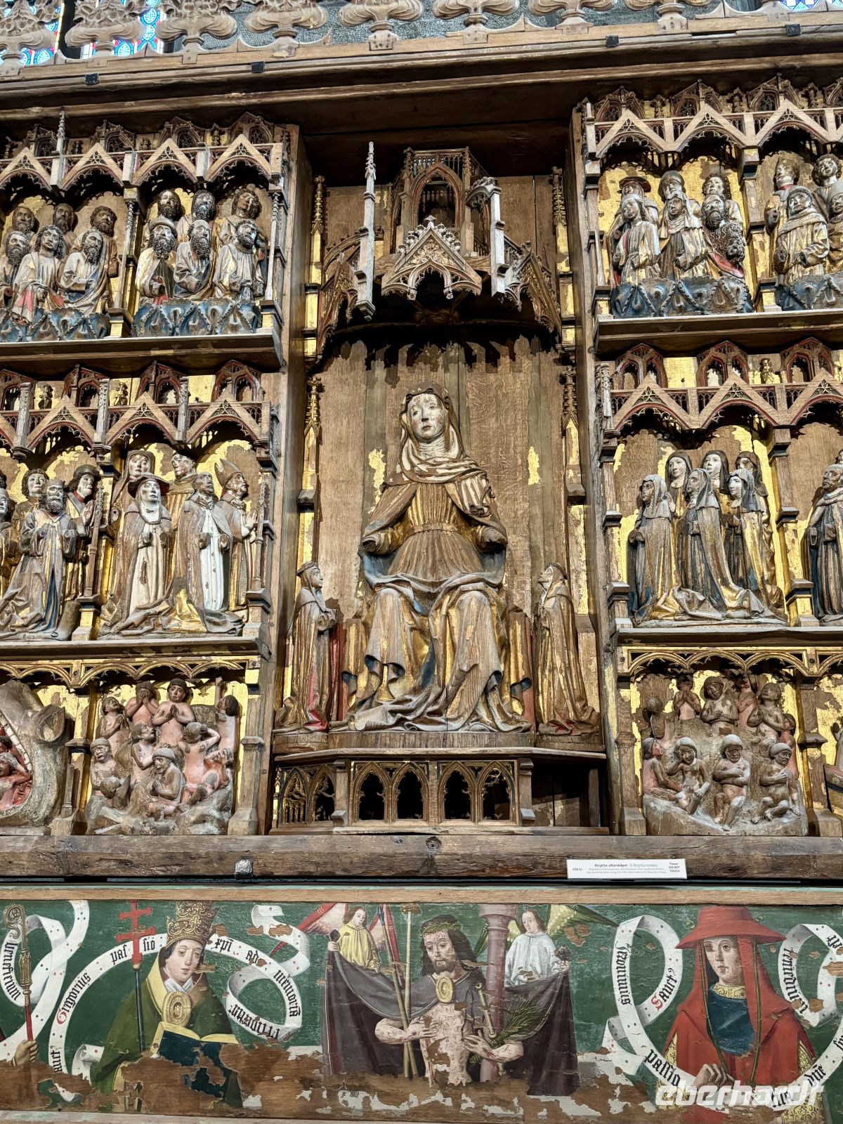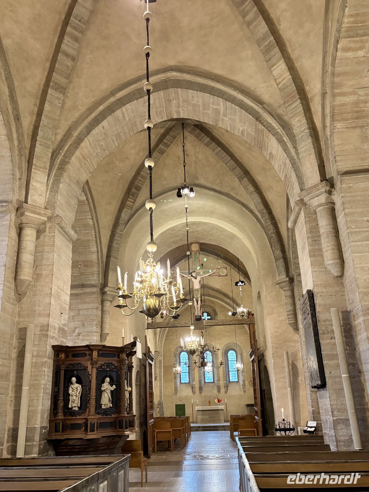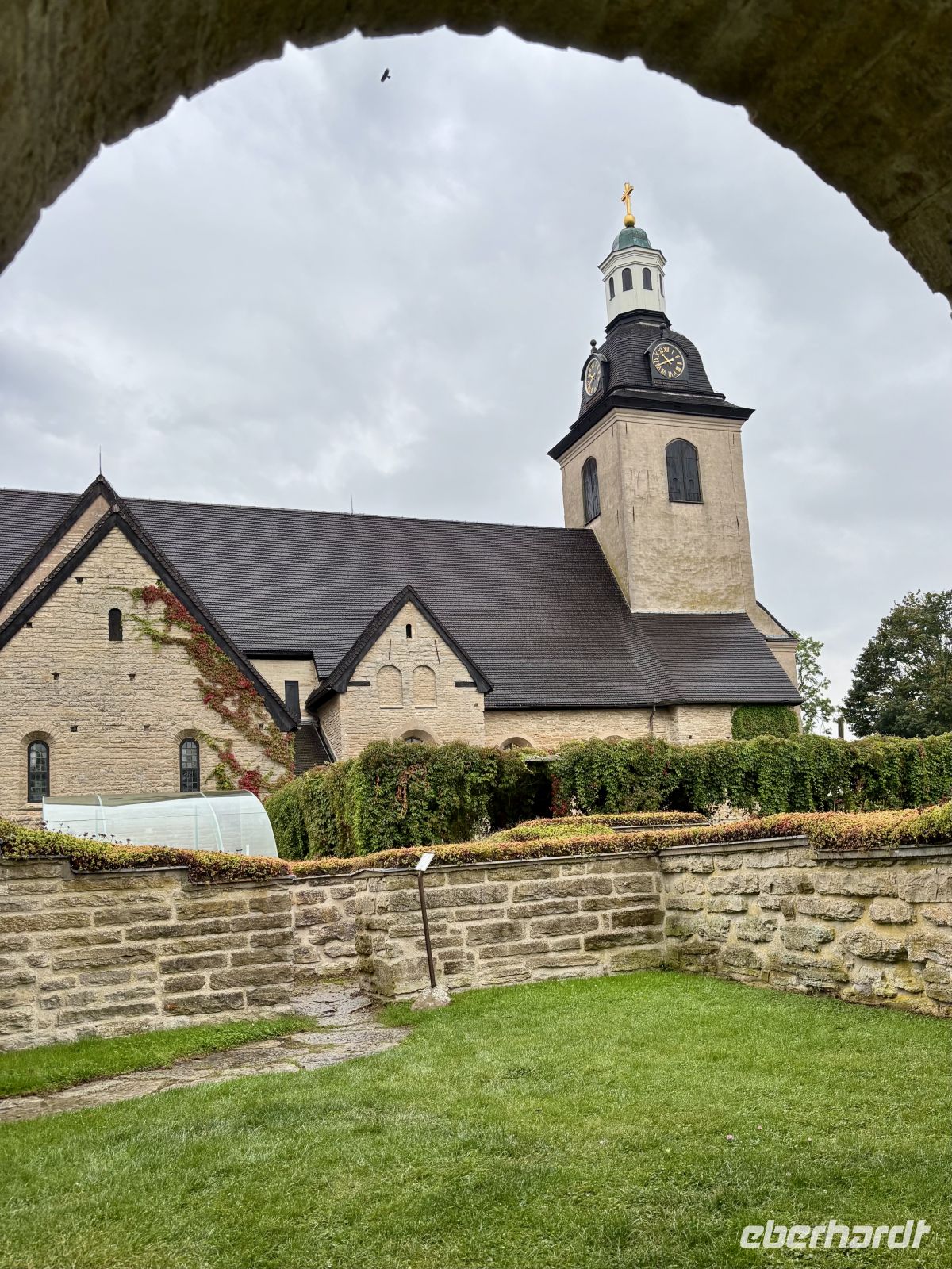 Und tatsächlich – die zweite Nacht verläuft wesentlich ruhiger als die erste. Gut ausgeschlafen erscheinen wir nach und nach zum Frühstück, bedienen uns am liebevoll angerichteten Buffet und sind gespannt auf die berühmte Schleusentreppe von Berg. Ganze 18,8 Meter wird unser Schiff heute dort gehoben – ein echtes Schauspiel, das wir uns nicht entgehen lassen wollen. Manche von uns verfolgen das spannende Manöver direkt vom Deck aus, andere spazieren am Ufer entlang und sehen die Diana von außen beim Schleusengang. Währenddessen bietet Anna einen Ausflug zum Kloster Vreta an. Die 1162 erbaute Klosterkirche ist die älteste Steinkirche Schwedens und gehörte einst zu einem Nonnenkloster. Drinnen entdecken wir zahlreiche mittelalterliche Kunstschätze, darunter ein beeindruckendes Kruzifix, das noch vor dem 13. Jahrhundert datiert ist.