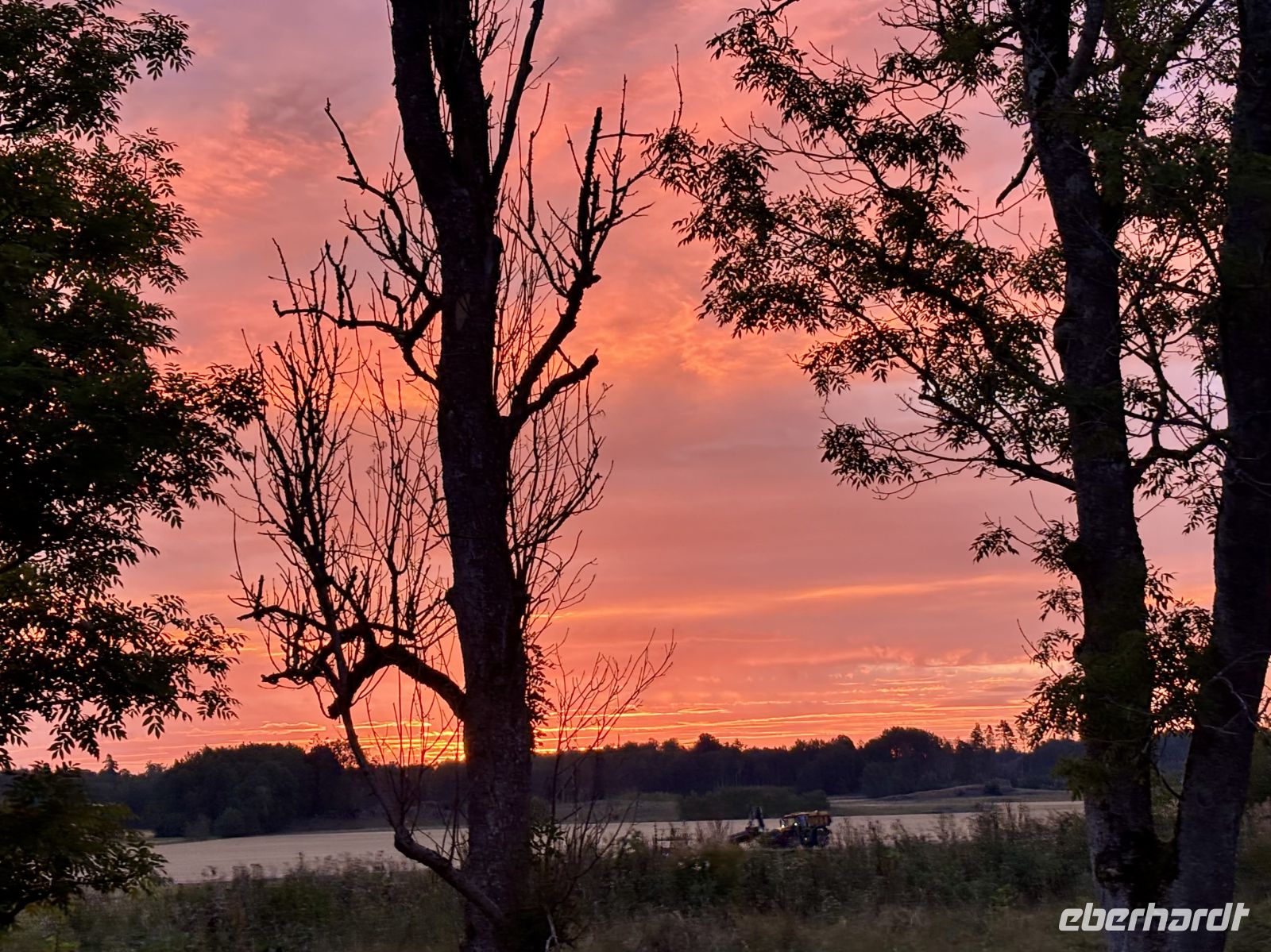 Schon um 6:00 Uhr wecken uns die vertrauten Motorengeräusche. Der Kapitän steuert die Diana in Richtung Sjötorp, und nun geht es abwärts – Schleuse für Schleuse klettert unser Schiff hinunter. Für die Frühaufsteher unter uns gibt es eine besondere Belohnung: ein spektakulärer Sonnenaufgang taucht den Himmel in blutrote Farben und verleiht der Szenerie eine verheißungsvolle Stimmung.