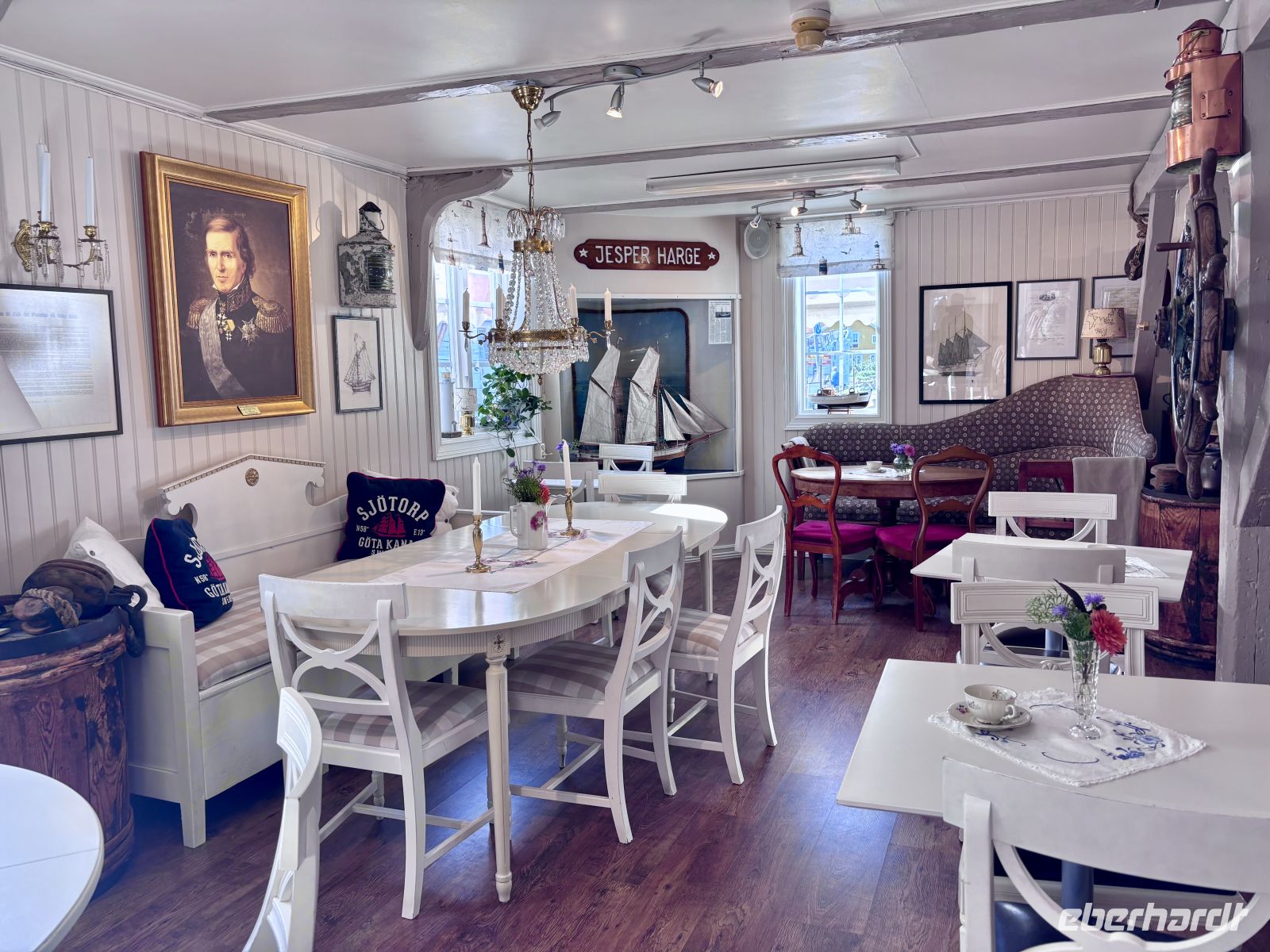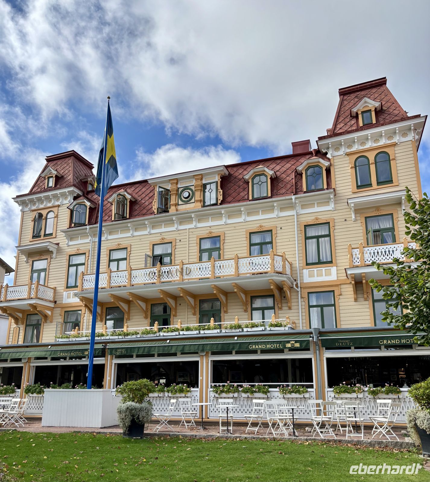 Noch steht uns ein letzter Tag in Schweden bevor, und Eberhardt Travel hat für uns ein besonders schönes Abschlussprogramm organisiert. Wir beginnen ihn mit einem ausgiebigen Frühstück im herrlichen Innenhof unseres Jugendstil-Hotels – nach den beengten Kabinen auf dem Schiff kommt uns dieser Ort fast wie ein Palast vor.