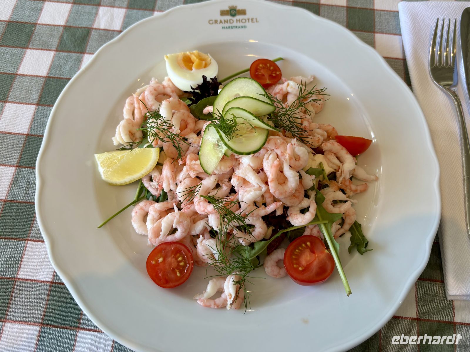 Über den bunten Holzhäusern erhebt sich mächtig die Festung Carlsten. Bei strahlendem Sonnenschein schlendern wir durch Marstrand, vorbei an den bunten Holzhäusern und den prächtigen Hotels und Villen, die einst als Sommerfrische für König und Gefolge dienten. Ein besonderes Highlight erwartet uns im traditionsreichen Grand Hotel: ein reich belegtes Krabbenbrot – „Krabben satt“ für alle!