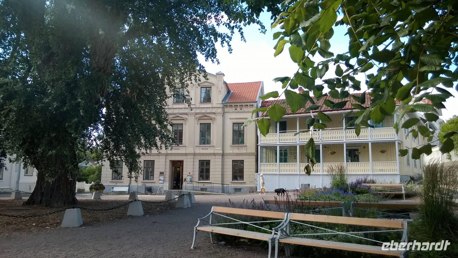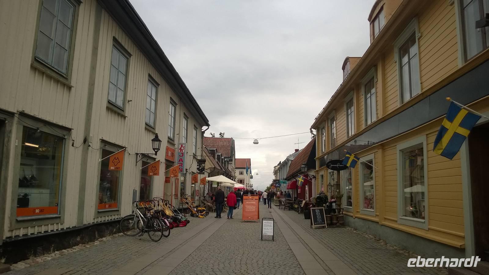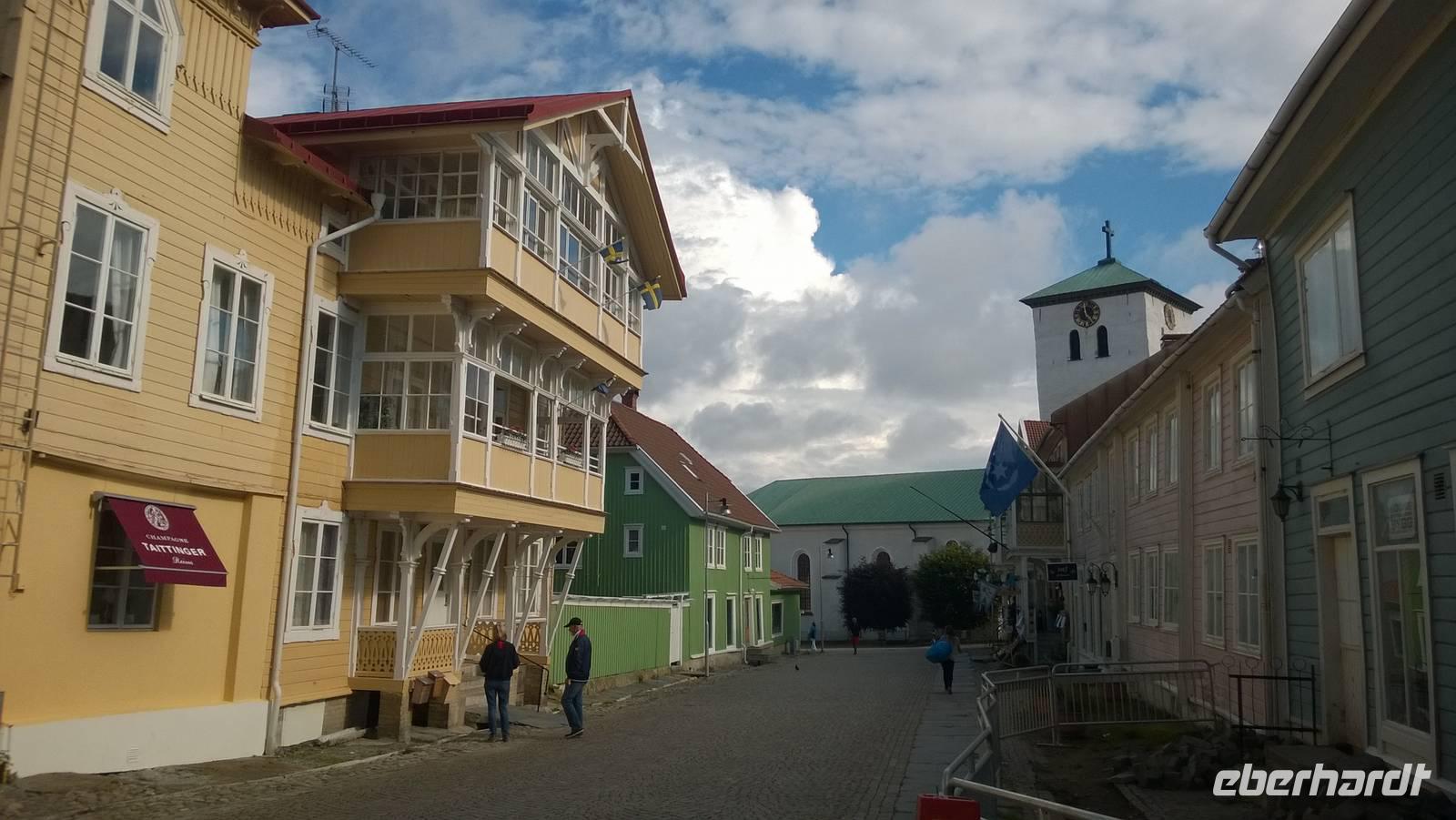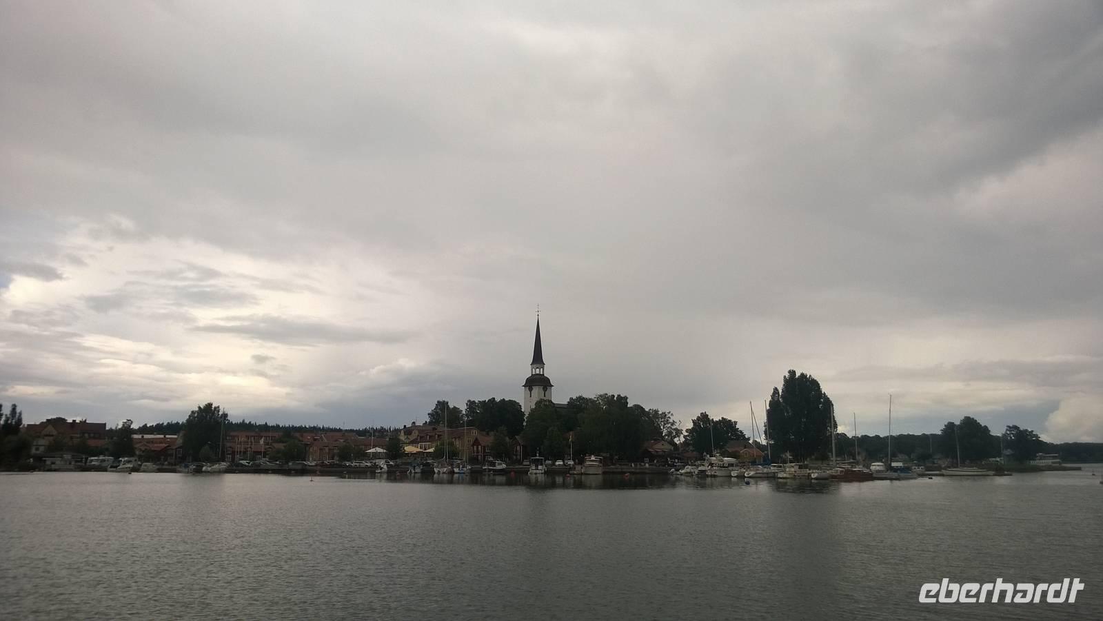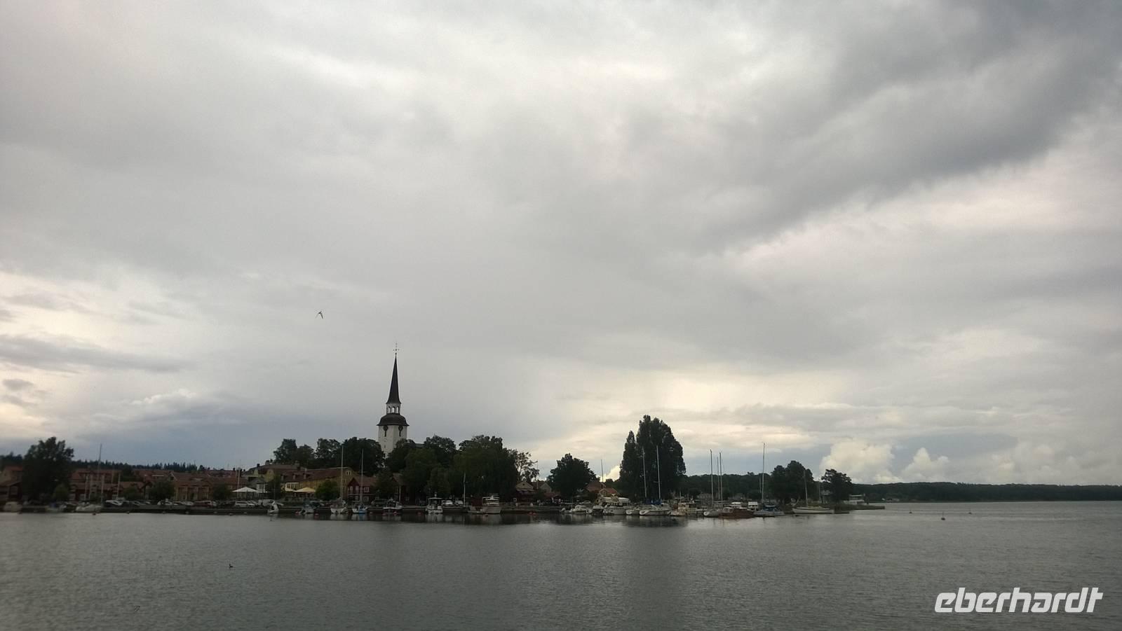 Heute nun endlich fahren wir nach Schweden! Über die Öresund-Brücke überqueren wir die Grenze und kommen auf der schwedischen Seite in Malmö an. Dort werden wir aber noch auf unserer Rückfahrt Zeit zum Bummel in der Stadt finden, sodass wir nun keine Minute verlieren und in den Norden nach Göteborg fahren. In Schwedens zweitgrößter Stadt erwartet uns nämlich schon Ingrid, unsere Stadtführerin. Sie zeigt uns die Masthaugen-Kirche und noch einige schöne Ecken ihrer Stadt. Am Nachmittag verabschieden wir uns von ihr und fahren weiter auf die Insel Marstrand. Das Gefühl von Ferien liegt hier in der Luft! Die Sonne kommt zwischen den Wolken hervor, auf der kleinen Insel tummeln sich die Leute beim Eisessen und gemächlichen Spazieren. Kähne und Segelboote liegen am Kai vertäut, die Regatta-Segler vom Marstrand-Cup ebenso. Das in der Sonne glitzernde Wasser und die vielen kleinen, felsigen Skären-Inseln in der Umgebung geben ein schönes Fotomotiv. Es ist ein wunderbares Urlaubsspektakel, welches wir auf dieser kleinen Insel genießen! Irgendwann müssen wir aber doch einmal weiterfahren, nach Vänersborg, an das Südende des großen Vänern-Sees.