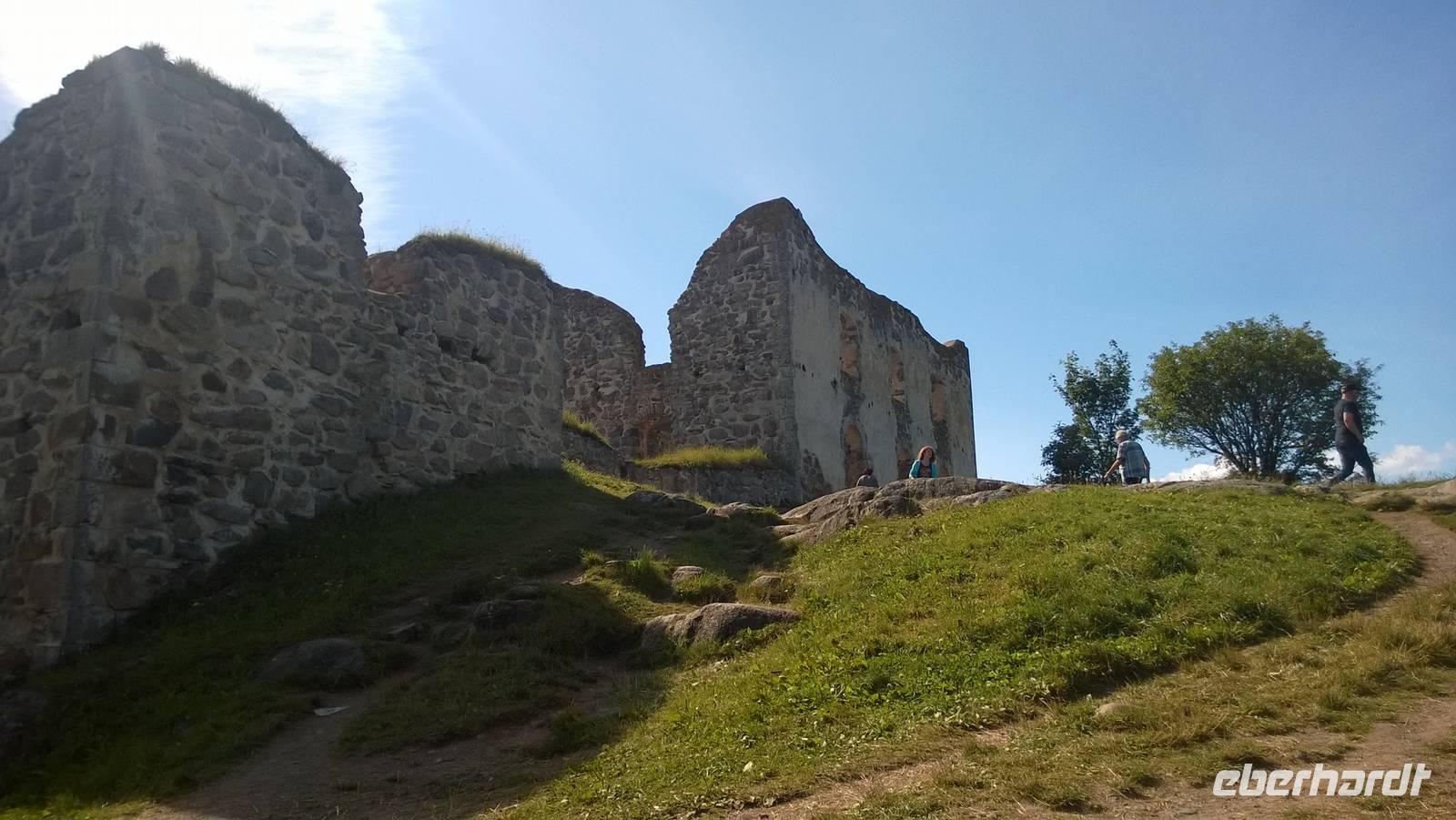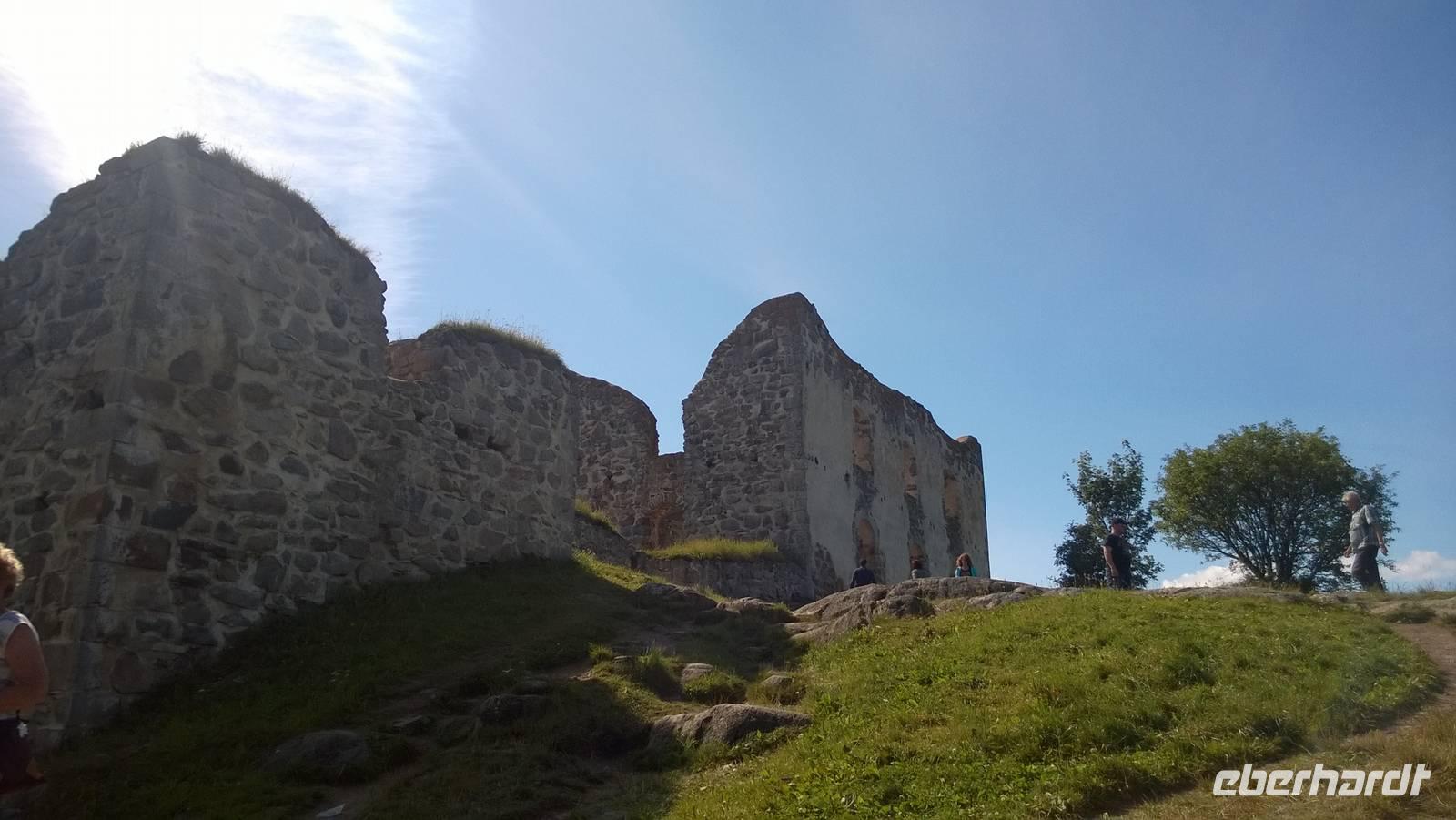 Heute schippern wir gemütlich auf dem Götakanal von Berg nach Borensberg. Das Wetter spielt mit und so genießen wir die Fahrt durch die wunderschöne schwedische Landschaft. Am Mittag kommen wir dann in Borensberg an, wo Frank schon mit seinem knallroten Bus auf uns wartet. Ein kurzes Mittagessen gibt es, und dann geht's weiter. Schon bald machen wir aber an der Ruine vom Brahehus Rast. Von hier aus haben wir einen guten Blick auf den Vättern, die Insel Visingsö und das Städtchen Gränna. Ebendorthin verschlägt es uns nun. In Gränna wird seit langer Zeit Süßes hergestellt, nämlich die traditionell rotweiß gestreiften Zuckerstangen, die sogenannten Polkagrisar. Wir schauen uns die Manufaktur an und schlendern dann noch durch den Ort. Schließlich fahren wir weiter, denn heute Abend werden wir in Växjö erwartet. Dort lädt der Wald, der direkt am Hotel liegt, noch zum Spazieren ein. Wer kommt also mit in die Heidelbeeren?