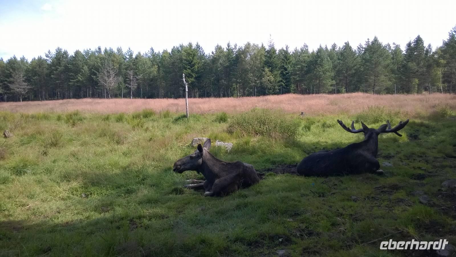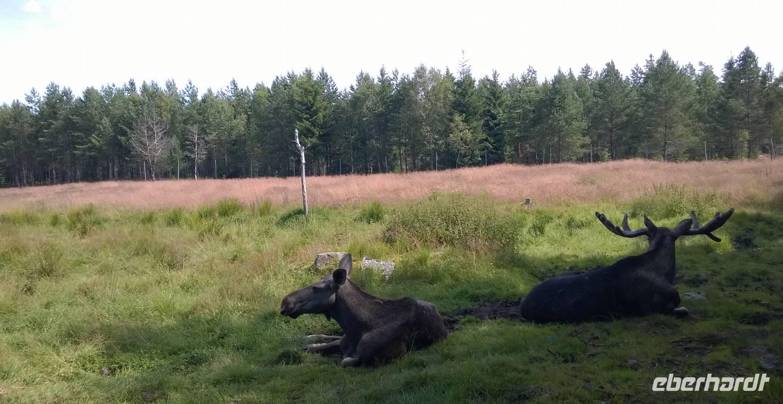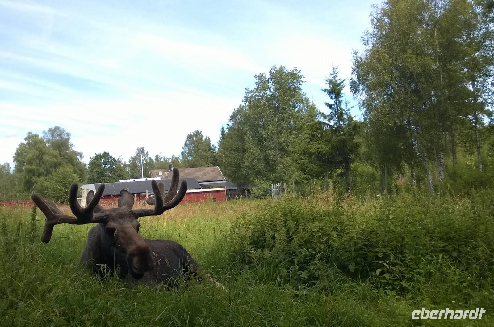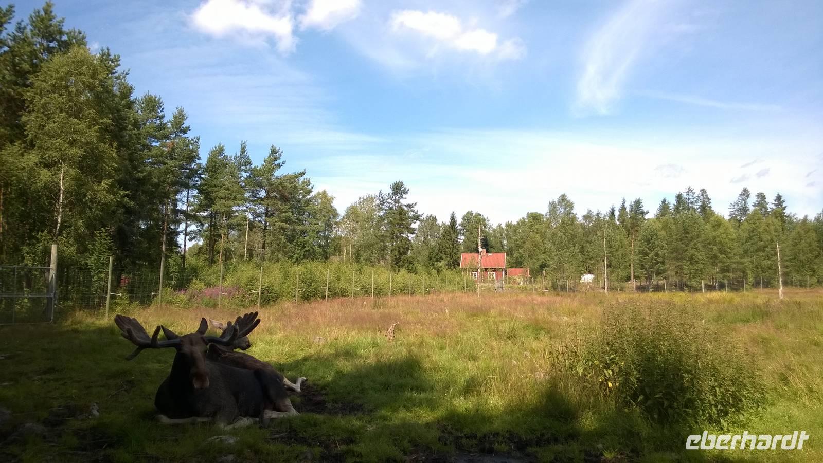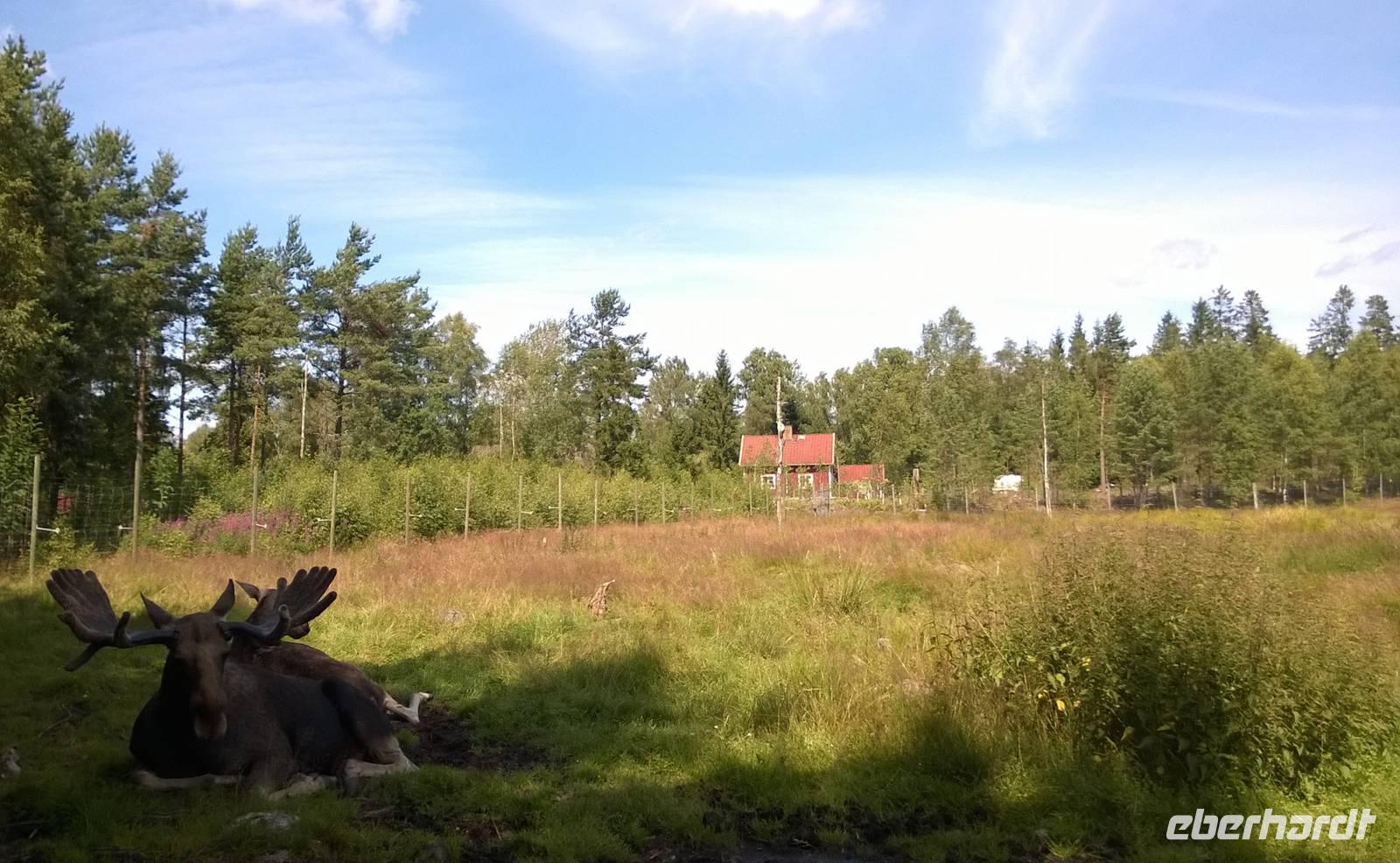 Dass wir bisher immer noch keinen Elch in freier Wildbahn gesehen haben, gleichen wir heute mit einem Besuch im Elchpark aus. Hier sehen wir einige der majestätischen Riesen und die Elchwurst, die wir grillen, schmeckt auch gut.