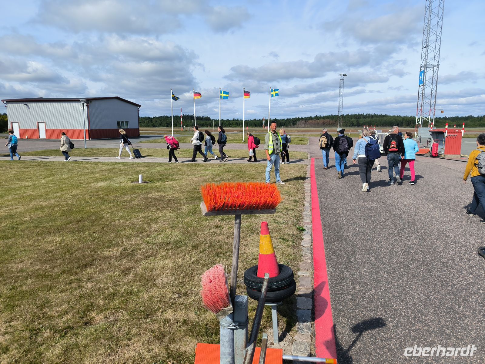 Nun ist der Moment gekommen. Nach dem ausgiebigen Frühstück verabschieden wir eine von uns, die noch länger in Stockholm bleibt, und sind ein bisschen neidisch. Alle anderen werden vom netten Chauffeurservice abgeholt und zum Flughafen Arlanda gebracht. Wir üben uns mit Unterstützung der Reiseleiterin im selbstständigen Ausdrucken von Bordkarten und Kofferbändern und schicken unser Gepäck auf die Reise. Die Sicherheitskontrolle verläuft problemlos und es bleibt noch viel Zeit für die Airport - Shopping - Mall.