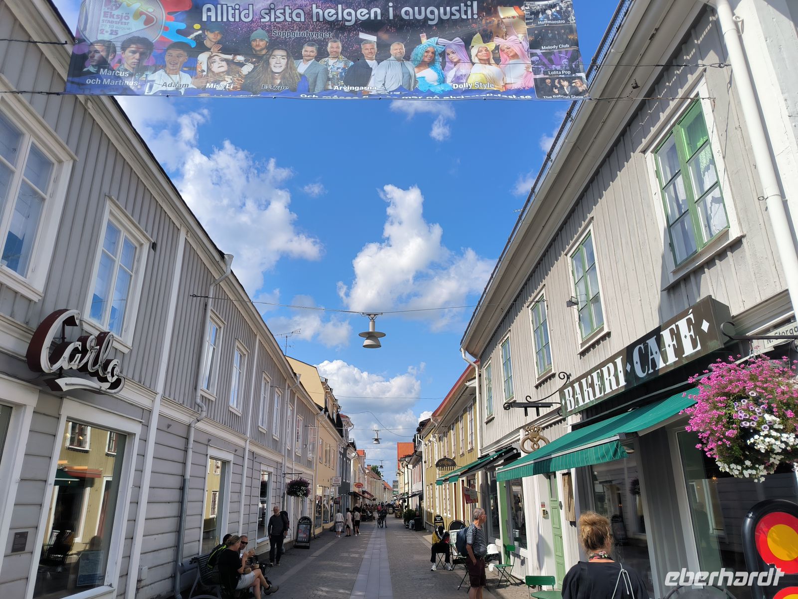 In blühenden Stadtpark vergnügen sich die schwedischen Familien. Wir nähern uns dem Zentrum der Stadt mit dem Wasserschloss in der Mitte. Wer möchte, widmet sich den Hexen, Trollen und Zauberern. Die anderen spazieren durch den Ort und widmen sich eher kulinarischen Spezialitäten.