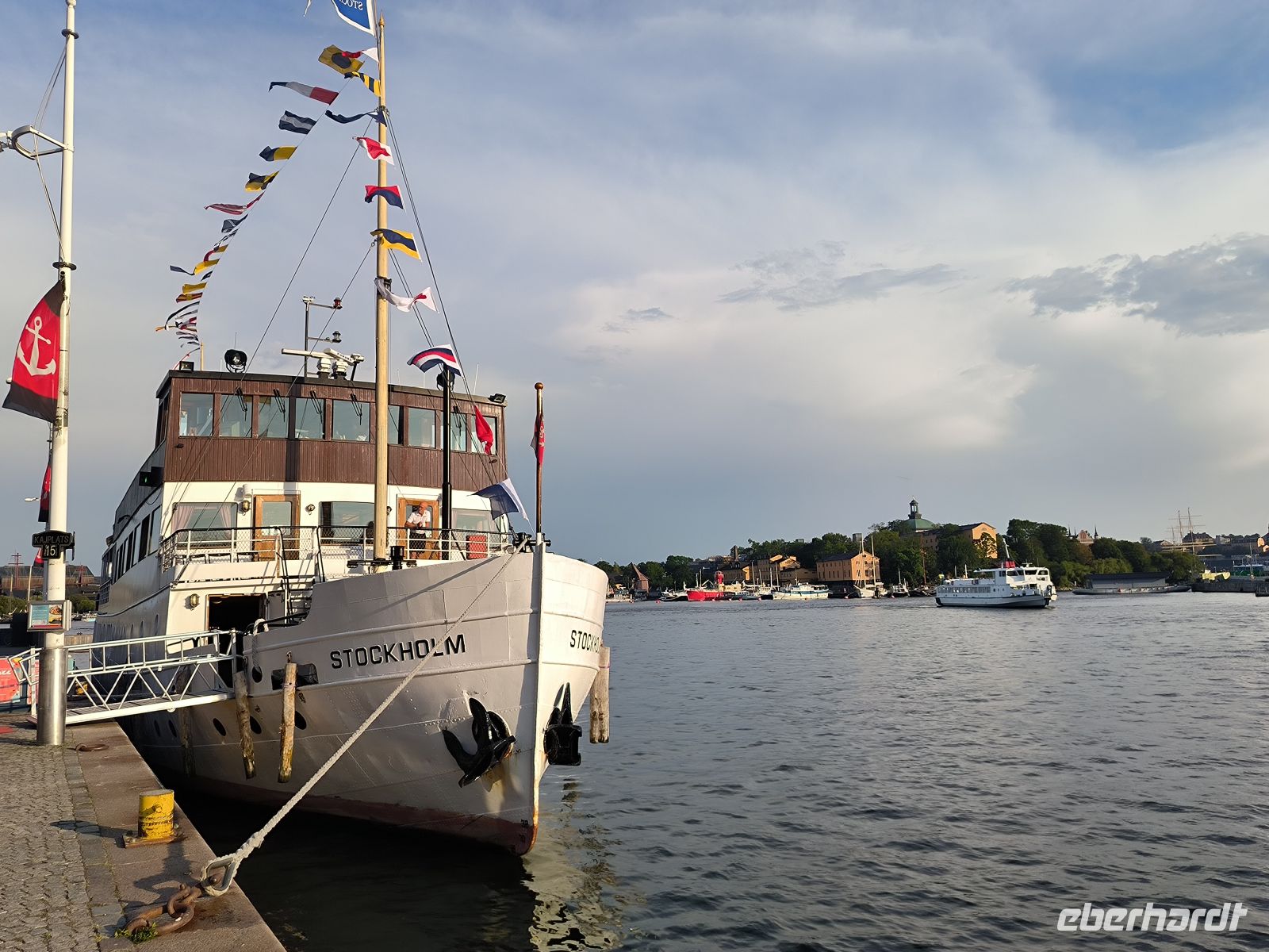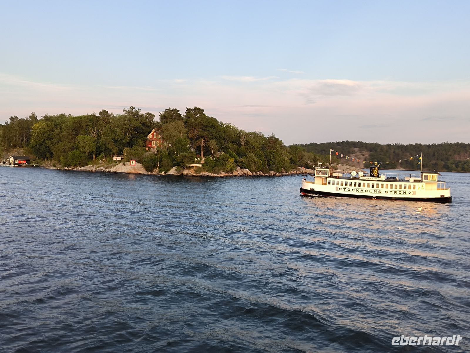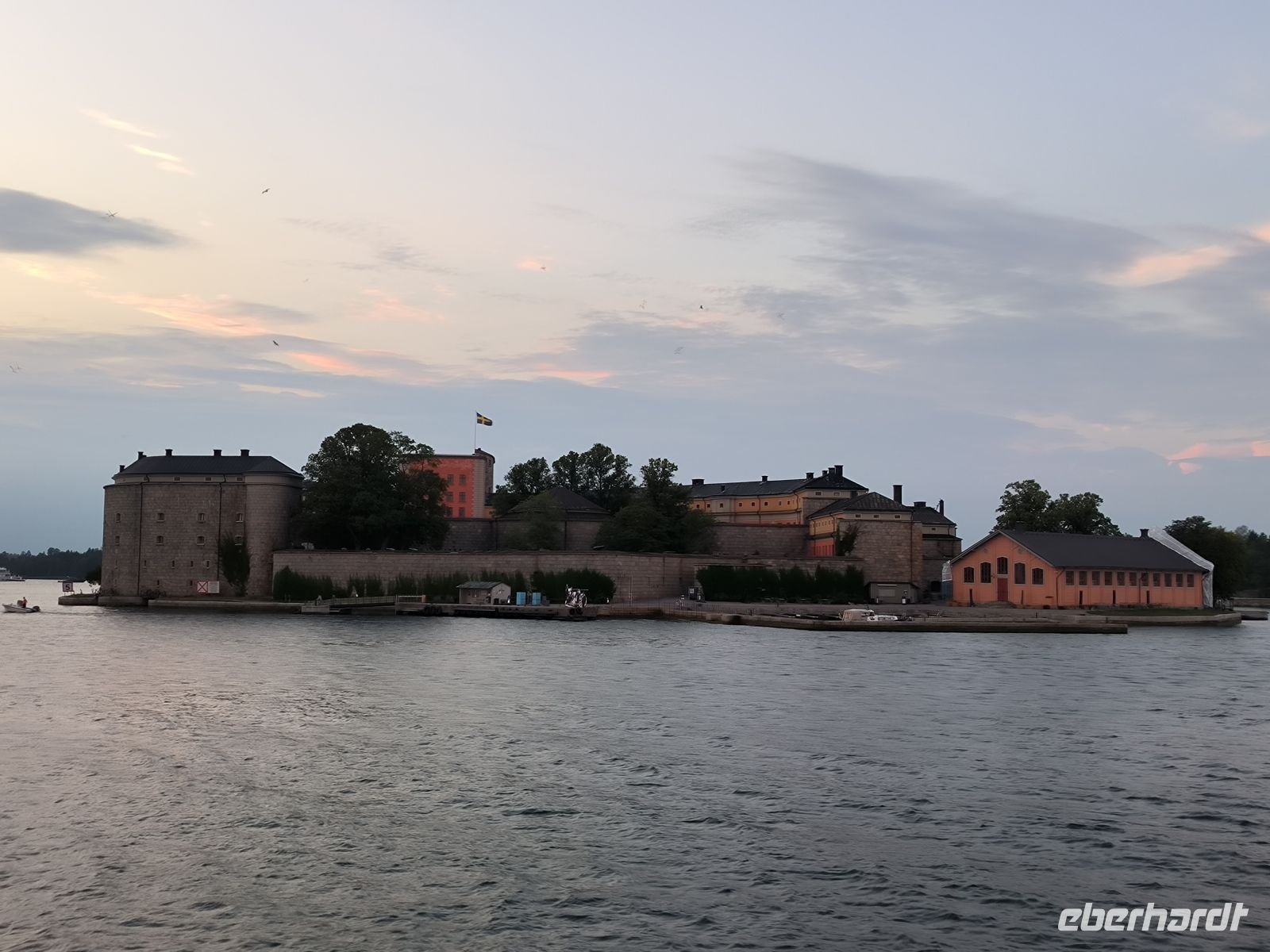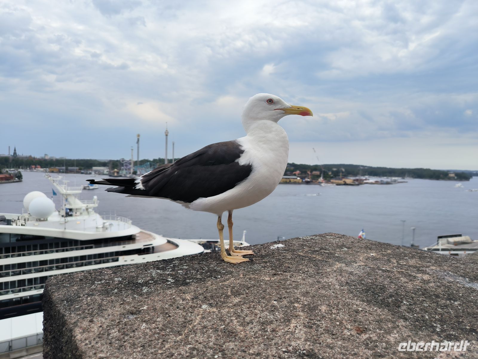 Wir setzen die Stadtrundfahrt fort mit einem herrlichen Ausblick über die Stadt an der Grenze zwischen dem süßen Mälarsee und der salzigen Ostsee. Modelmöwe Jonathan setzt sich wie immer immer gekonnt in Szene. Über die Inseln Södermalm und Djurgarden gelangen wir zur Altstadt. Gamla Stan ist auch hier nicht vergammelt. Wir schauen uns am Schloss den Einmarsch der Musikkapelle zur Wachablösung an. Dann zerstreut sich die Gruppe. Ein Spaziergang durch die Gassen der Altstadt mit anschließender Fika- Kaffeepause oder Museumsbesuche. Das Spektrum ist groß. ABBA, das Wrack der VASA oder auch das Nationalmuseum locken mit ihren Ausstellungen. In der Stadt findet ein großes Kulturfestival statt, alle sind auf den Beinen. Letztere tun uns dann ordentlich weh, als wir uns gegen Abend wiedertreffen. Ein schönes Ausflugsboot lädt zur abendlichen Schärenfahrt ein. Und zum Abschlussdinner mit viel Lachs. Im Sonnenuntergang zieht das Boot durch die Schären. Die eine oder andere Insel mit den typischen Schweden - Häuschen könnte uns schon gefallen. Wir drehen eine Runde um die Burg Vaxholm, die Seeräuberfestung, in der auch Pippis Vater, Kapitän Efraim Langstrumpf, gefangen gehalten wurde.