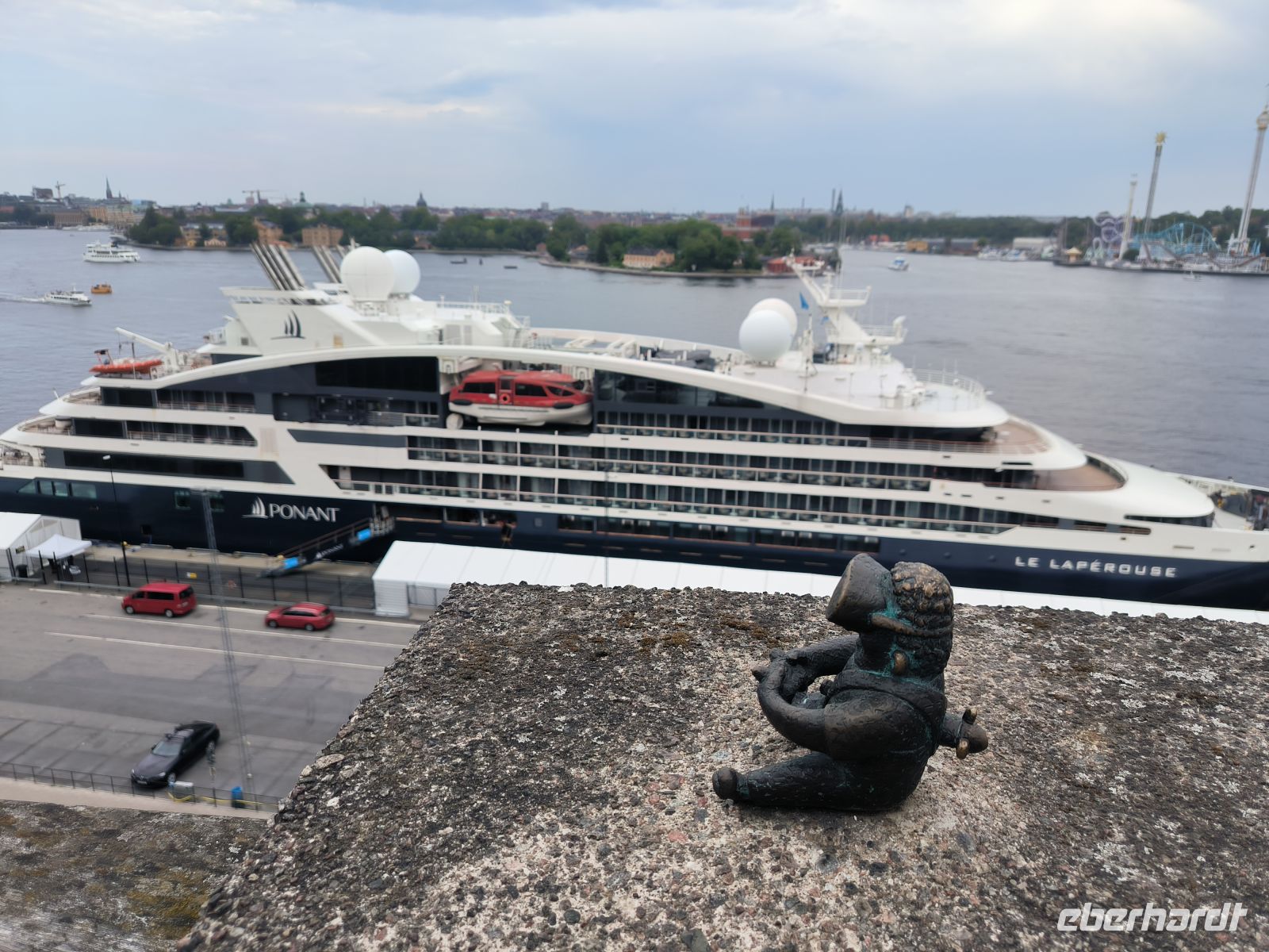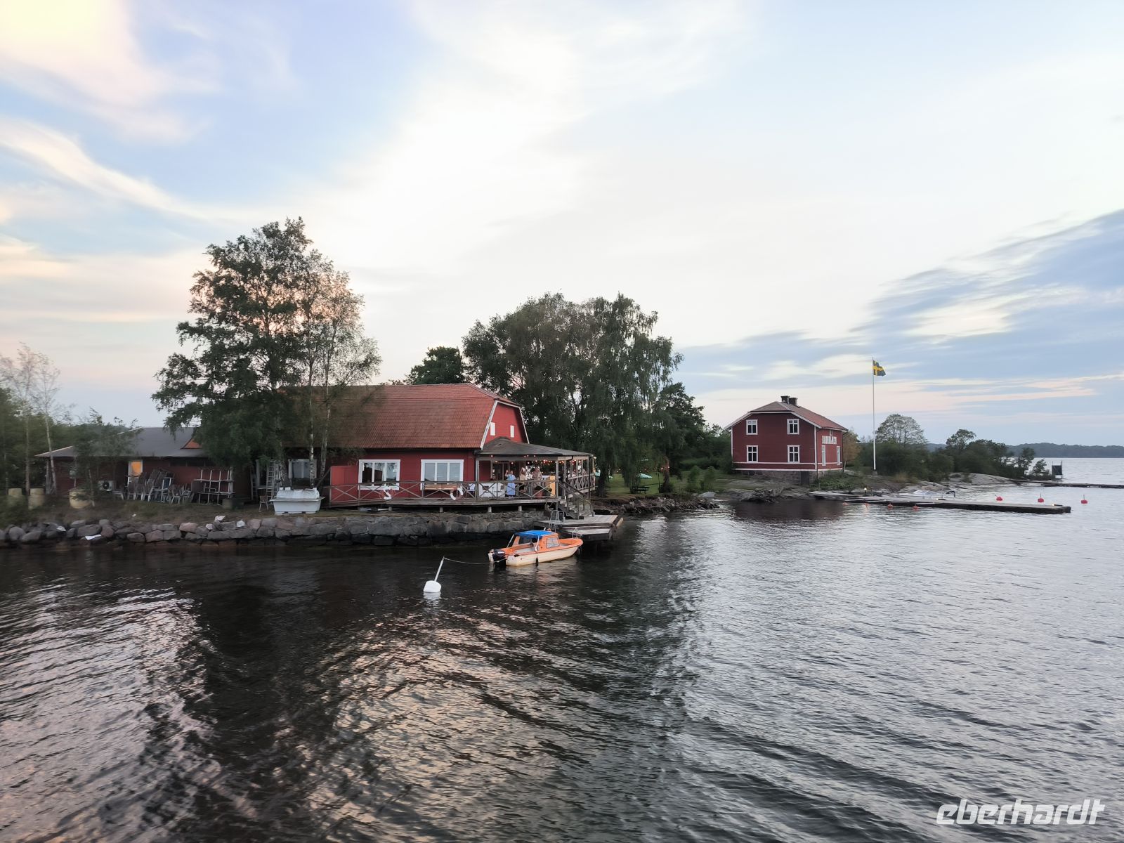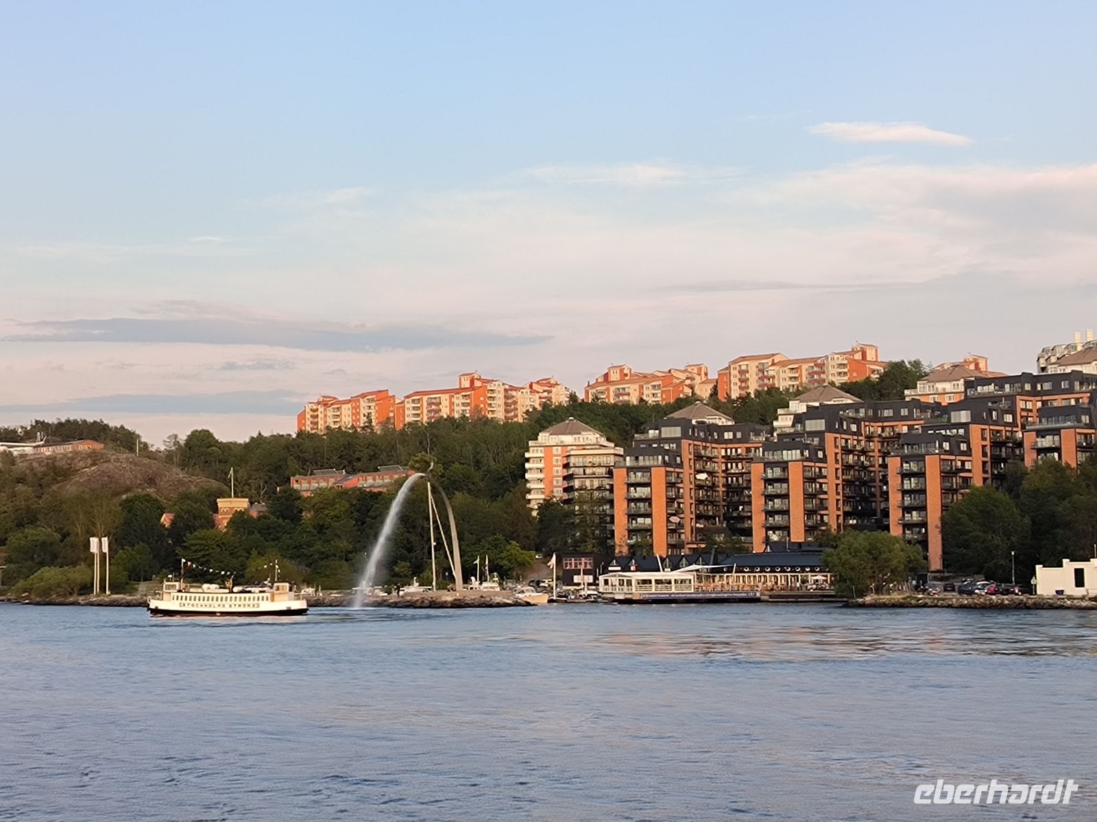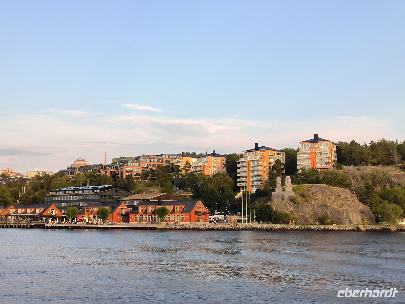 Wir setzen die Stadtrundfahrt fort mit einem herrlichen Ausblick über die Stadt an der Grenze zwischen dem süßen Mälarsee und der salzigen Ostsee. Modelmöwe Jonathan setzt sich wie immer immer gekonnt in Szene. Über die Inseln Södermalm und Djurgarden gelangen wir zur Altstadt. Gamla Stan ist auch hier nicht vergammelt. Wir schauen uns am Schloss den Einmarsch der Musikkapelle zur Wachablösung an. Dann zerstreut sich die Gruppe. Ein Spaziergang durch die Gassen der Altstadt mit anschließender Fika- Kaffeepause oder Museumsbesuche. Das Spektrum ist groß. ABBA, das Wrack der VASA oder auch das Nationalmuseum locken mit ihren Ausstellungen. In der Stadt findet ein großes Kulturfestival statt, alle sind auf den Beinen. Letztere tun uns dann ordentlich weh, als wir uns gegen Abend wiedertreffen. Ein schönes Ausflugsboot lädt zur abendlichen Schärenfahrt ein. Und zum Abschlussdinner mit viel Lachs. Im Sonnenuntergang zieht das Boot durch die Schären. Die eine oder andere Insel mit den typischen Schweden - Häuschen könnte uns schon gefallen. Wir drehen eine Runde um die Burg Vaxholm, die Seeräuberfestung, in der auch Pippis Vater, Kapitän Efraim Langstrumpf, gefangen gehalten wurde.