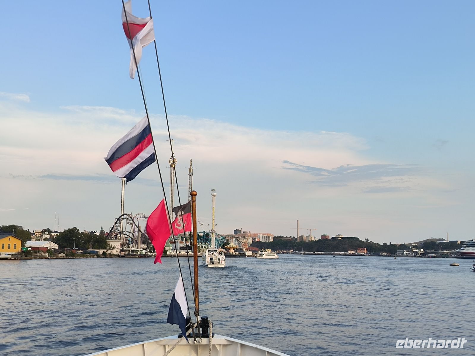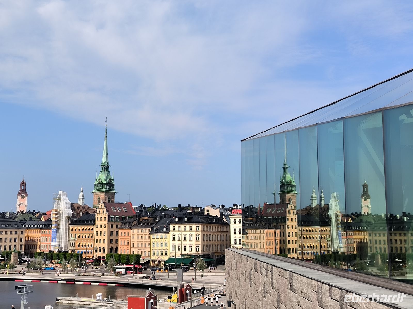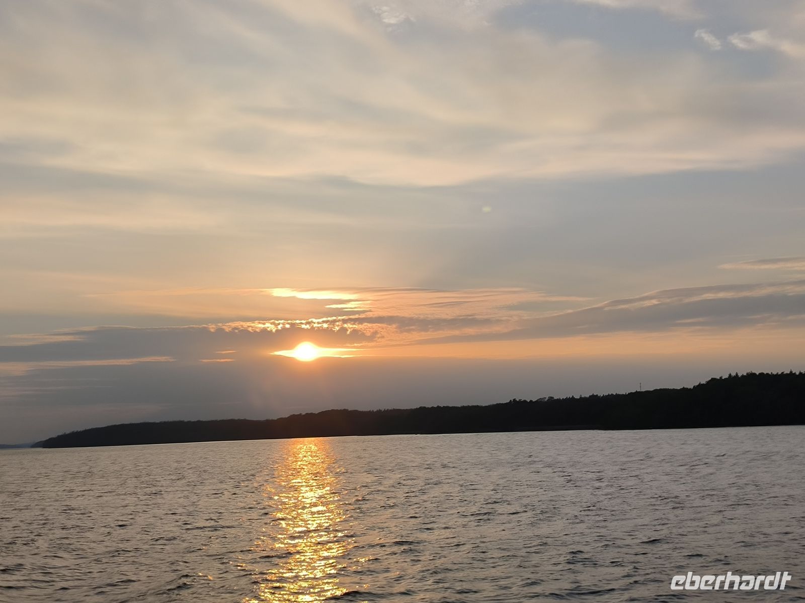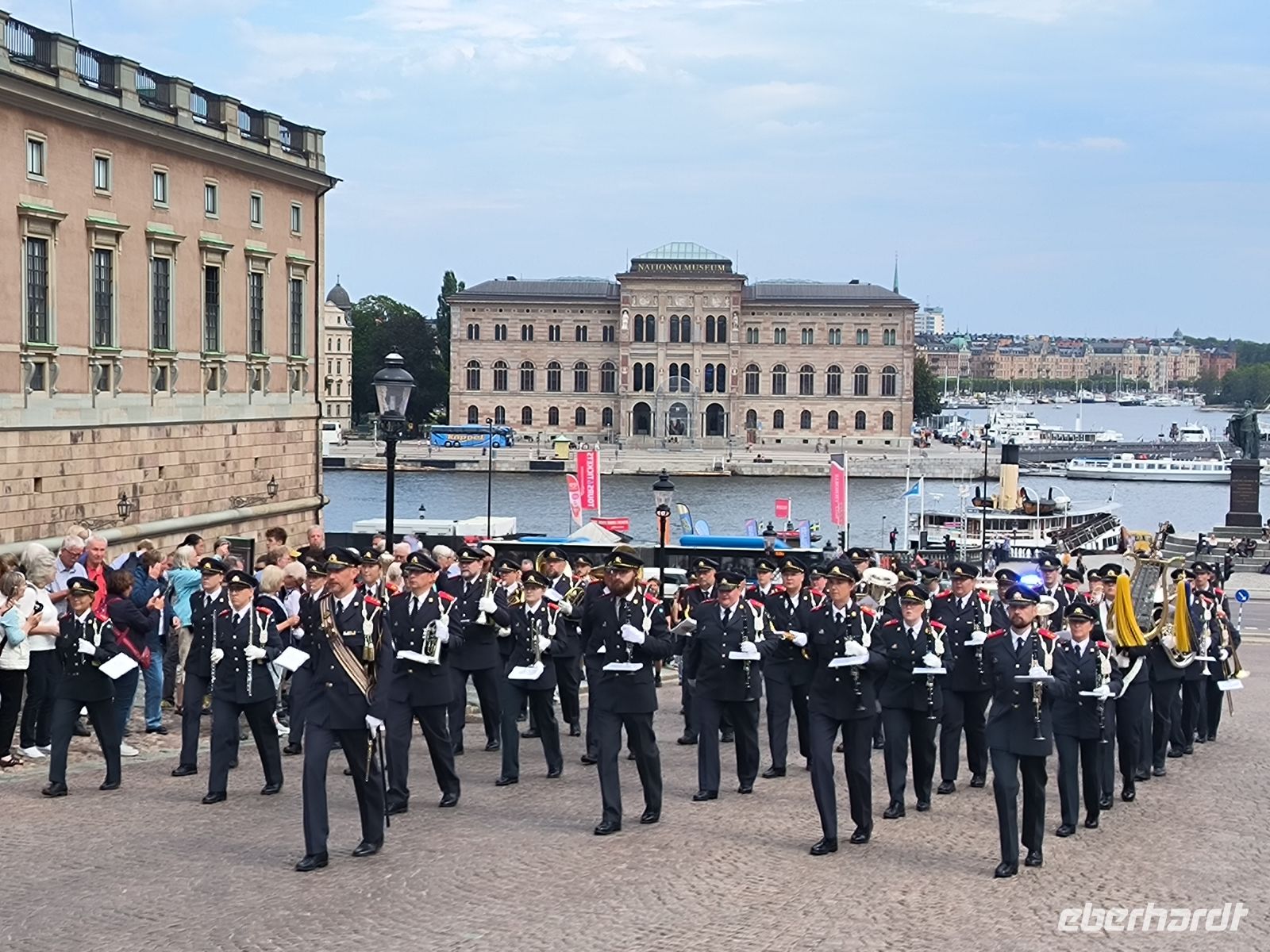 Wir setzen die Stadtrundfahrt fort mit einem herrlichen Ausblick über die Stadt an der Grenze zwischen dem süßen Mälarsee und der salzigen Ostsee. Modelmöwe Jonathan setzt sich wie immer immer gekonnt in Szene. Über die Inseln Södermalm und Djurgarden gelangen wir zur Altstadt. Gamla Stan ist auch hier nicht vergammelt. Wir schauen uns am Schloss den Einmarsch der Musikkapelle zur Wachablösung an. Dann zerstreut sich die Gruppe. Ein Spaziergang durch die Gassen der Altstadt mit anschließender Fika- Kaffeepause oder Museumsbesuche. Das Spektrum ist groß. ABBA, das Wrack der VASA oder auch das Nationalmuseum locken mit ihren Ausstellungen. In der Stadt findet ein großes Kulturfestival statt, alle sind auf den Beinen. Letztere tun uns dann ordentlich weh, als wir uns gegen Abend wiedertreffen. Ein schönes Ausflugsboot lädt zur abendlichen Schärenfahrt ein. Und zum Abschlussdinner mit viel Lachs. Im Sonnenuntergang zieht das Boot durch die Schären. Die eine oder andere Insel mit den typischen Schweden - Häuschen könnte uns schon gefallen. Wir drehen eine Runde um die Burg Vaxholm, die Seeräuberfestung, in der auch Pippis Vater, Kapitän Efraim Langstrumpf, gefangen gehalten wurde.