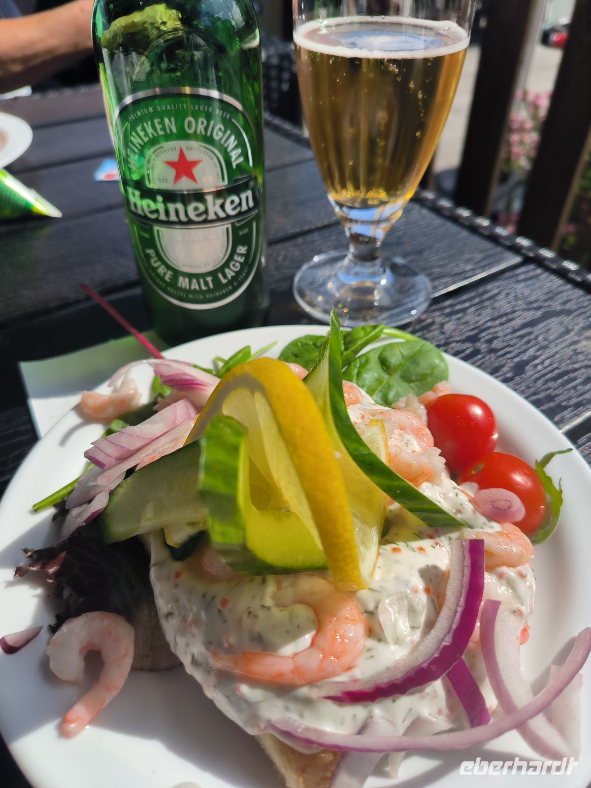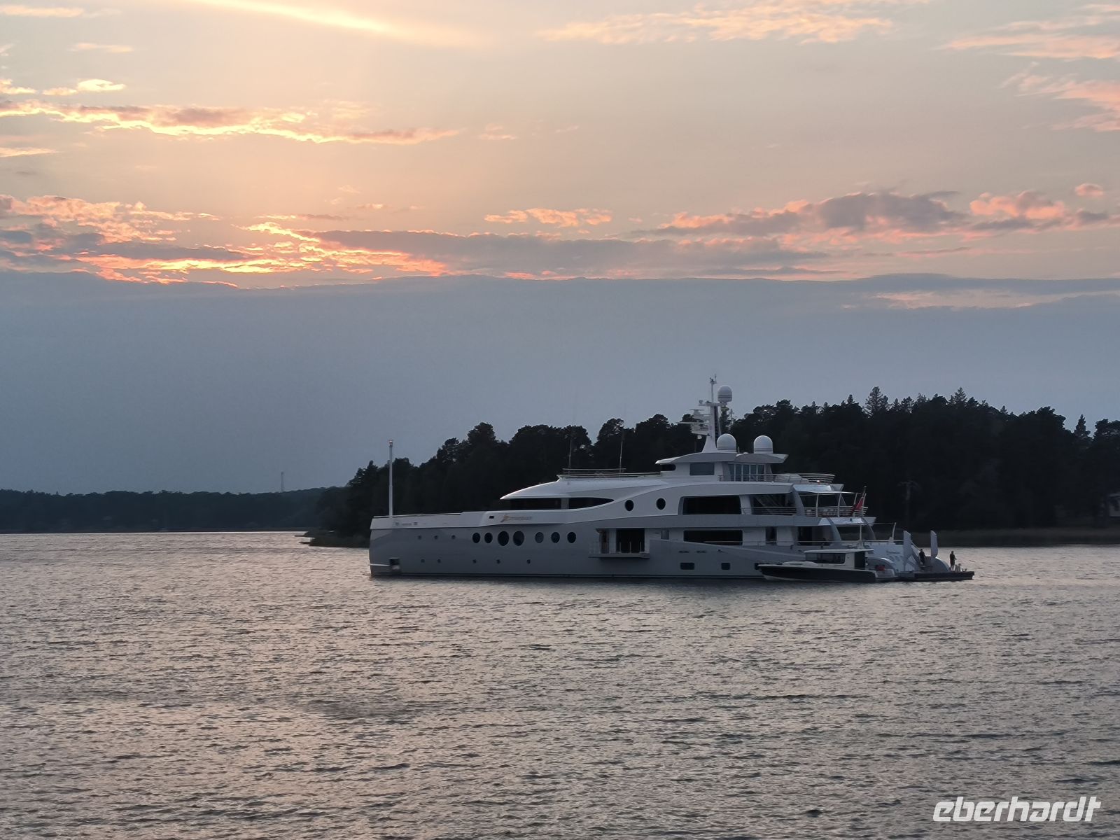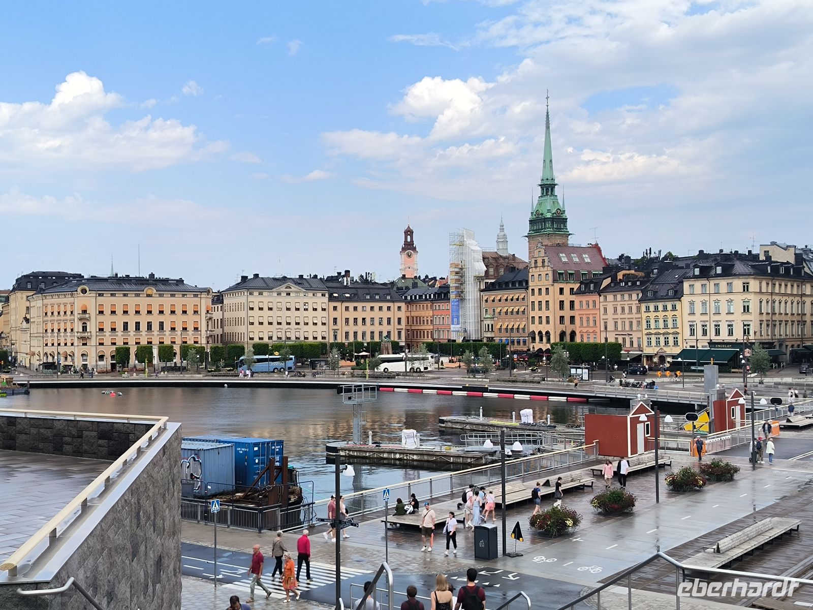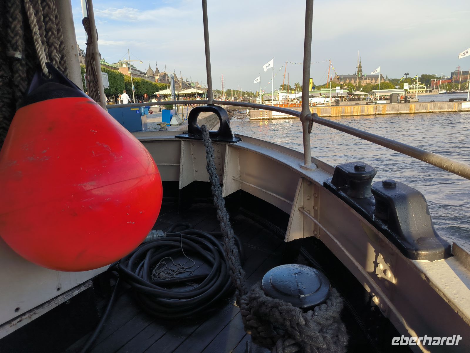 Wir setzen die Stadtrundfahrt fort mit einem herrlichen Ausblick über die Stadt an der Grenze zwischen dem süßen Mälarsee und der salzigen Ostsee. Modelmöwe Jonathan setzt sich wie immer immer gekonnt in Szene. Über die Inseln Södermalm und Djurgarden gelangen wir zur Altstadt. Gamla Stan ist auch hier nicht vergammelt. Wir schauen uns am Schloss den Einmarsch der Musikkapelle zur Wachablösung an. Dann zerstreut sich die Gruppe. Ein Spaziergang durch die Gassen der Altstadt mit anschließender Fika- Kaffeepause oder Museumsbesuche. Das Spektrum ist groß. ABBA, das Wrack der VASA oder auch das Nationalmuseum locken mit ihren Ausstellungen. In der Stadt findet ein großes Kulturfestival statt, alle sind auf den Beinen. Letztere tun uns dann ordentlich weh, als wir uns gegen Abend wiedertreffen. Ein schönes Ausflugsboot lädt zur abendlichen Schärenfahrt ein. Und zum Abschlussdinner mit viel Lachs. Im Sonnenuntergang zieht das Boot durch die Schären. Die eine oder andere Insel mit den typischen Schweden - Häuschen könnte uns schon gefallen. Wir drehen eine Runde um die Burg Vaxholm, die Seeräuberfestung, in der auch Pippis Vater, Kapitän Efraim Langstrumpf, gefangen gehalten wurde.
