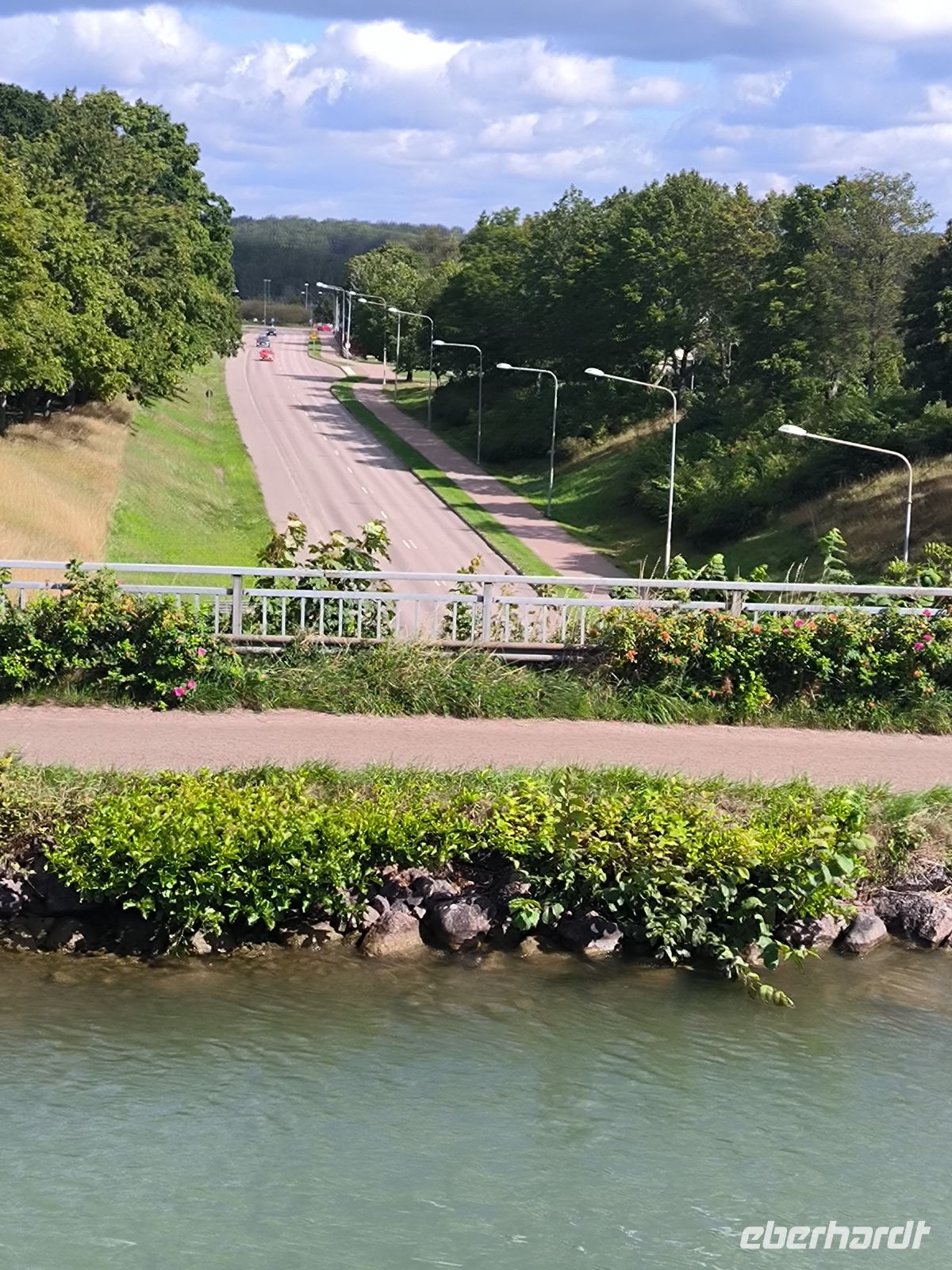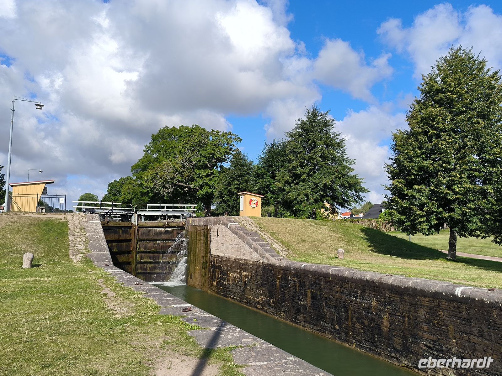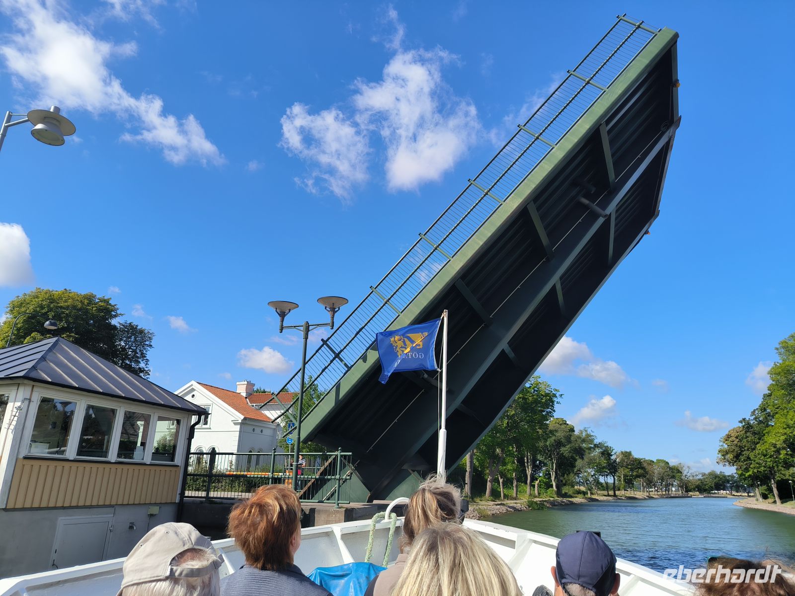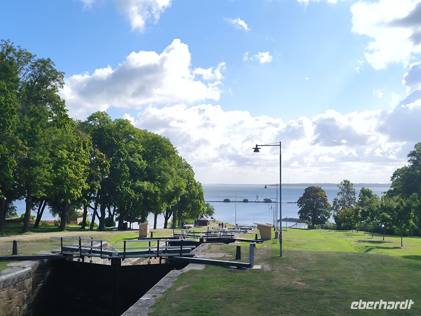 Niemand möchte diesen Ausflug verpassen. Wiederum bei blauem Himmel und weißen Dekowölkchen schauen wir uns an der fünfstufigen Schleuse von Borenshult bei Motala am Göta Kanal den Vorgang noch einmal von außen an.