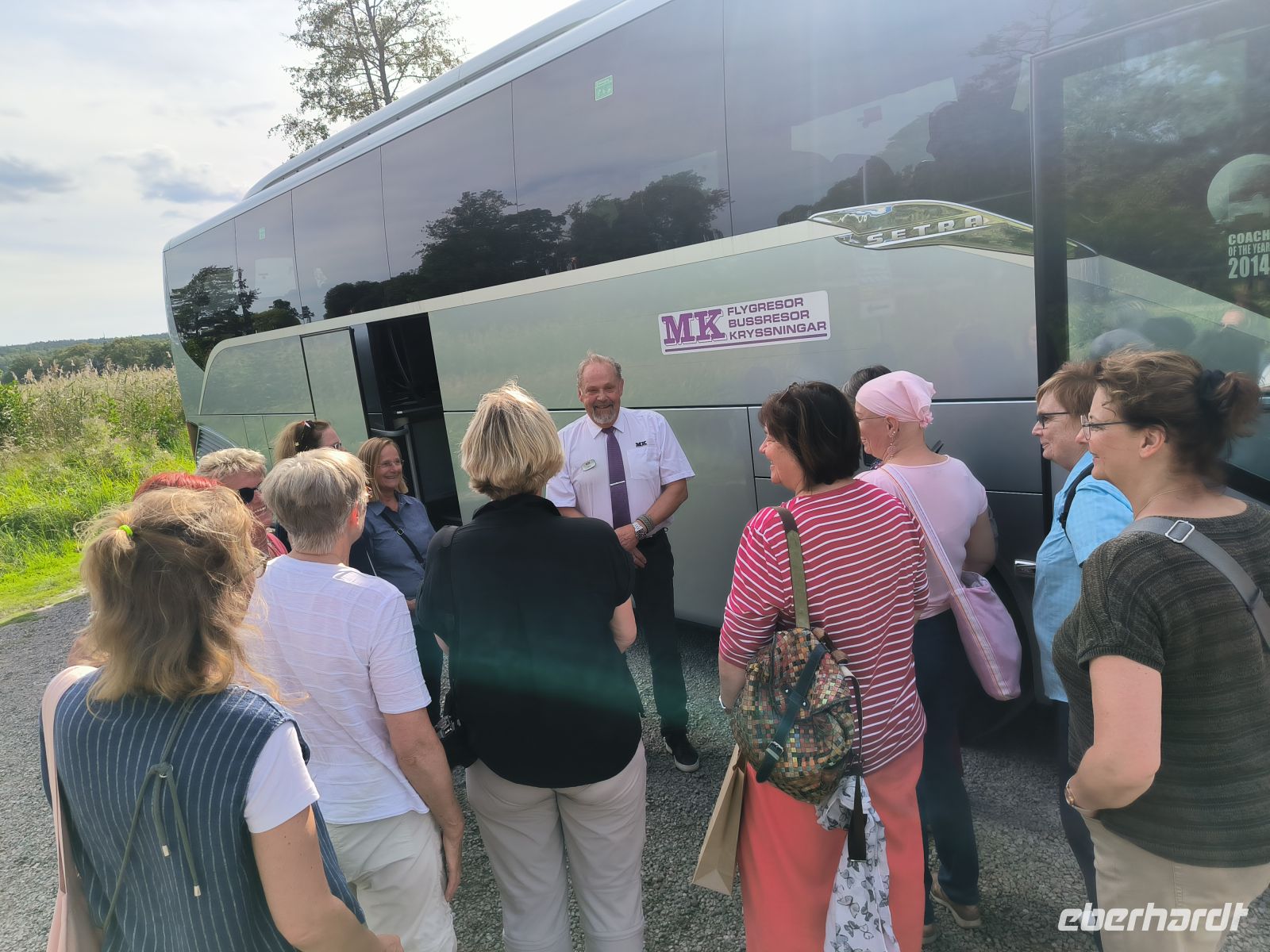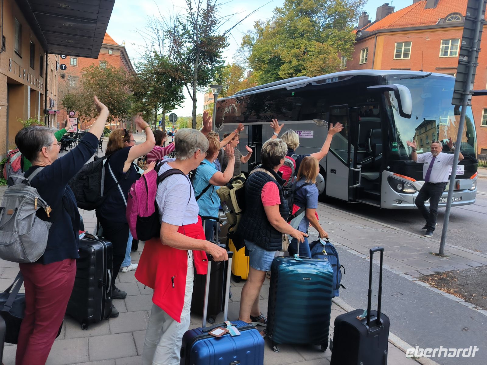 Mit Blick auf den Mälarsee genießen wir Kaffee oder Eis. Vor der Weiterfahrt nutzen wir die Gelegenheit, uns bei Busfahrer Göran zu verabschieden. Er hat uns freundlich, sicher und entspannt durch sein Heimatland Schweden gefahren.