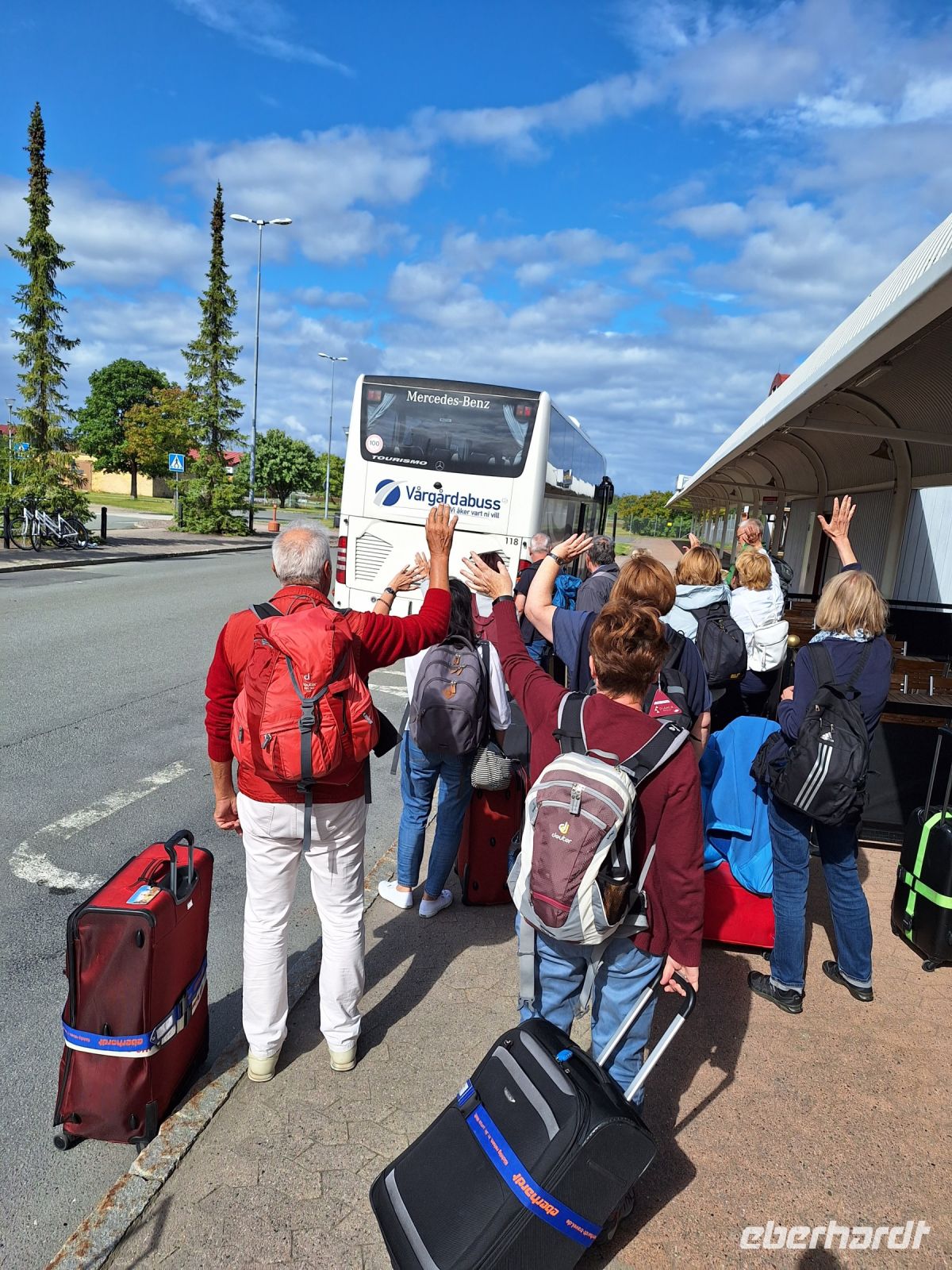Die Koffer sind gepackt, das letzte Frühstück im Hotel war wieder köstlich und – große Freude – der Bus springt sofort an. Wir fahren in südliche Richtung, können noch einmal das Panorama am Vätternsee bewundern und sind pünktlich am Flugplatz in Jönköping. Herzlich verabschieden wir unseren freundlichen Busfahrer Kurt, der uns sicher durch das Land gefahren hat.