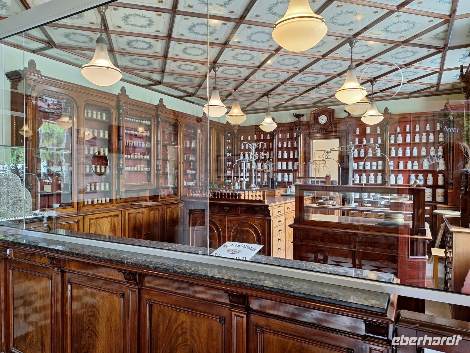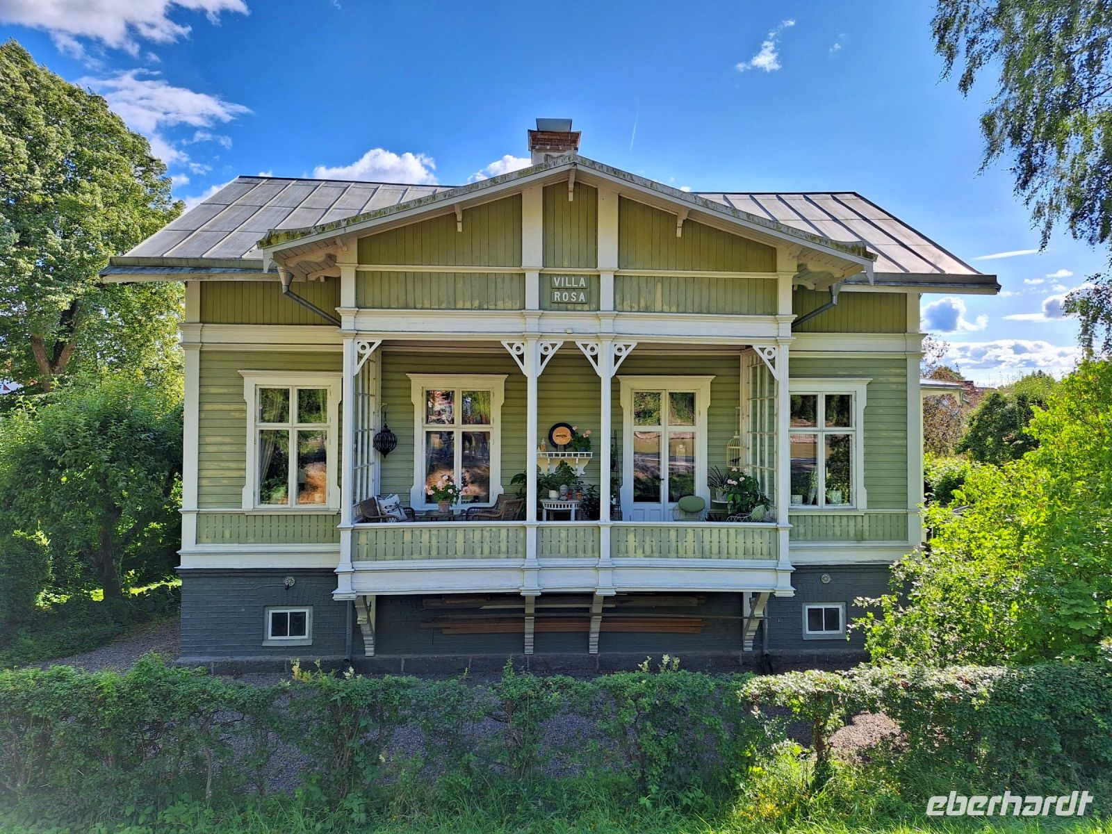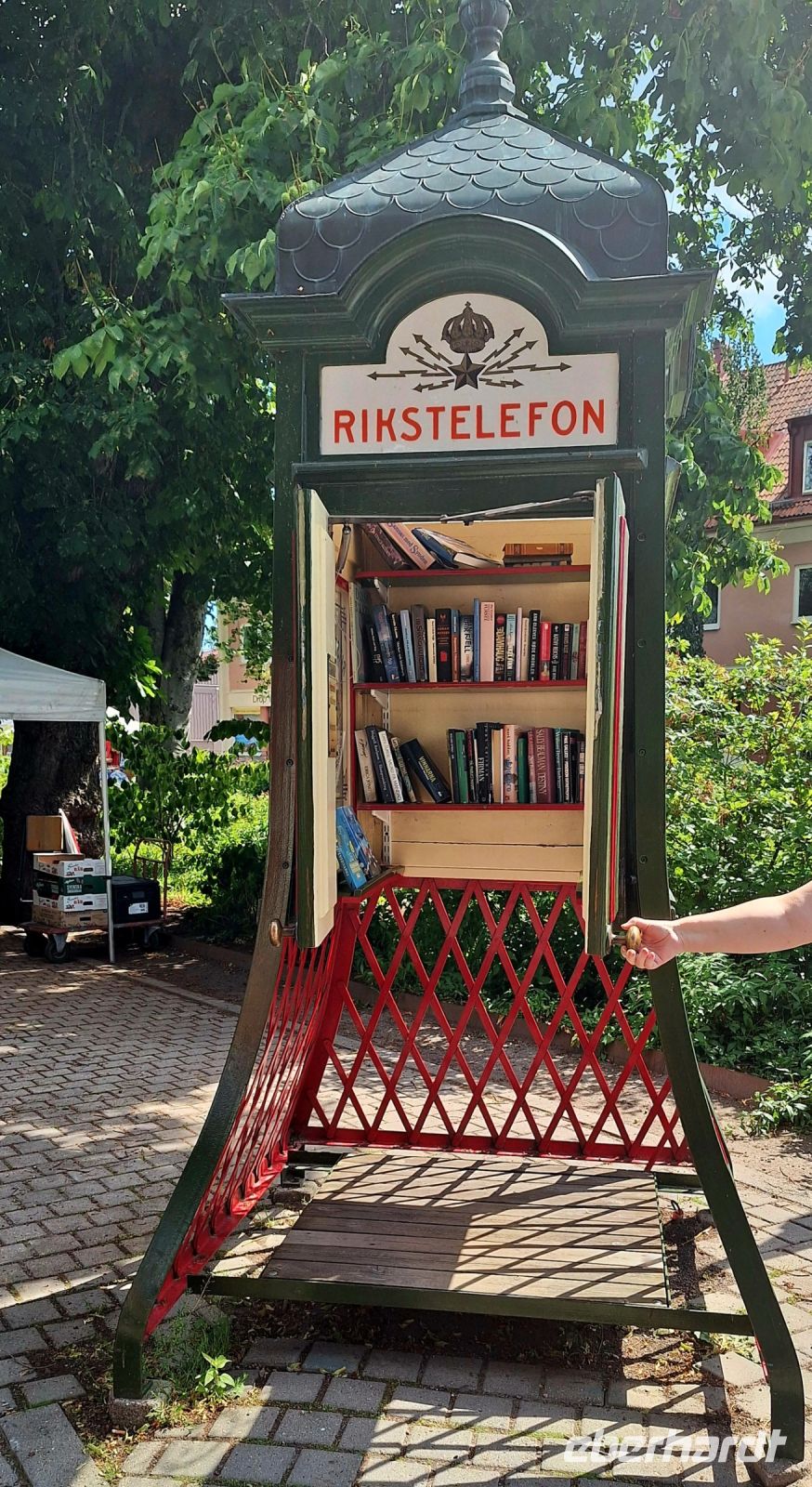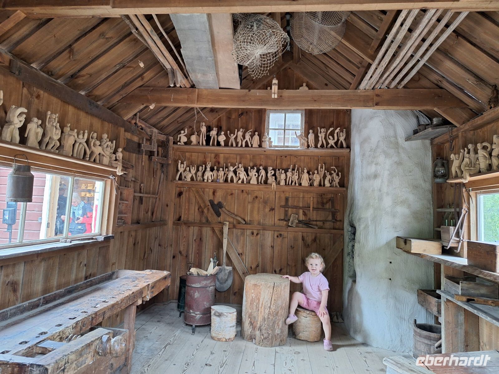 Hier wurden bis zu 250 Jahre alte Holzhäuser zu einer fiktiven und doch sehr realen Siedlung aufgestellt. Am Marktplatz finden sich kleine Geschäfte, Bankkontor und Restaurants. Neben den Straßen mit holprigen Pflastersteinen schauen wir über die roten Gartenzäune in blühende Gärten auf wunderschöne, heute teilweise noch bewohnte Häuser. Darin verbergen sich historische Handwerksstätten, eine Arbeiterwohnung aus den 1920er Jahren, die Mädchenschule und eine Apotheke. Es ist eine kleine Zeitreise in Schwedens Vergangenheit. Als ein paar Regentropfen fallen, genießen wir noch einen Kaffee im Café Dahlberg und dann erreicht uns die Nachricht, daß der Bus repariert werden konnte.