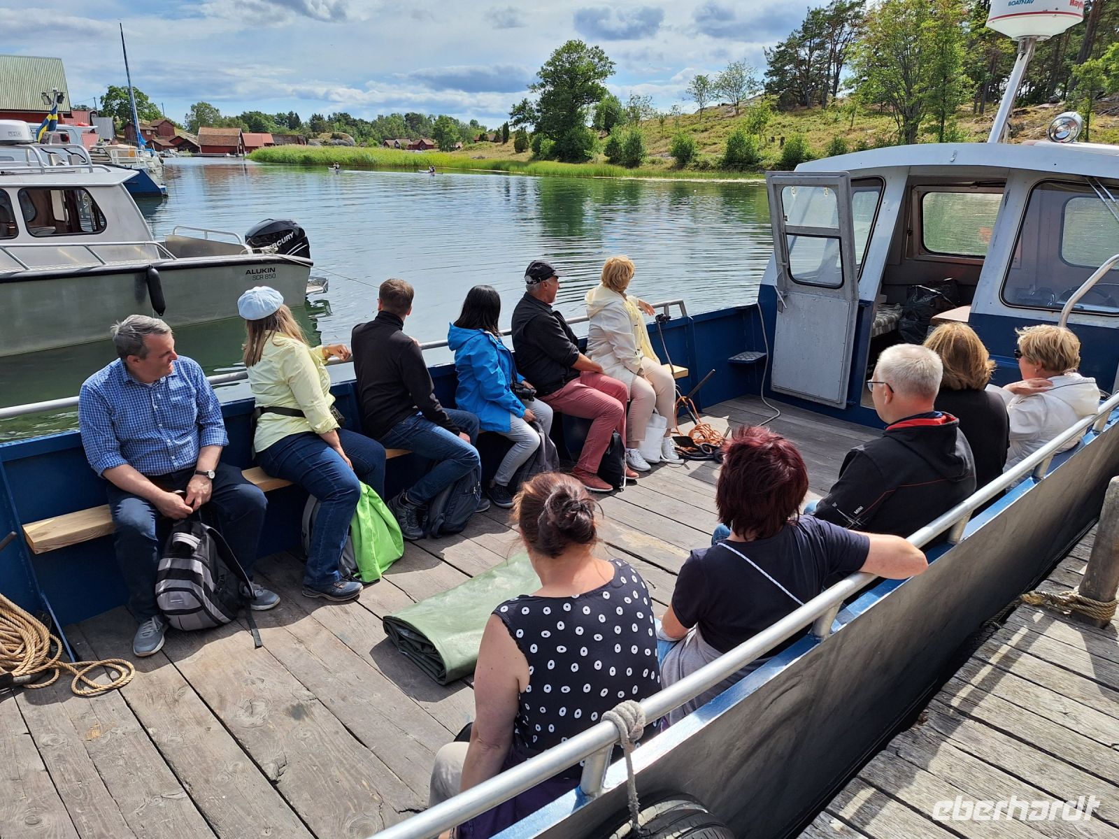Versprochen ist eine Fahrt ins Paradies und dort werden wir auch ankommen, doch abenteuerlustig wie wir sind, etwas anders als gedacht. Über Söderköping fahren wir nach Tyrislöt, wo sich der kleine Hafen befindet. Busfahrer Kurt und Gästeführerin Stefanie sind auch wieder dabei. Ein kleines Schnäpschen soll ja gegen Seekrankheit helfen – und Reiseleiterinnen beruhigen ;-) Denn als wir auf dem hübschen Ausflugsschiff Platz genommen haben, erfahren wir, dass dieses überfüllt sei und werden gebeten, wieder von Bord zu gehen.