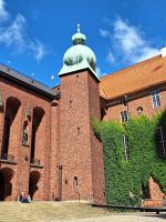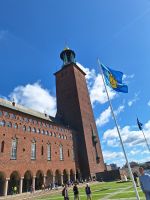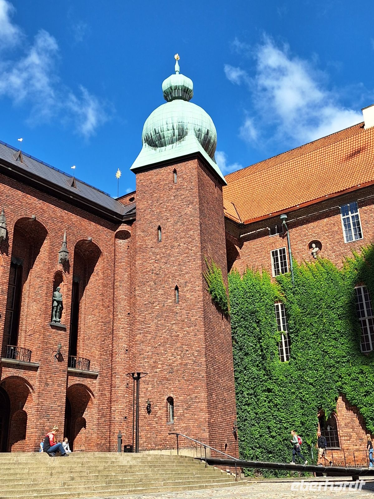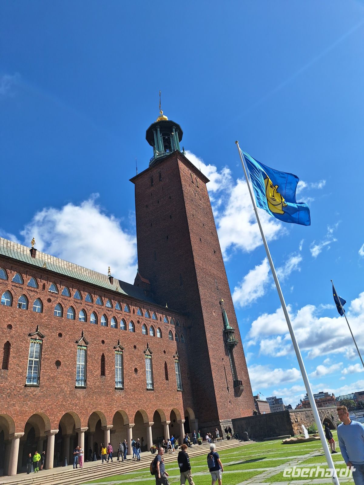 Wir beginnen unseren Rundgang am Stadshus / Rathaus am Mälarsee, wo Stadtregierung und Stadtparlament sitzen. Dort findet auch alljährlich das festliche Bankett zu Ehren der frisch gekürten Nobelpreis-Träger statt. Der markante eckige Turm mit den drei goldenen Kronen ist weithin sichtbar.