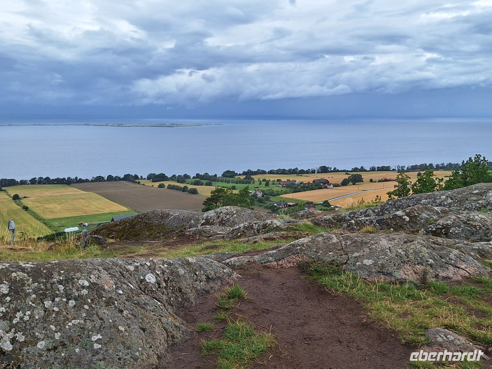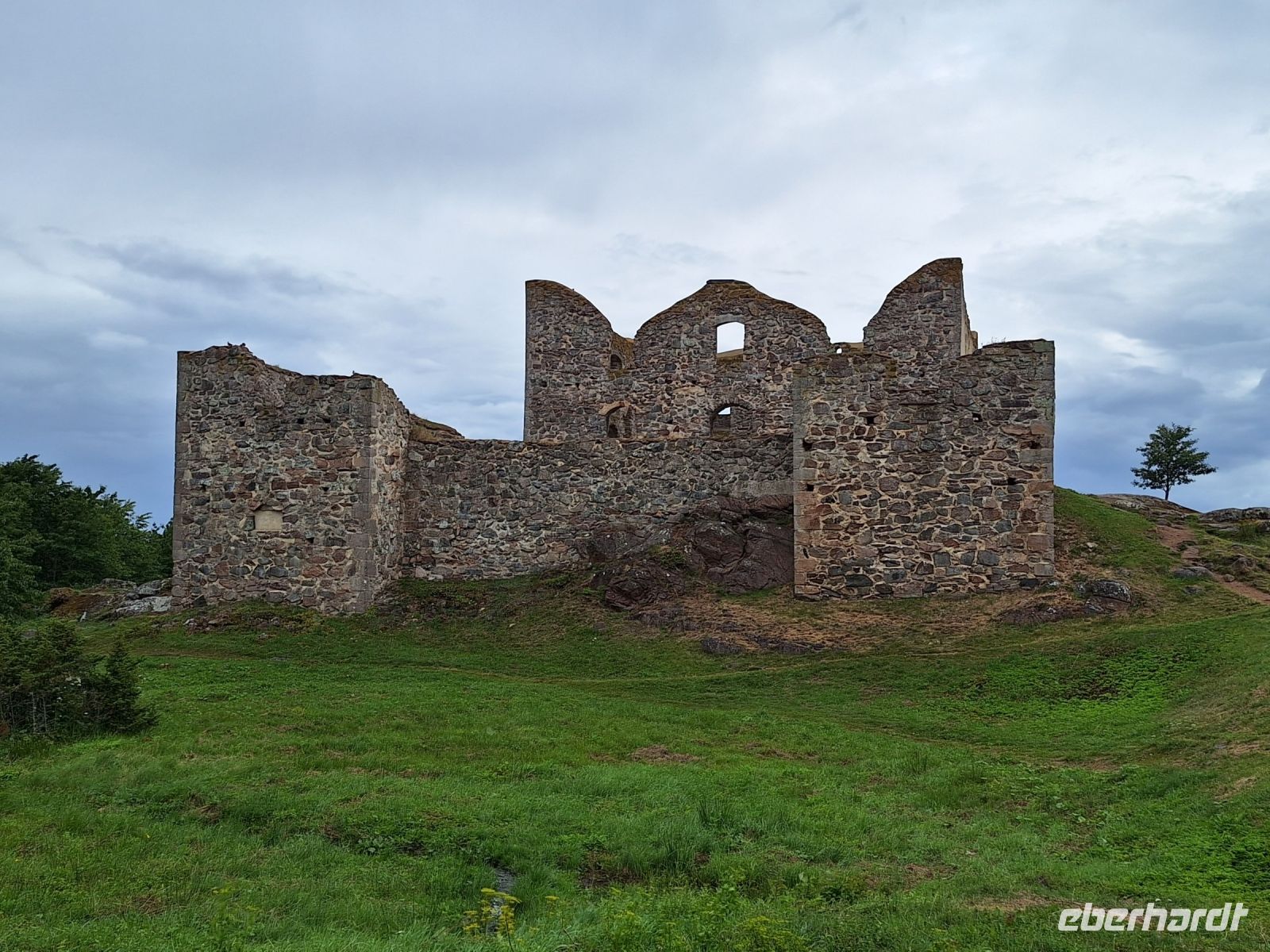 Mit dem Übeltäter Startkabel als Trophäe in der Hand holt Busfahrer Kurt uns ab und wir fahren Richtung Süden. An der Brahehus Ruine können wir - noch im Regen – einen Blick auf den zweitgrößten See Schwedens, den Vättern, werfen.