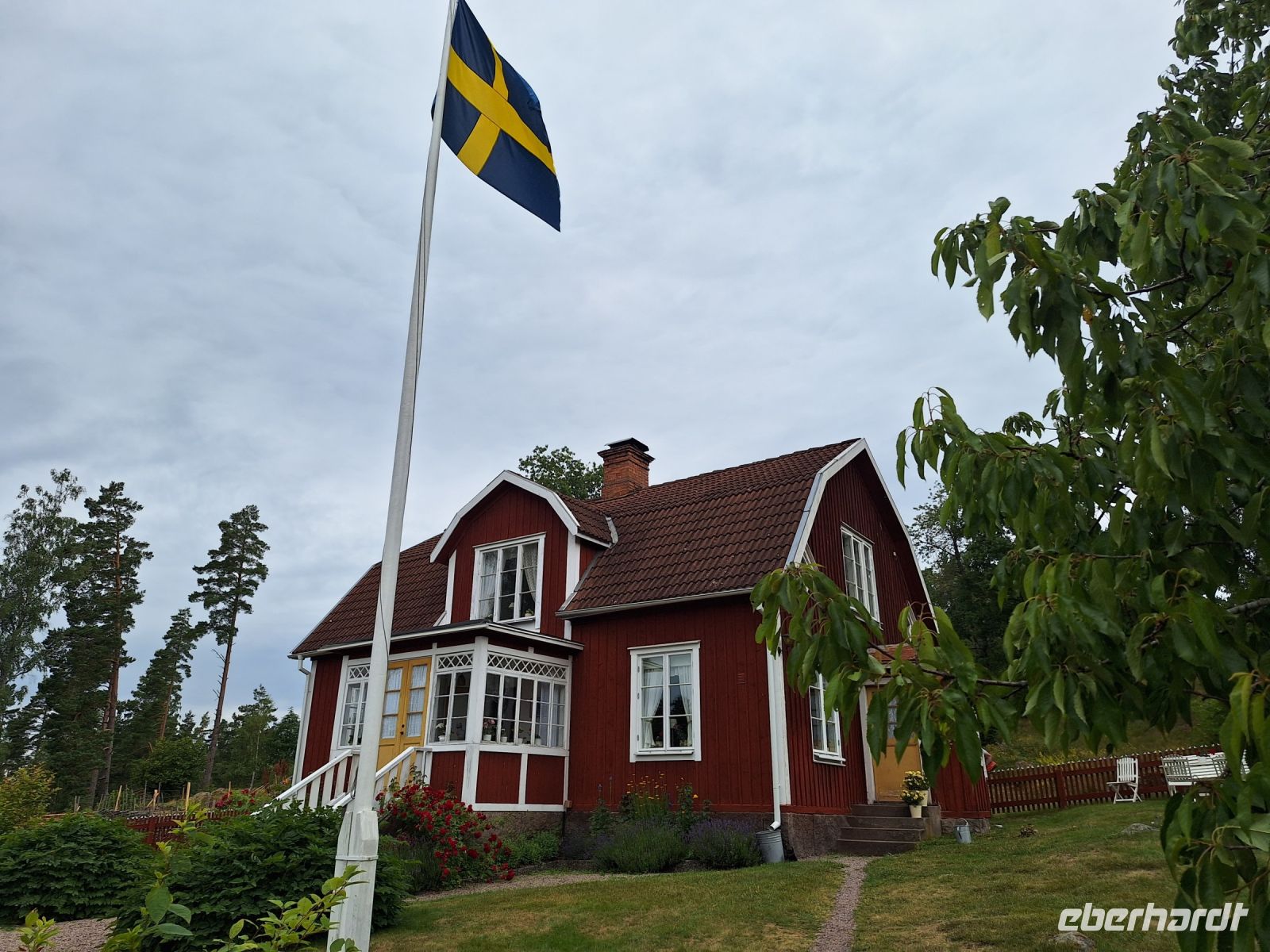 Durch herrliche schwedische Landschaften, viel Grün, natürlich dekoriert mit den typischen roten Häuschen, fahren wir nach Katthult. Auf diesem Bauernhof trieb einst Michel aus Lönneberga sein Unwesen. Jedenfalls im Film. Übrigens wurde aus dem schwedischen Original Emil in Deutschland der Michel, weil Emil als Kinderbuchstar ja schon durch Erich Kästners Emil und die Detektive belegt war. Astrid Lindgren war mit dieser Namensänderung einverstanden und wir können uns ja eigentlich gar nichts anderes vorstellen.