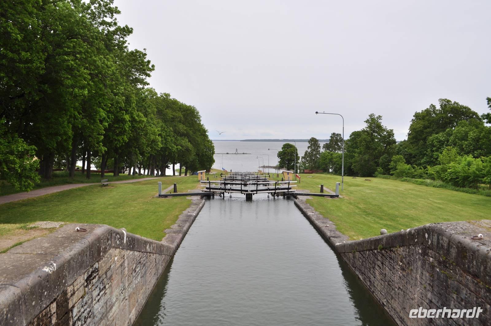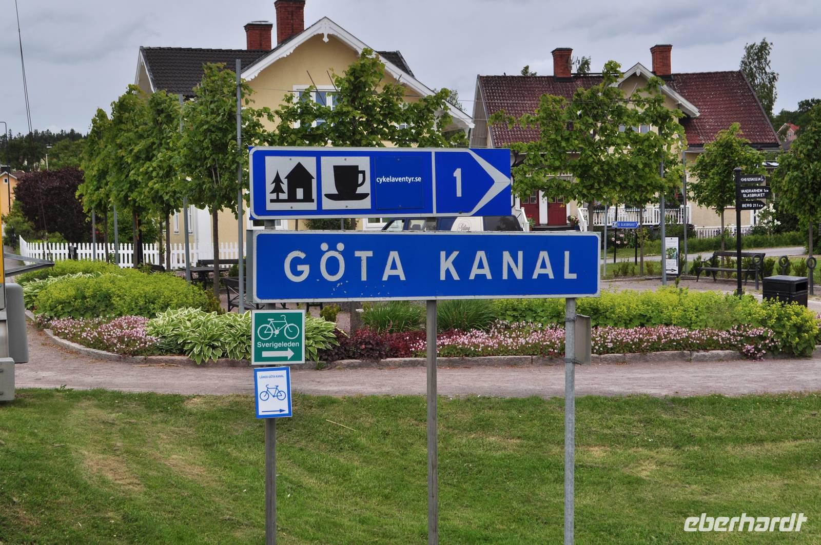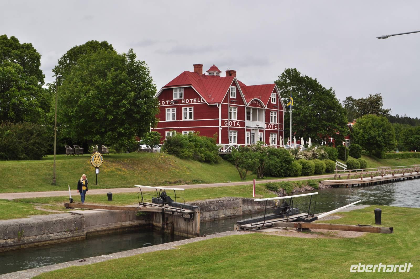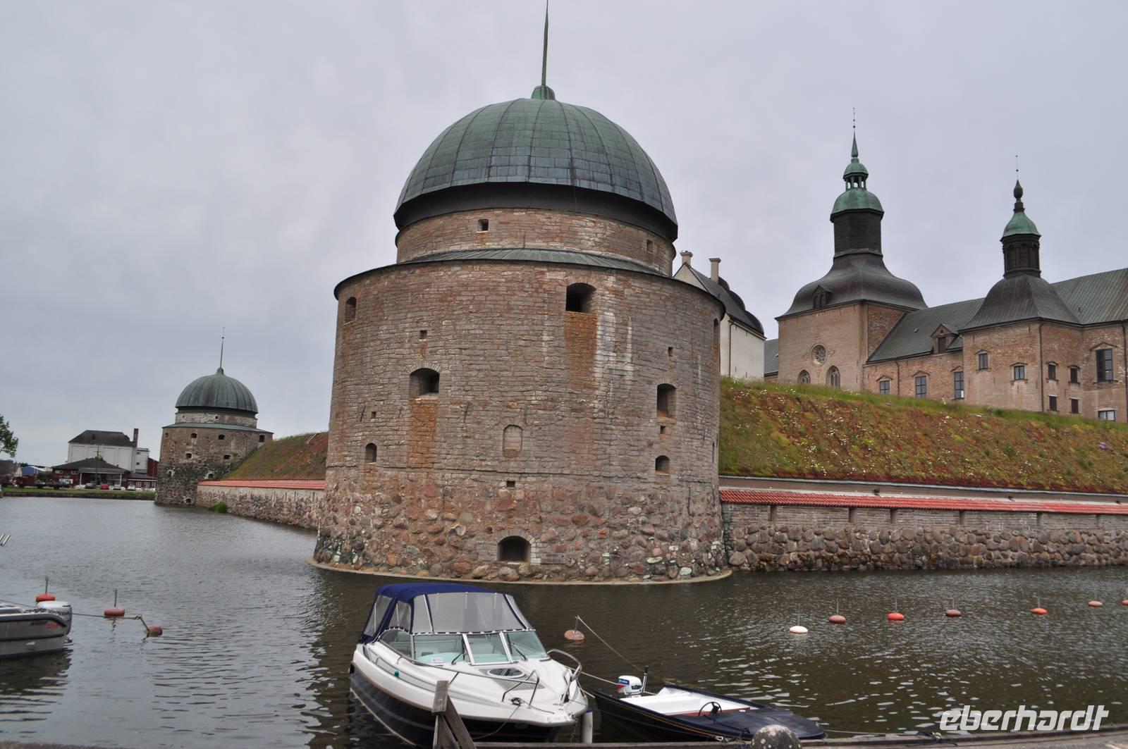 3 m groß. Darüber hinaus gibt es weitere prähistorische Spuren z. B. Hügelgräber. Unsere Strecke führt weiter zum mächtigen Vadstena Slott, ein Vasa Schloss. Nun sind es nur noch wenige Kilometer bis nach Motala, dem Startort unserer Radetappe und Zentrum des Göta Kanals, dem Blauen Band Schwedens. Interessiert beobachten wir das Schleusen einer Jacht an der Schleuse Borenshult mit ihren fünf Schleusenkammern. Von hier starten wir zu unserer Radtour. Über Borensberg geht es zur 7-Kammer-Schleuse von Berg. Nach einer Kaffeepause hinüber zum Kloster Vreta, dem ältesten in Schweden. Trotz einsetzendem Regen entscheidet sich ein hartnäckiger Kern weiter mit mir bis nach Linköping zu radeln. In Gamla Linköping beenden wir die heutige Radetappe. Dieses Freilichtmuseum ist in jedem Fall eine eigene Reise wert, heute allerdings geschlossen.