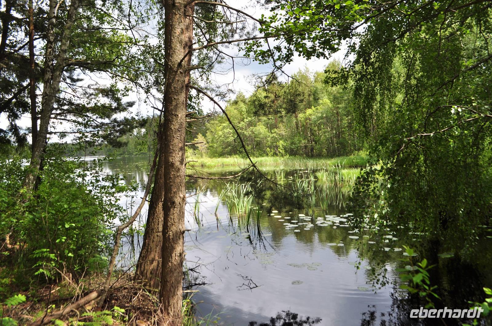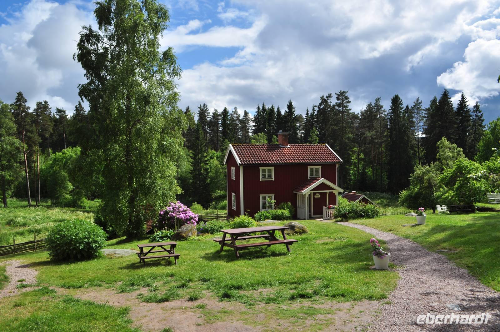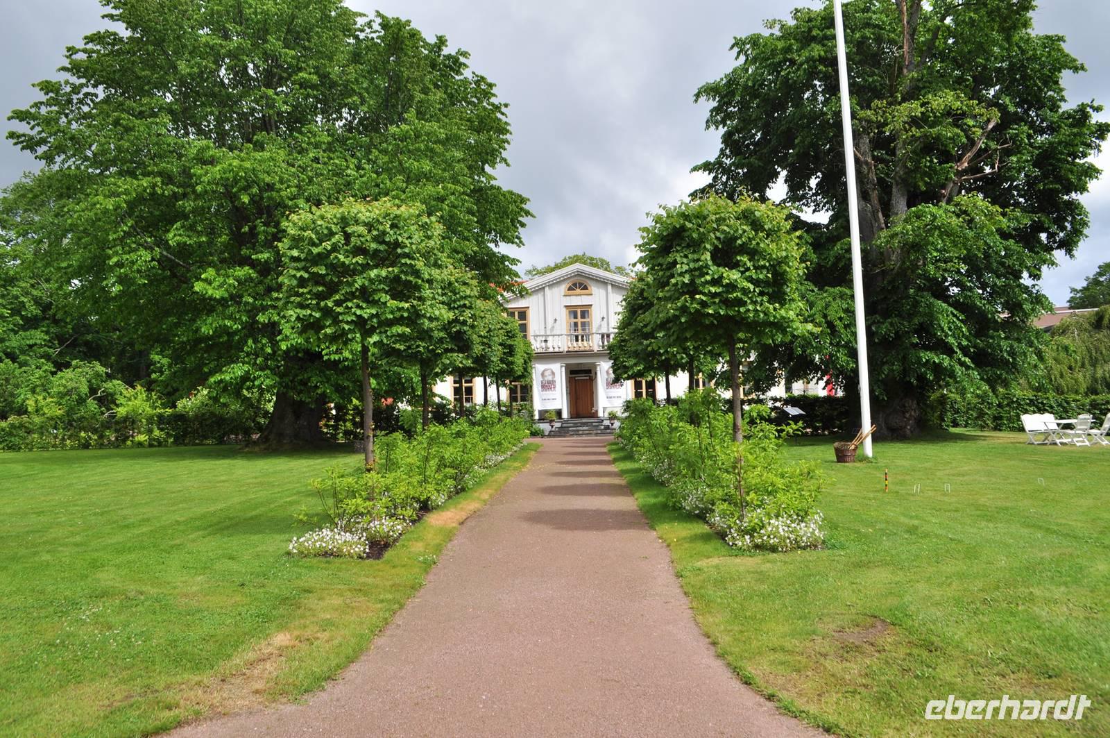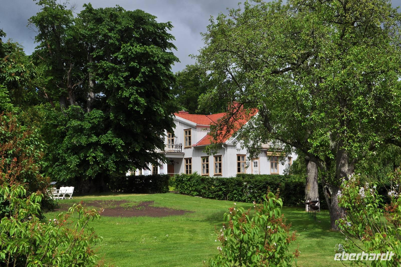 Am Schloss startet auch unsere Radtour. Zunächst geht es entlang der Uferstraße des Mälaren in Richtung Friedhof. Hier liegt Kurt Tucholsky begraben. Anschließend geht es weiter in Richtung Stallarholmen. Die Landschaft ist leicht hügelig und wechselt zwischen dichten Waldflächen, Weiden und Ackerflächen. Dazwischen stehen kleine schwedische Höfe, hier mal ein kleines Sägewerk, dort ein anderer kleiner Betrieb. Unsere Etappe endet in Stallarholmen am Mälaren.