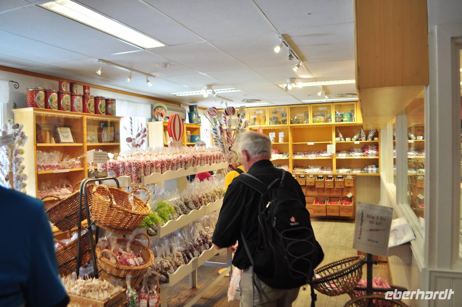 Unser erster Fotostopp liegt oberhalb von Göteborg in einem Park. Von dort hat man einen sehr guten Blick über die Stadt. Von Göteborg geht es nach Osten nach Jönköping und zum Vätternsee, dem zweitgrößten See in Schweden. In Gränna besuchen wir eine Polkagrisarfabrik, gris=Schwein. Eigentlich handelt es sich um Zuckerstangen, traditionell in rot-weiß und mit Pfefferminzgeschmack. Wir besuchen eine traditionelle Manufaktur, hier wird noch von Hand gearbeitet. Anschließend geht es mit dem Rad und der Fähre hinüber zur Insel Visingsö. In einer Eingewöhnungsrunde lernen wir uns kennen. Es rollt hervorragend.