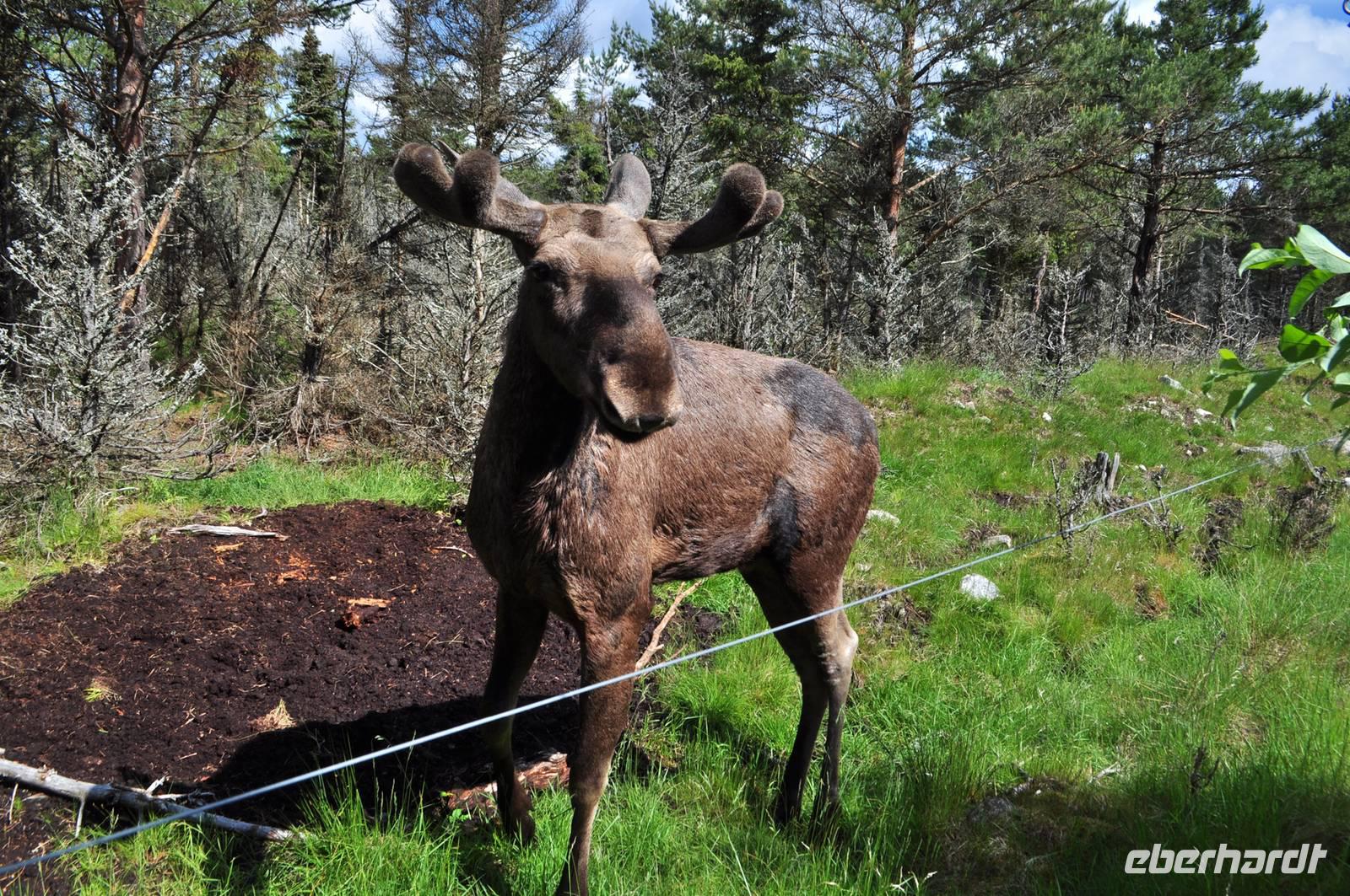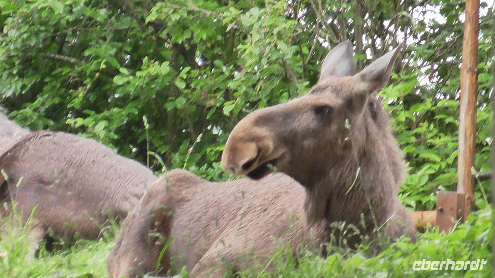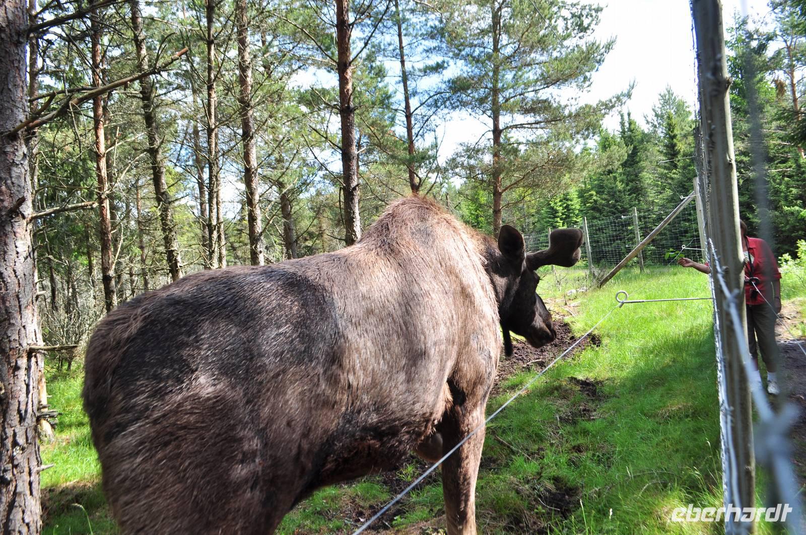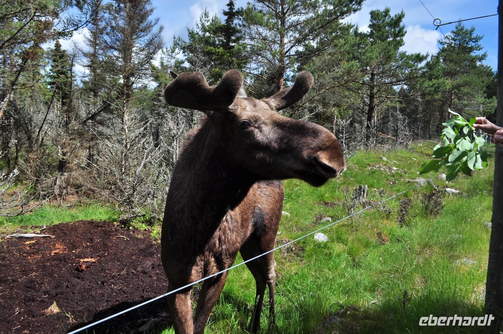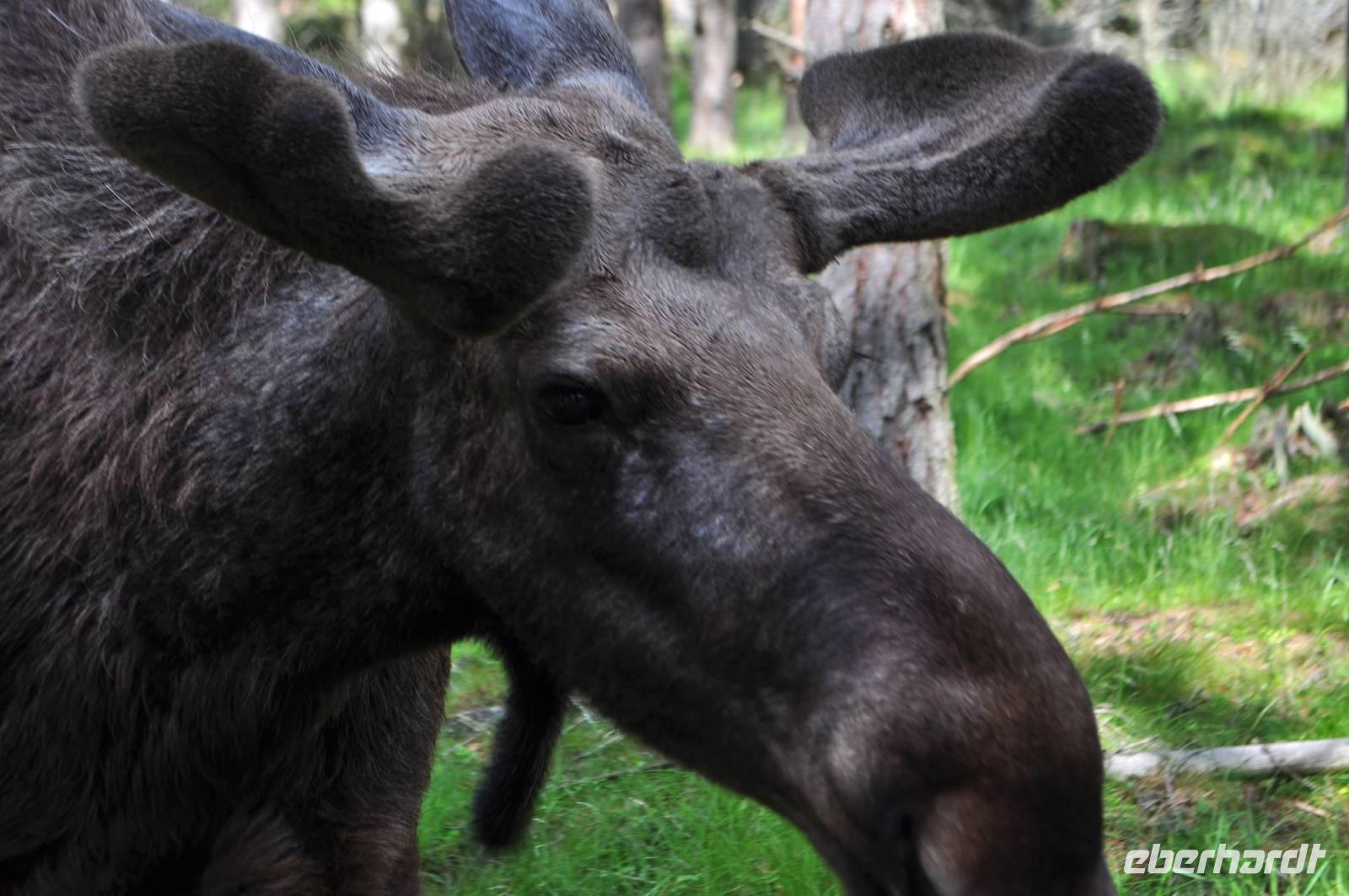 Heute geht es in den südlichen Teil des Smålandes. Im Grönåsens Älgpark (Elchpark) bei Kosta lernen wir die großen Tiere endlich aus der Nähe kennen. Einer der Elche heißt Arne. Etwas merkwürdig, dass wir kurze Zeit später einen Verwandten von ihm als Elch-Bratwurst auf dem Grill haben.