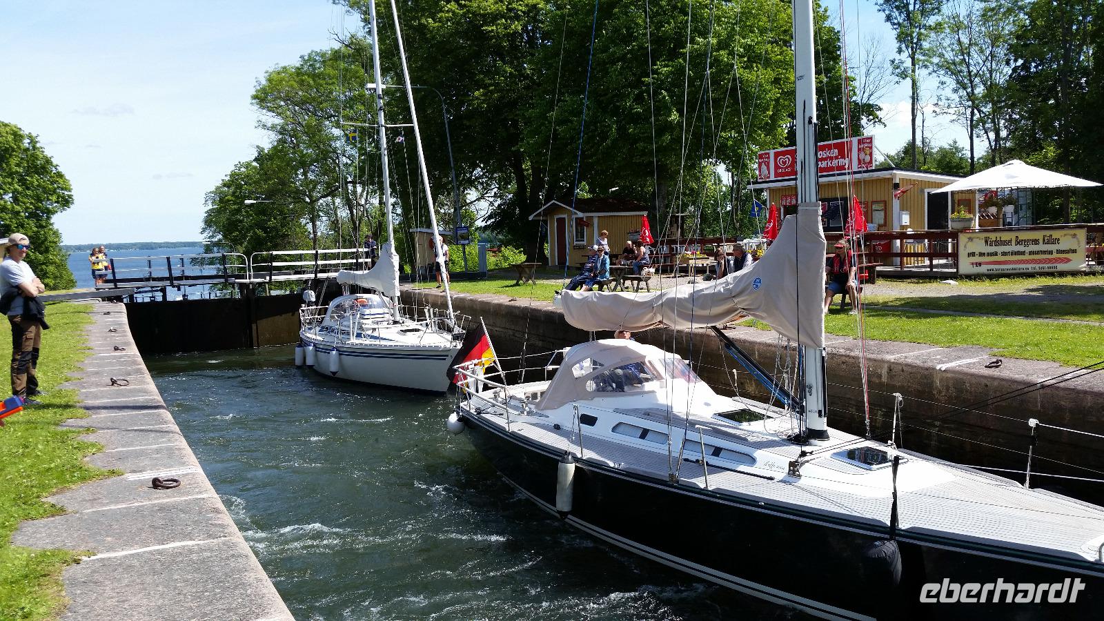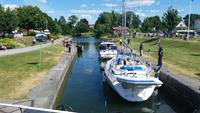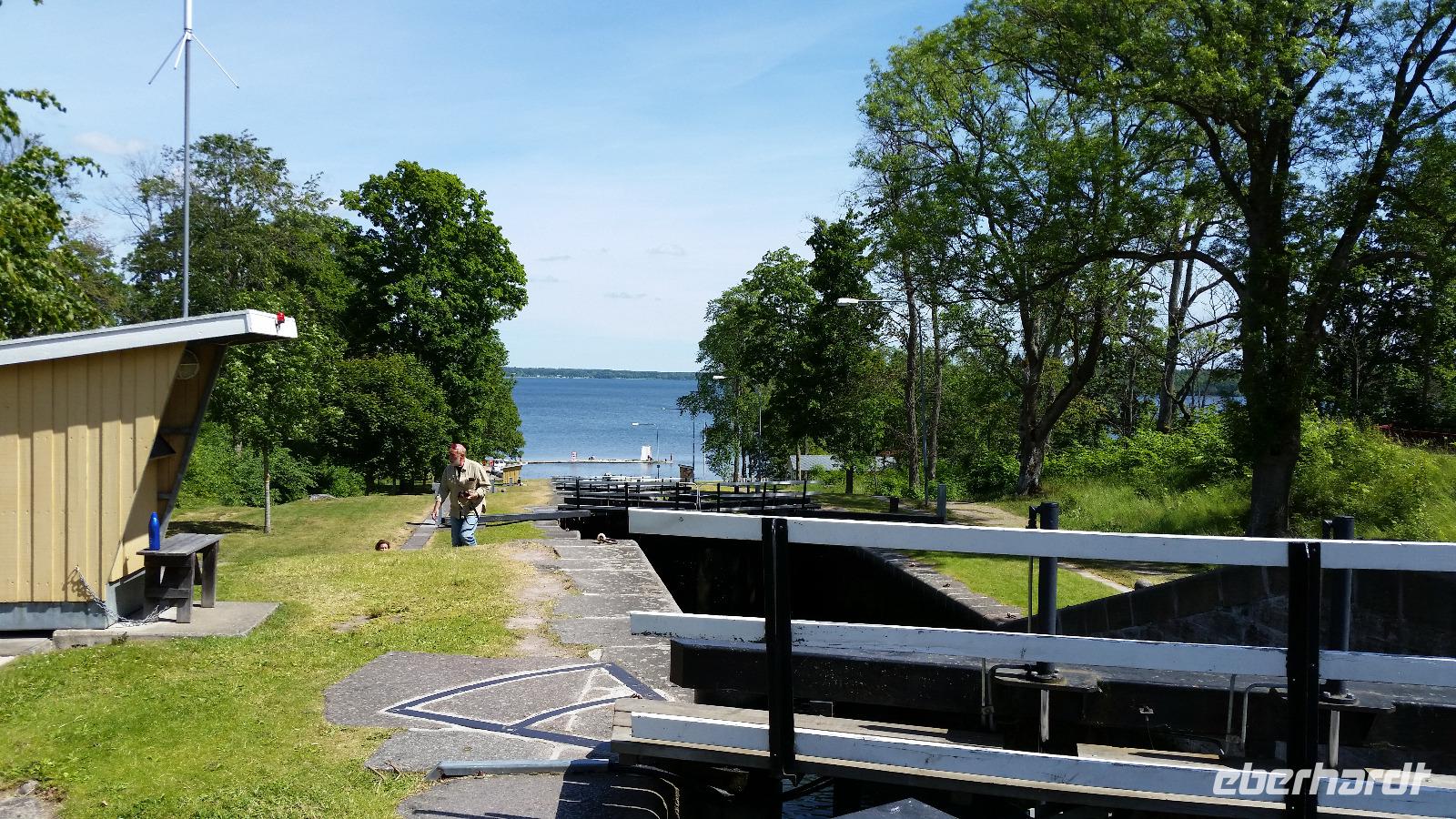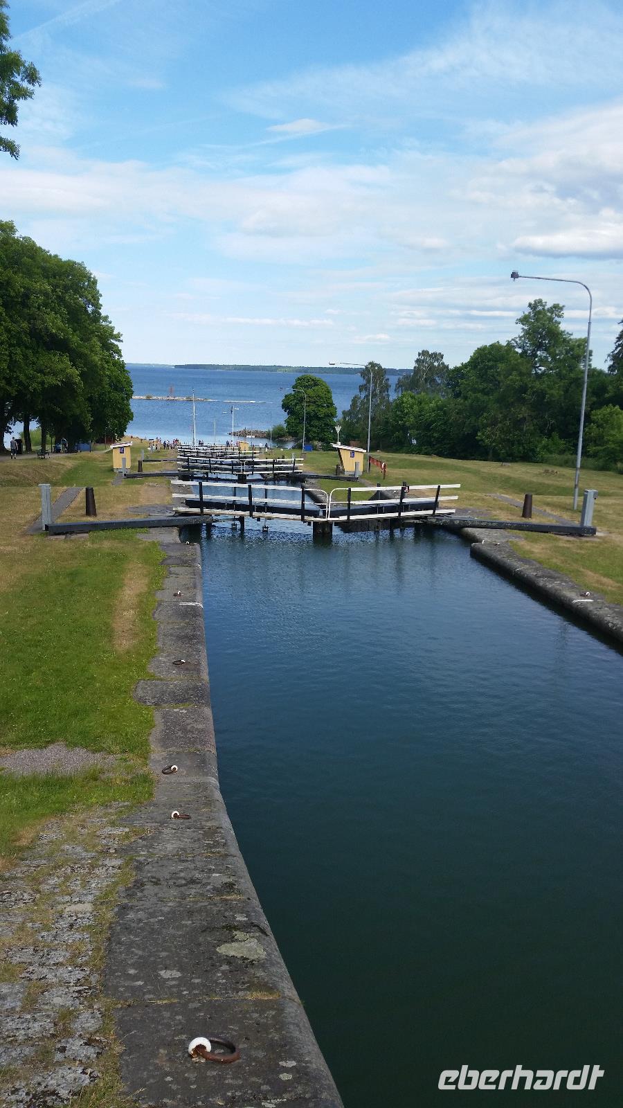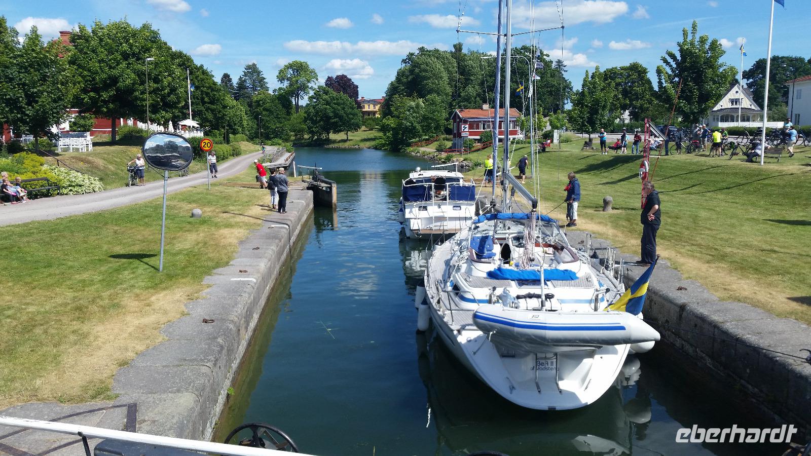 Nun sind es nur noch wenige Kilometer bis nach Motala, dem Startort unserer Radetappe und Zentrum des Göta Kanals, dem Blauen Band Schwedens. Interessiert beobachten wir das Schleusen einer Jacht in der Schleuse Borenshult mit ihren fünf Schleusenkammern. Von hier starten wir zu unserer Radtour.