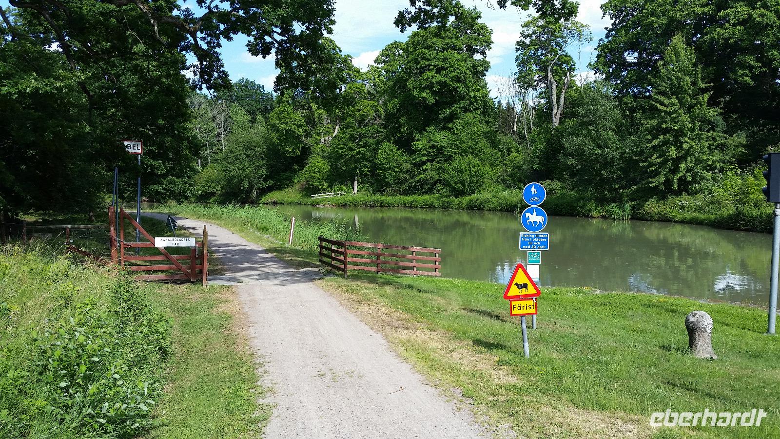 Bis Borensberg folgen wir einer asphaltierten Nebenstraße. Im ersten Teil der Etappe wird der Göta Kanal durch den natürlichen See „Boren" gebildet.