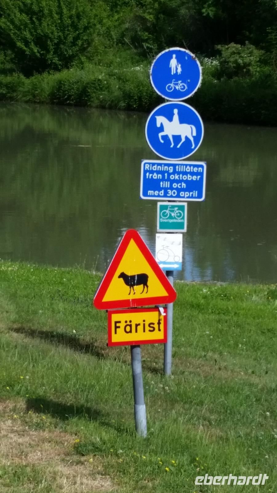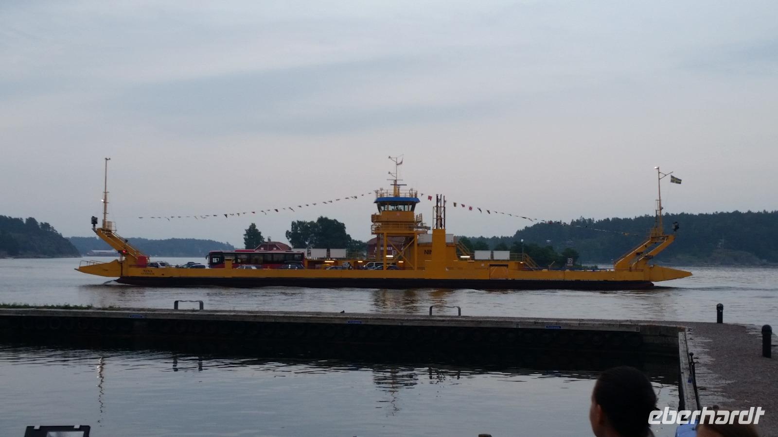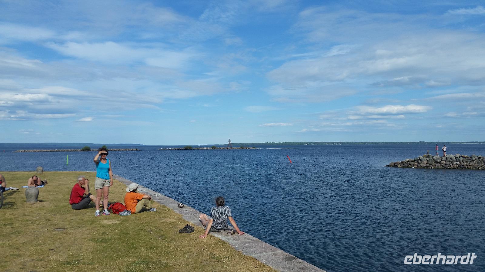 Das Wetter sieht stabil aus, wir entscheiden ohne Umschweife sofort los zu radeln. Wir fahren über die Ölandbrücke bis nach Färjestaden. Dort wechseln wir auf die Räder.