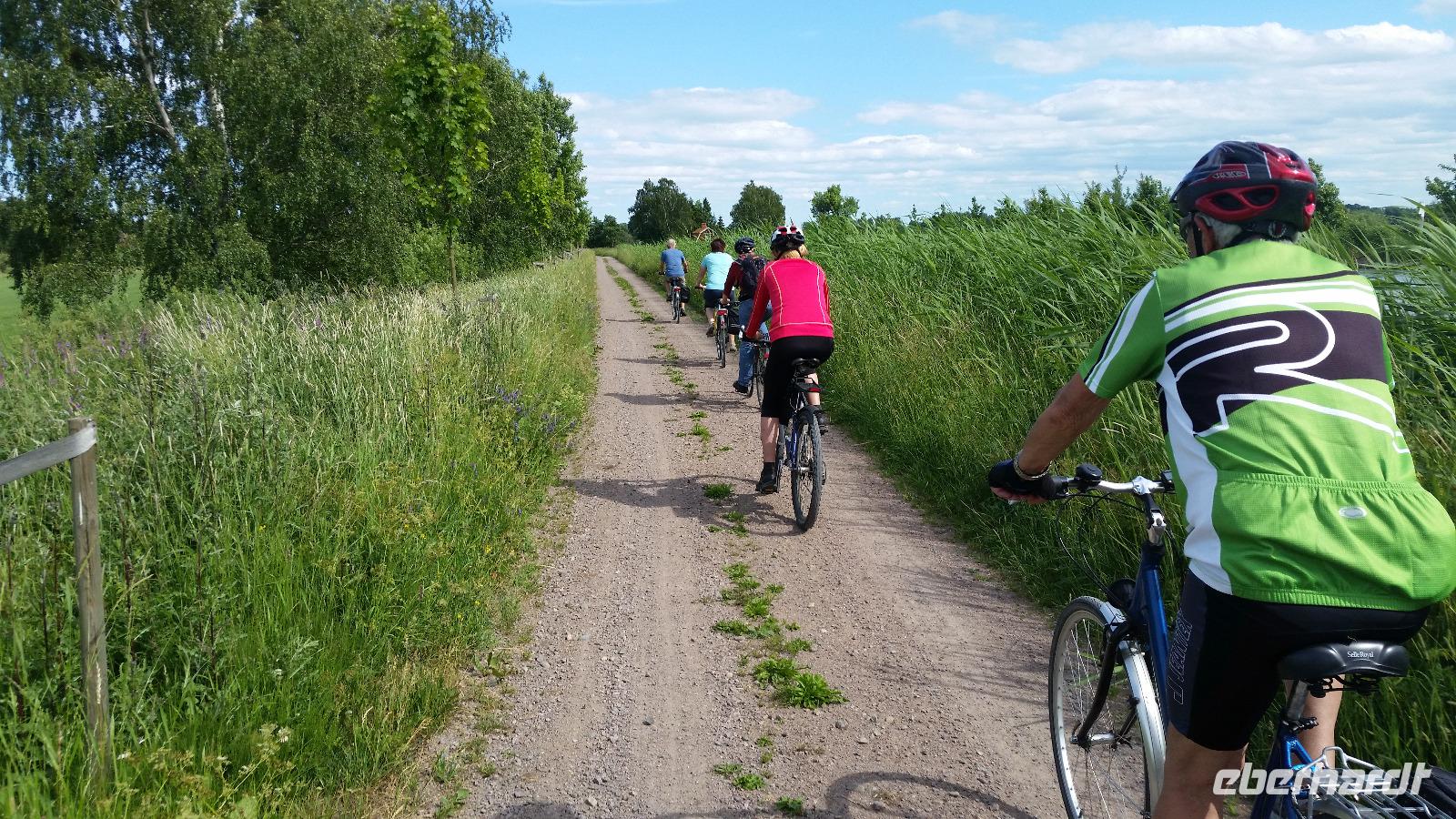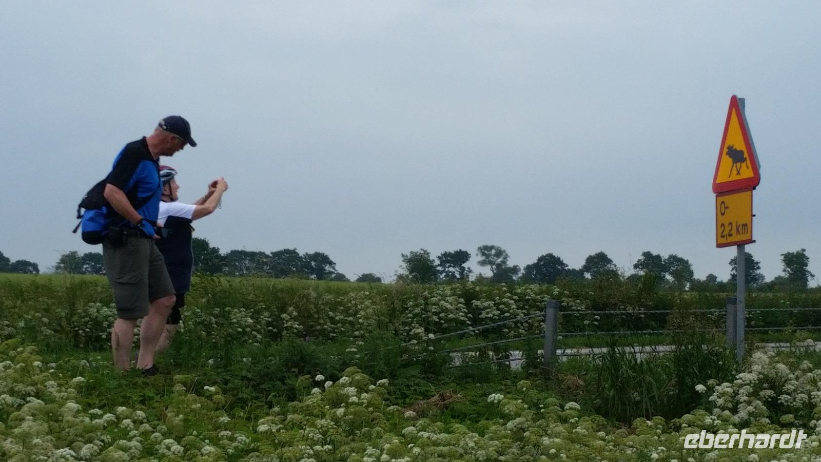 Auf einer abwechslungsreichen Strecke über Felder und durch Wälder begegnen uns sogar ein paar Elche, mutmaßlich eine Elchkuh mit zwei Jungtieren.