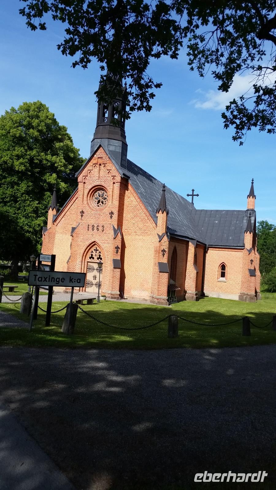 Wir erreichen wieder Mariefred. Zwischen historischen Häusern, dem alten Rathaus und der Kirche geht es zum Friedhof von Mariefred. Auf der gepflegten Anlage liegt der berühmte Satiriker Kurt Tucholsky begraben.