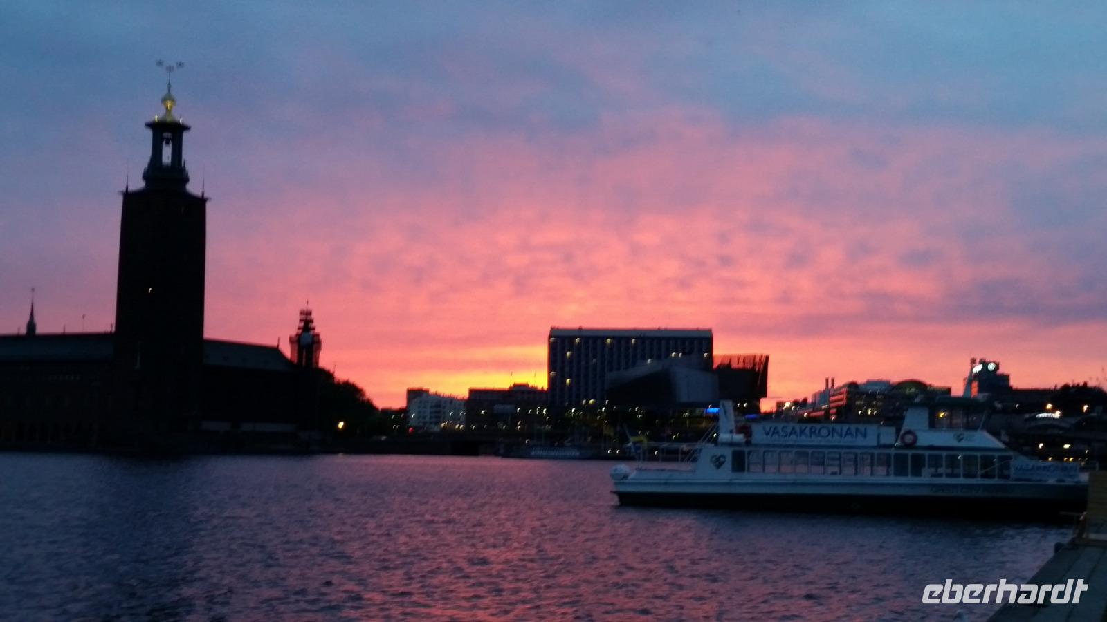 Am Abend treffen wir uns am Kai des Strandvägen wieder. Von hier startet unsere Krabbenfahrt in die Schären. Schwedischer kann man Mittsommer nicht feiern. Nach Mitternacht treffen wir alle im Hotel ein.