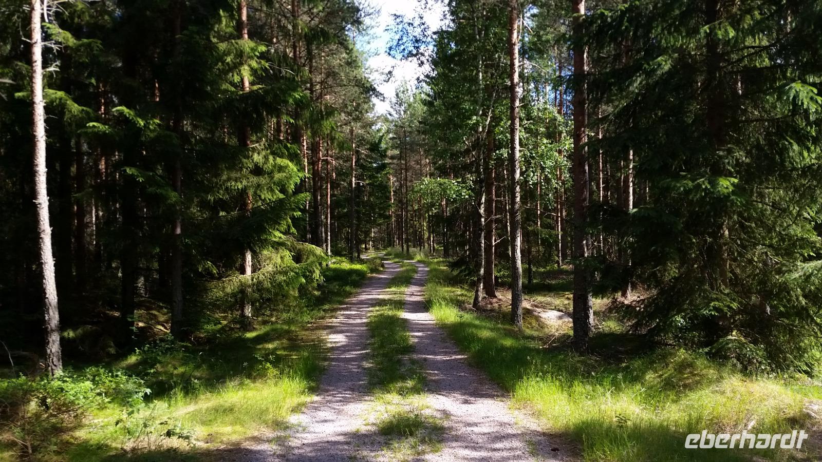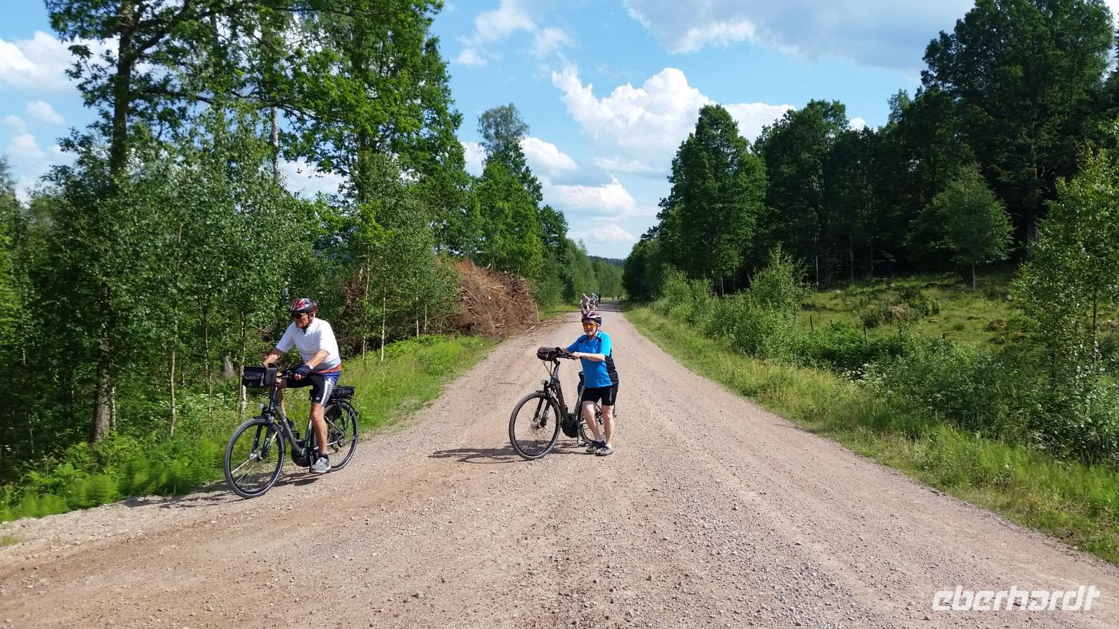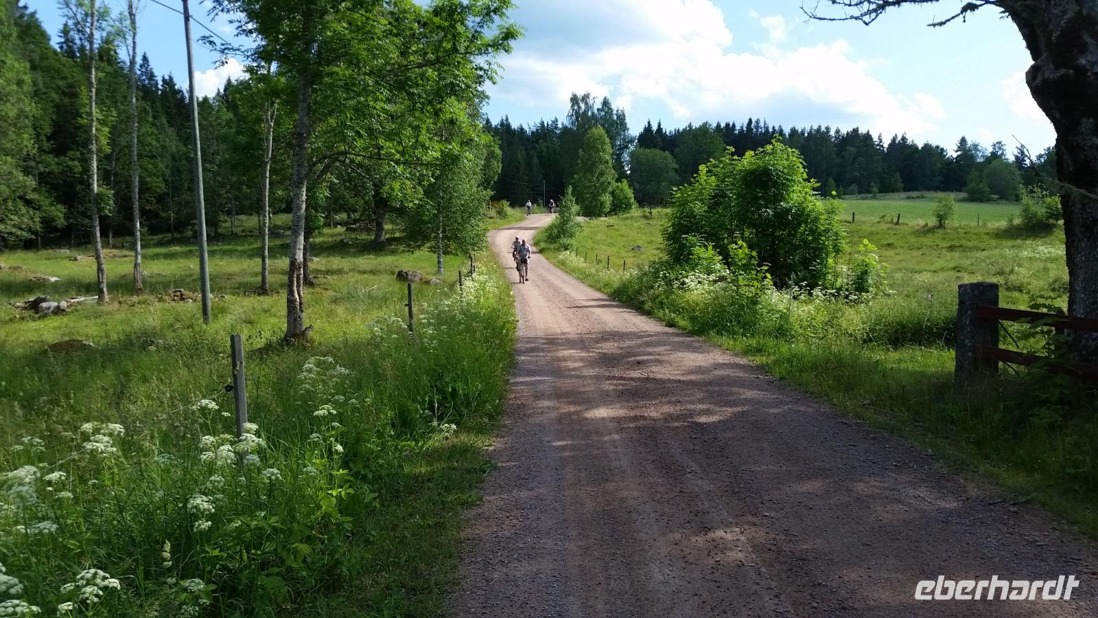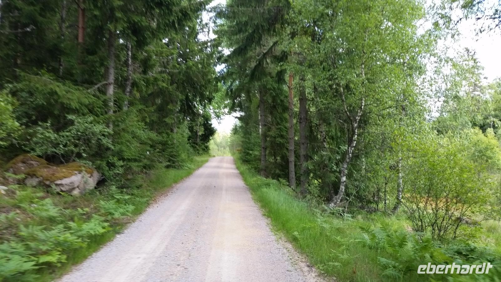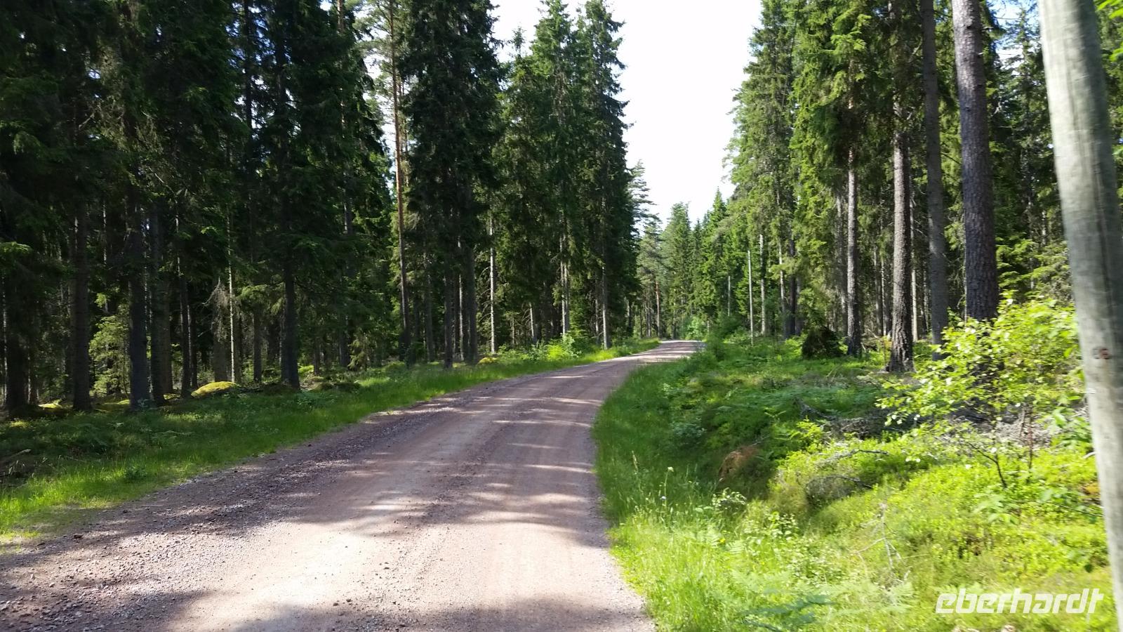 Es geht auch hier über unbefestigte, aber gut fahrbare Waldwege. Småland ist keineswegs flach. Småland hält für uns eine steile Abfahrt genauso bereit, wie ein paar kräftige Anstiege. Das Wetter und die Landschaft entschädigen für alles.