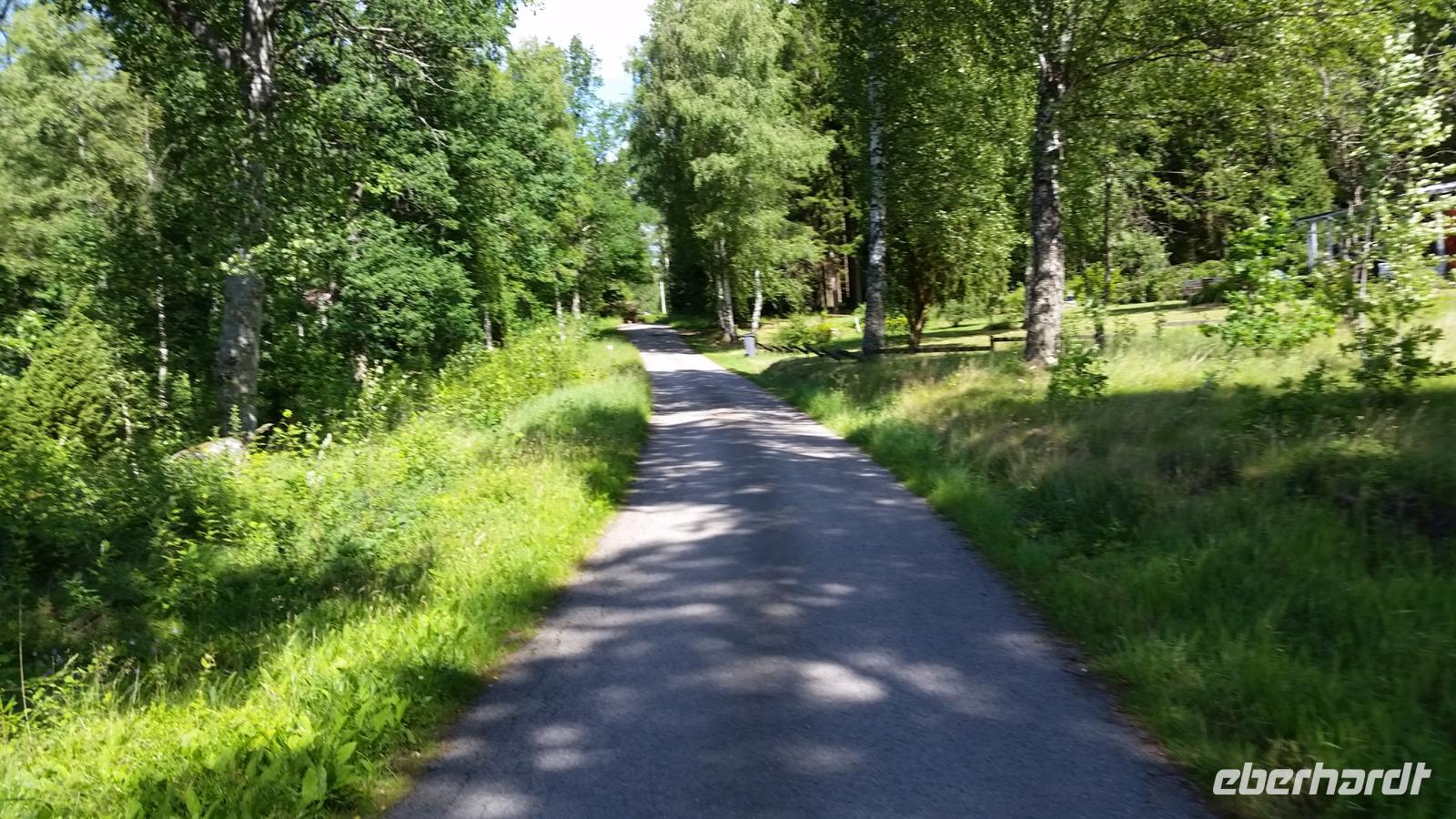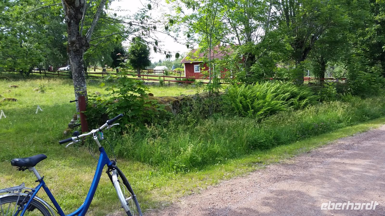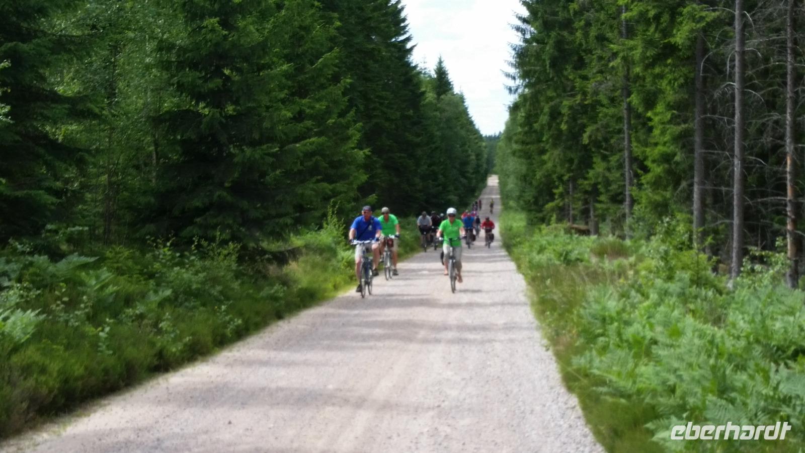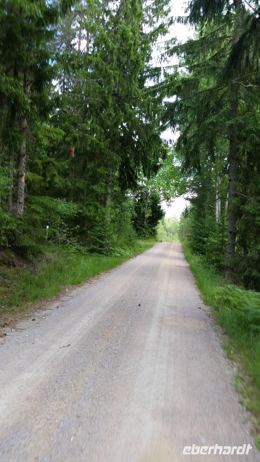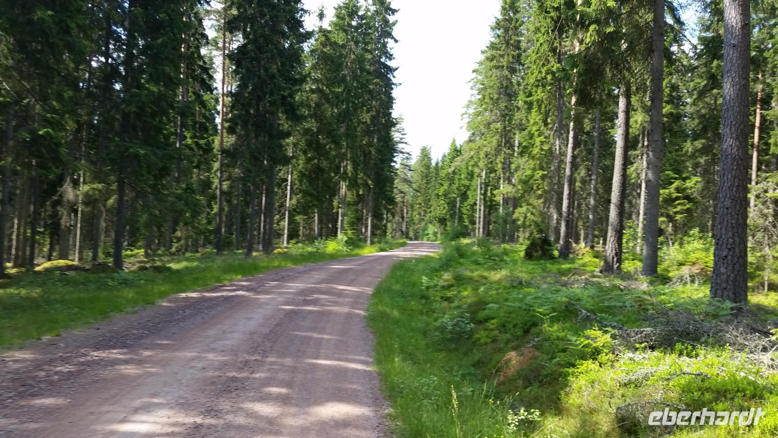 Es geht auch hier über unbefestigte, aber gut fahrbare Waldwege. Småland ist keineswegs flach. Småland hält für uns eine steile Abfahrt genauso bereit, wie ein paar kräftige Anstiege. Das Wetter und die Landschaft entschädigen für alles.