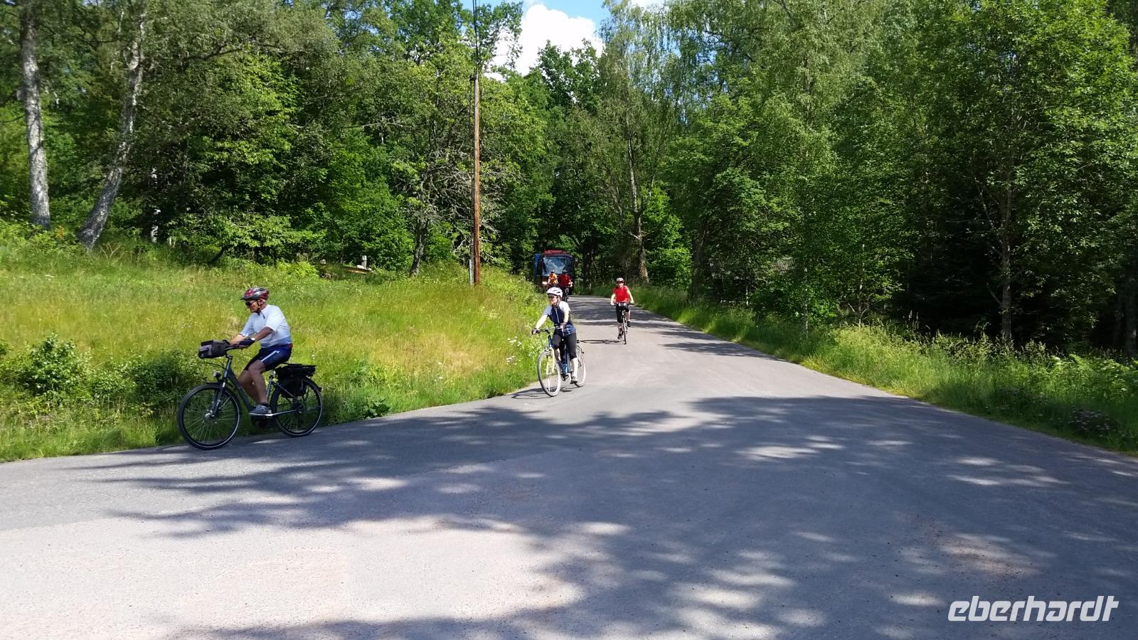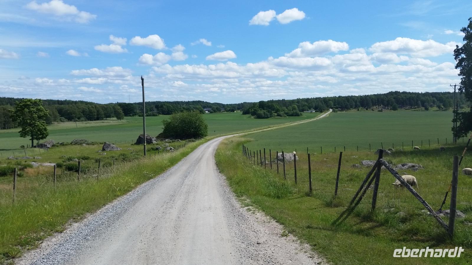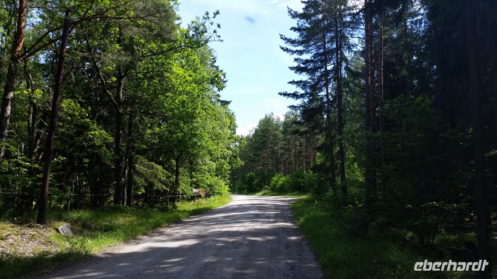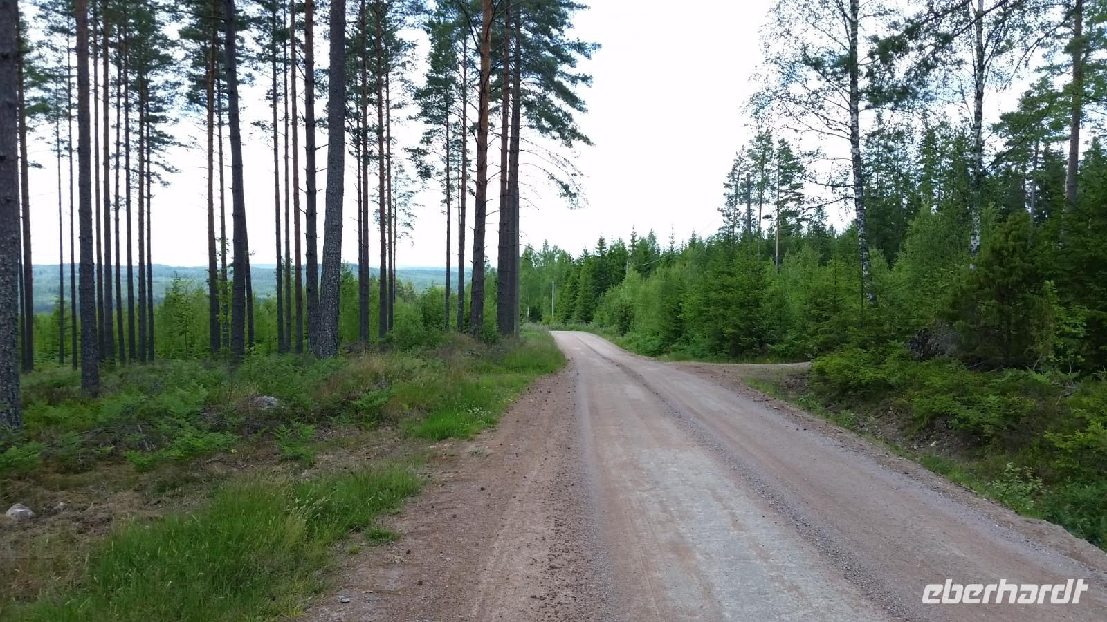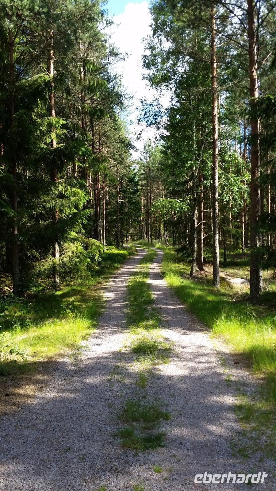 Es geht auch hier über unbefestigte, aber gut fahrbare Waldwege. Småland ist keineswegs flach. Småland hält für uns eine steile Abfahrt genauso bereit, wie ein paar kräftige Anstiege. Das Wetter und die Landschaft entschädigen für alles.