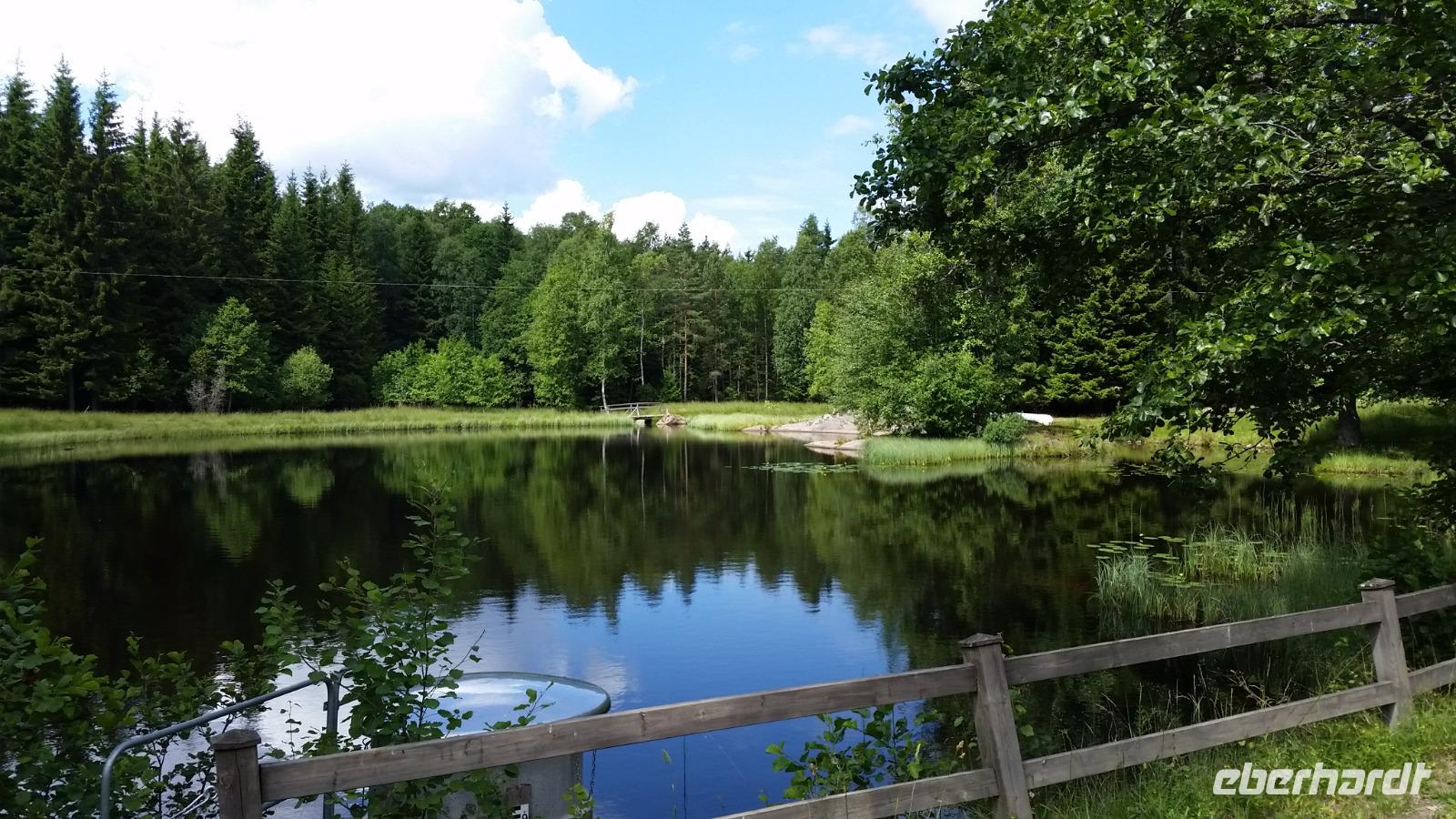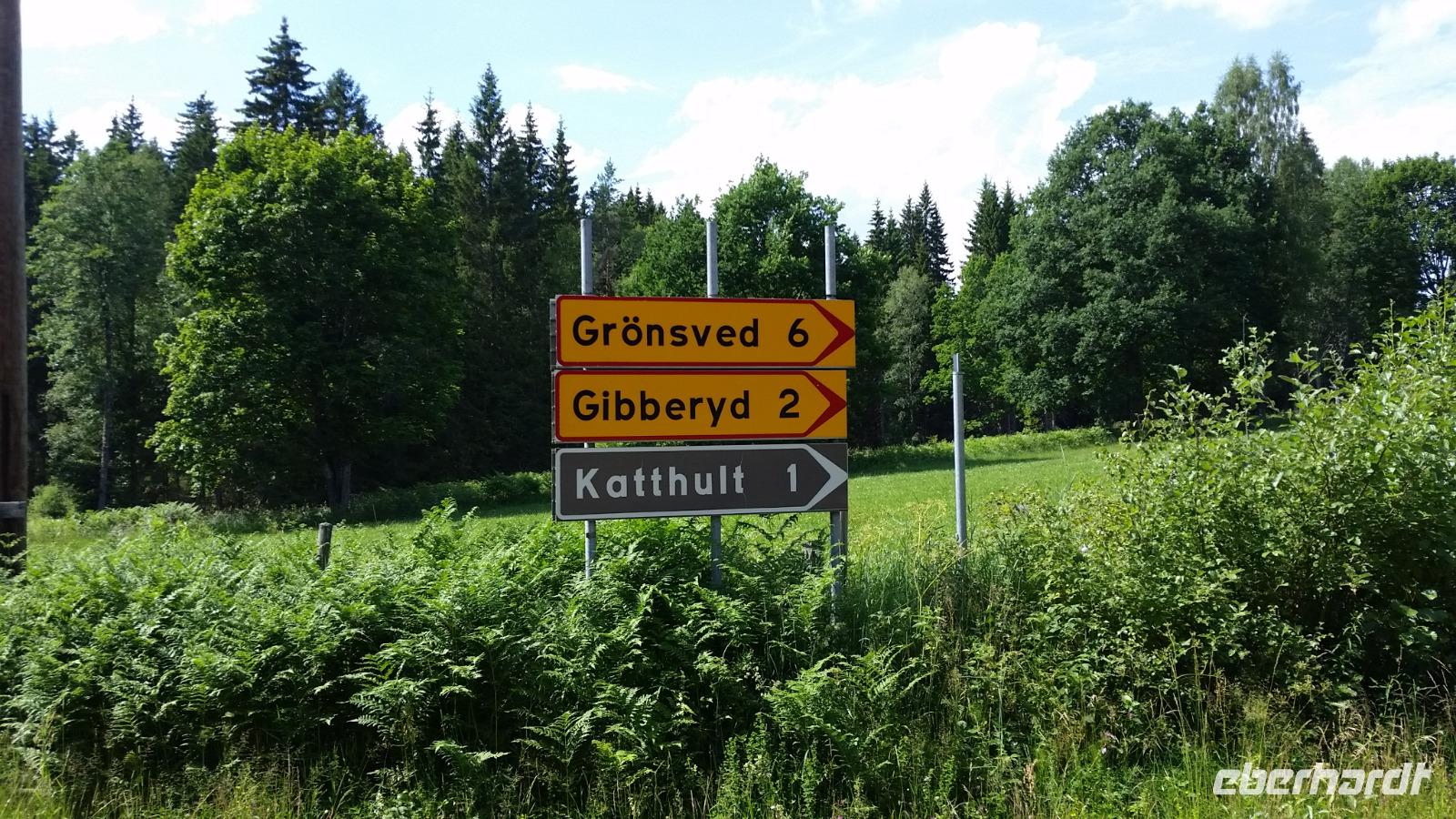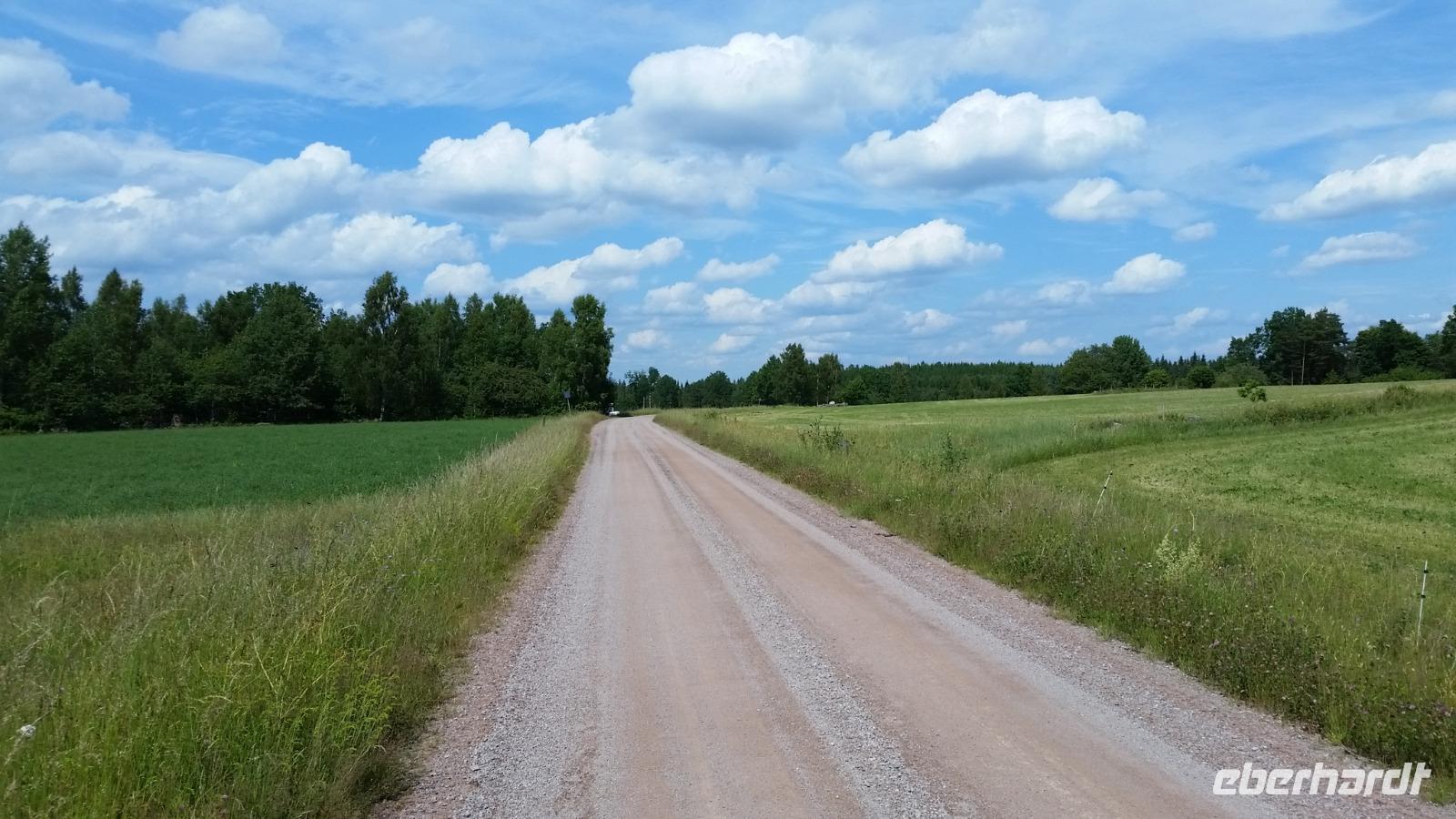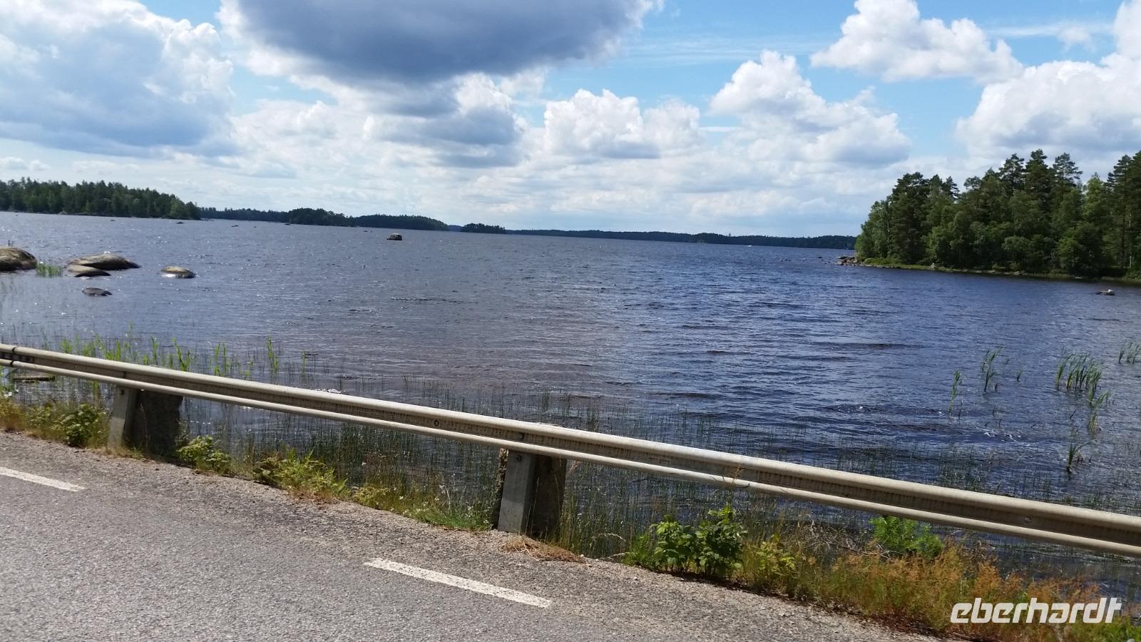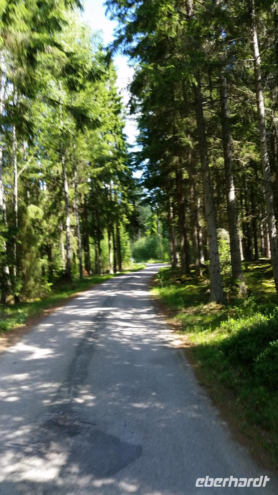 Es geht auch hier über unbefestigte, aber gut fahrbare Waldwege. Småland ist keineswegs flach. Småland hält für uns eine steile Abfahrt genauso bereit, wie ein paar kräftige Anstiege. Das Wetter und die Landschaft entschädigen für alles.