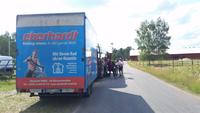 Auf dem Besucherparkplatz wartet unser Chauffeur Ingo. Müde Radler können sich mit kühlen Getränken ausstatten oder ganz auf den Bus umsteigen.