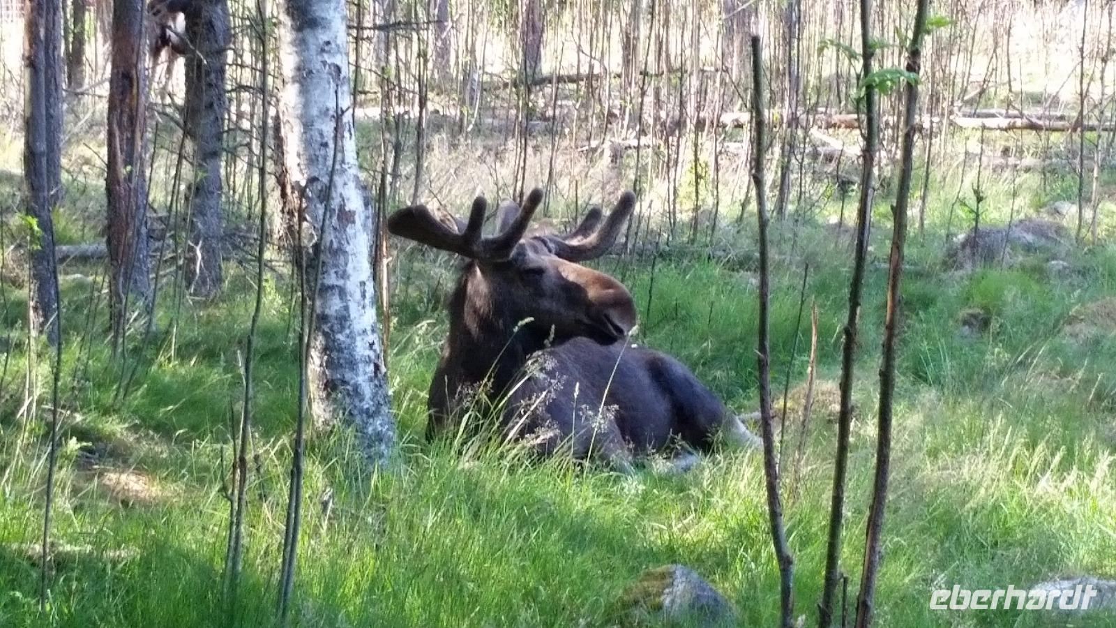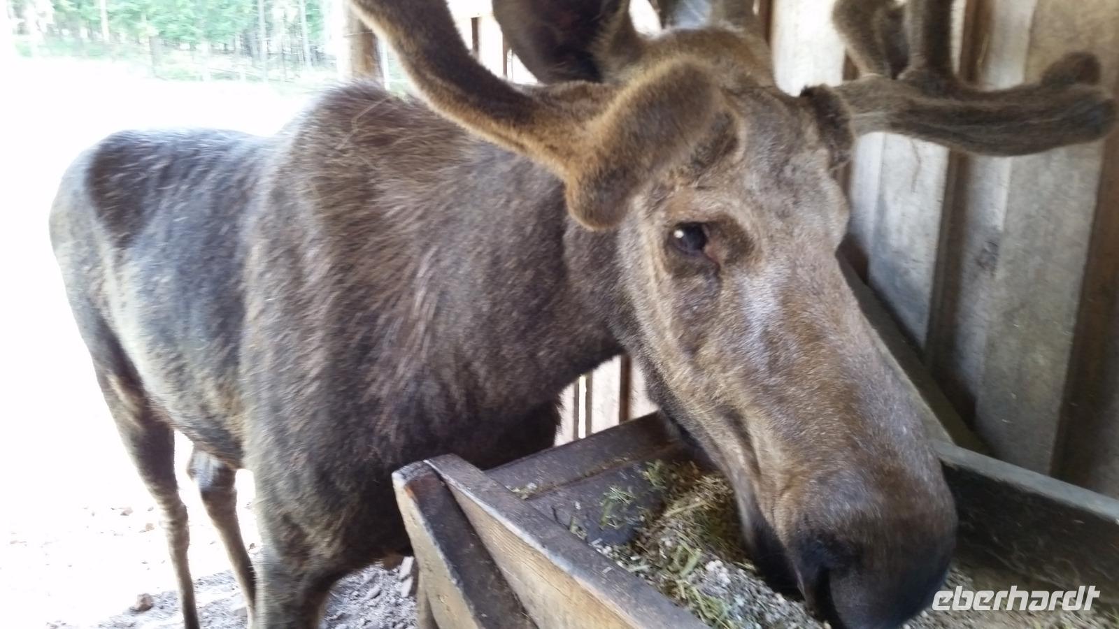 Am Ende erreichen wir nach einer wunderschönen und abwechslungsreichen Natur-Etappe den Grönåsens Elchpark in der Nähe von Kosta. Nach einem Rundgang durch den naturbelassenen Park verabschieden wir uns von Schweden mit einer auf dem Grill selbstgebratenen Elch-Bratwurst.